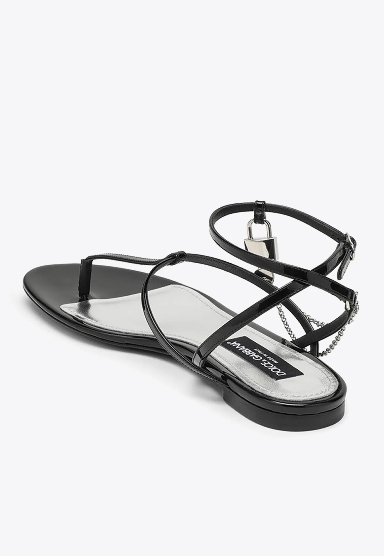 Dolce Gabbana Lock Chain Leather Flat Sandals