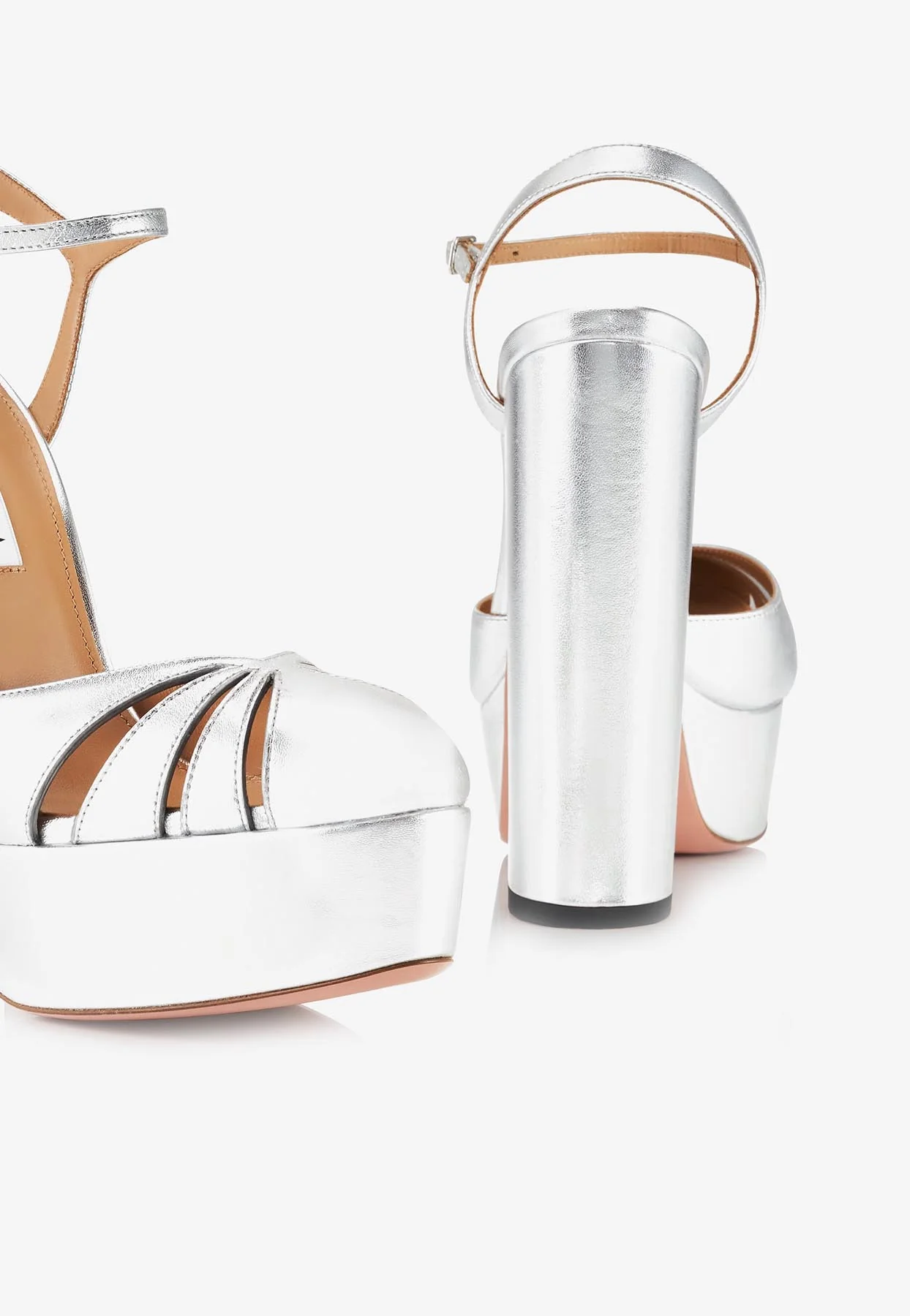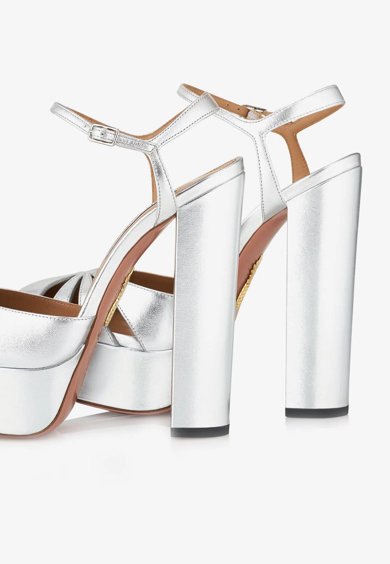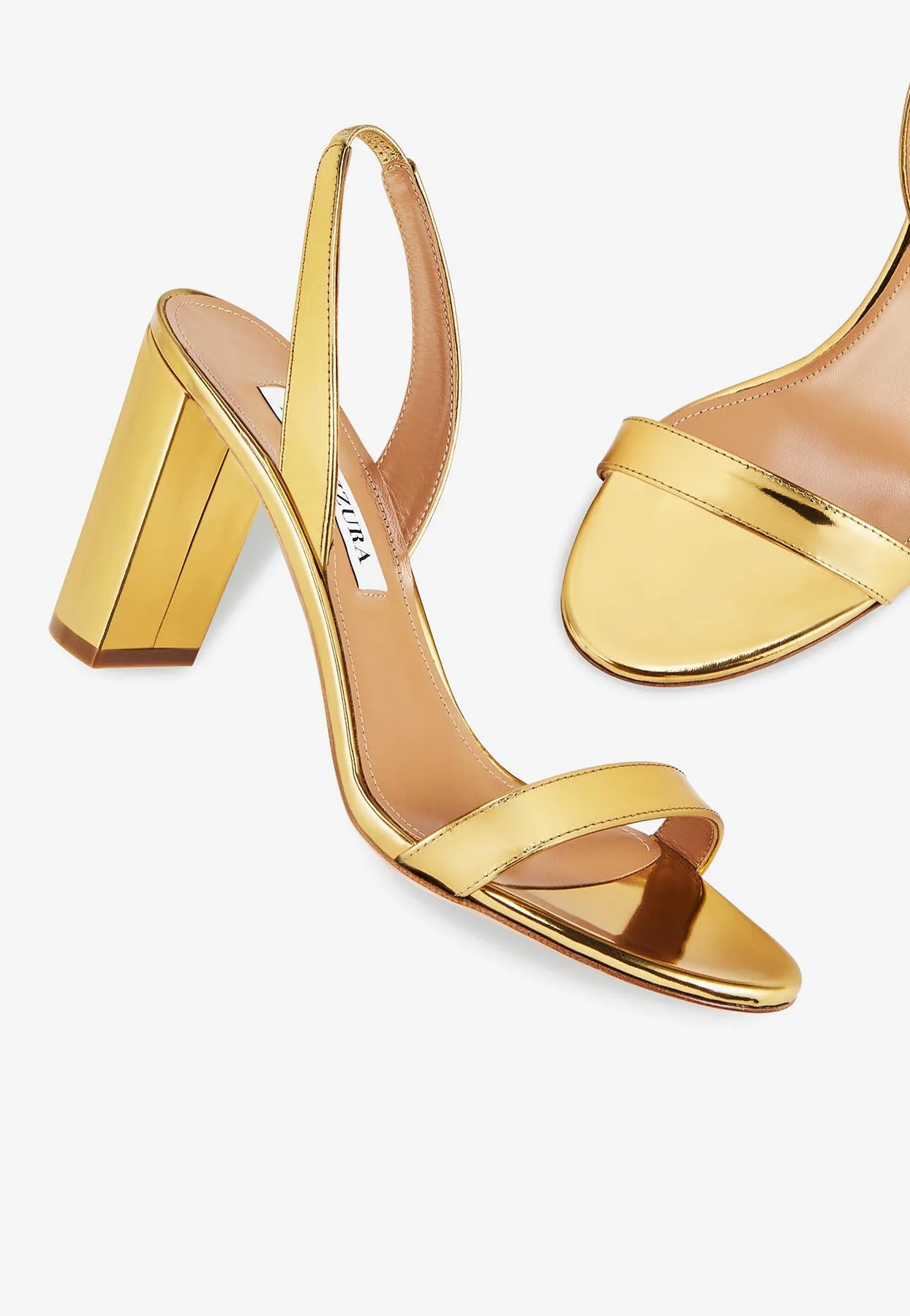 Aquazzura So Nude 105 Slingback Sandals in Metallic Leather Women Shoes