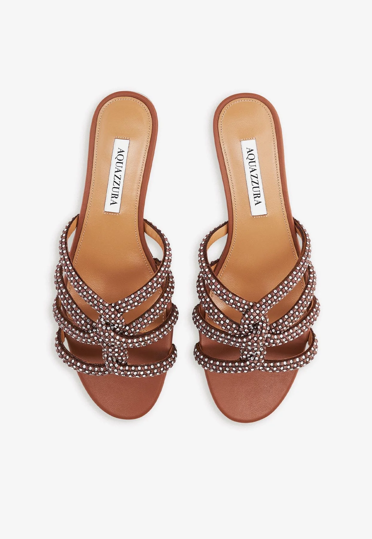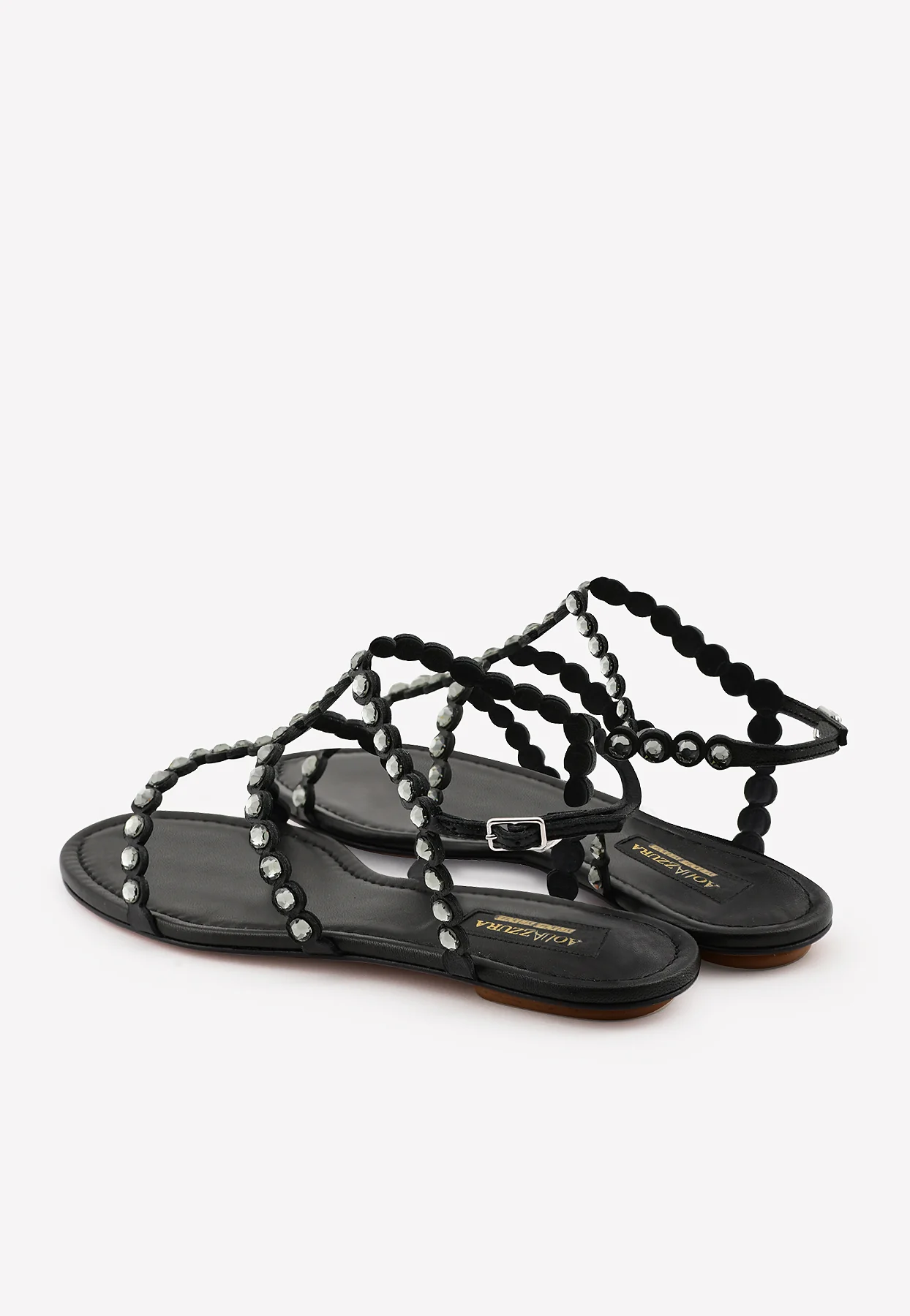 Aquazzura Tequila Crystal-Embellished Flat Sandals in Nappa Leather Women Shoes
