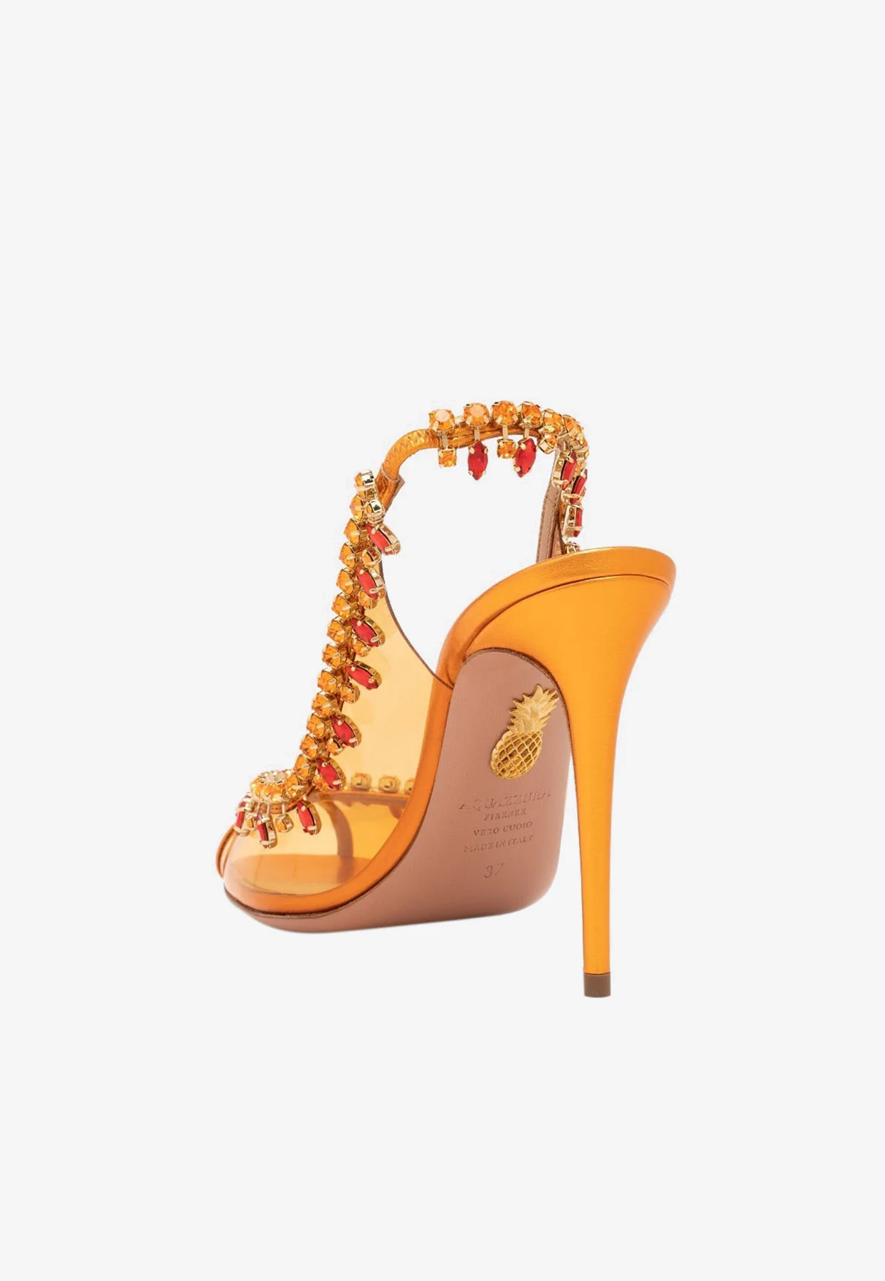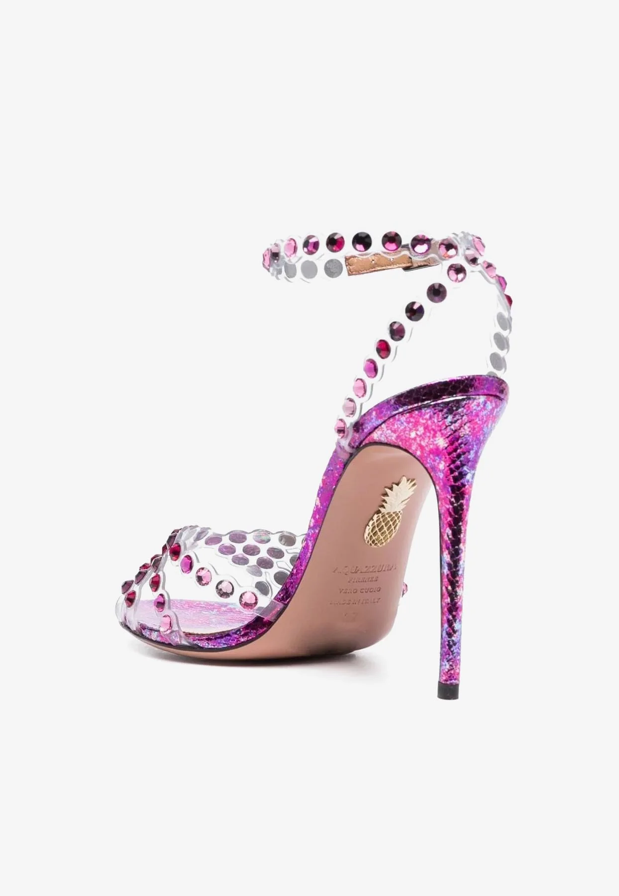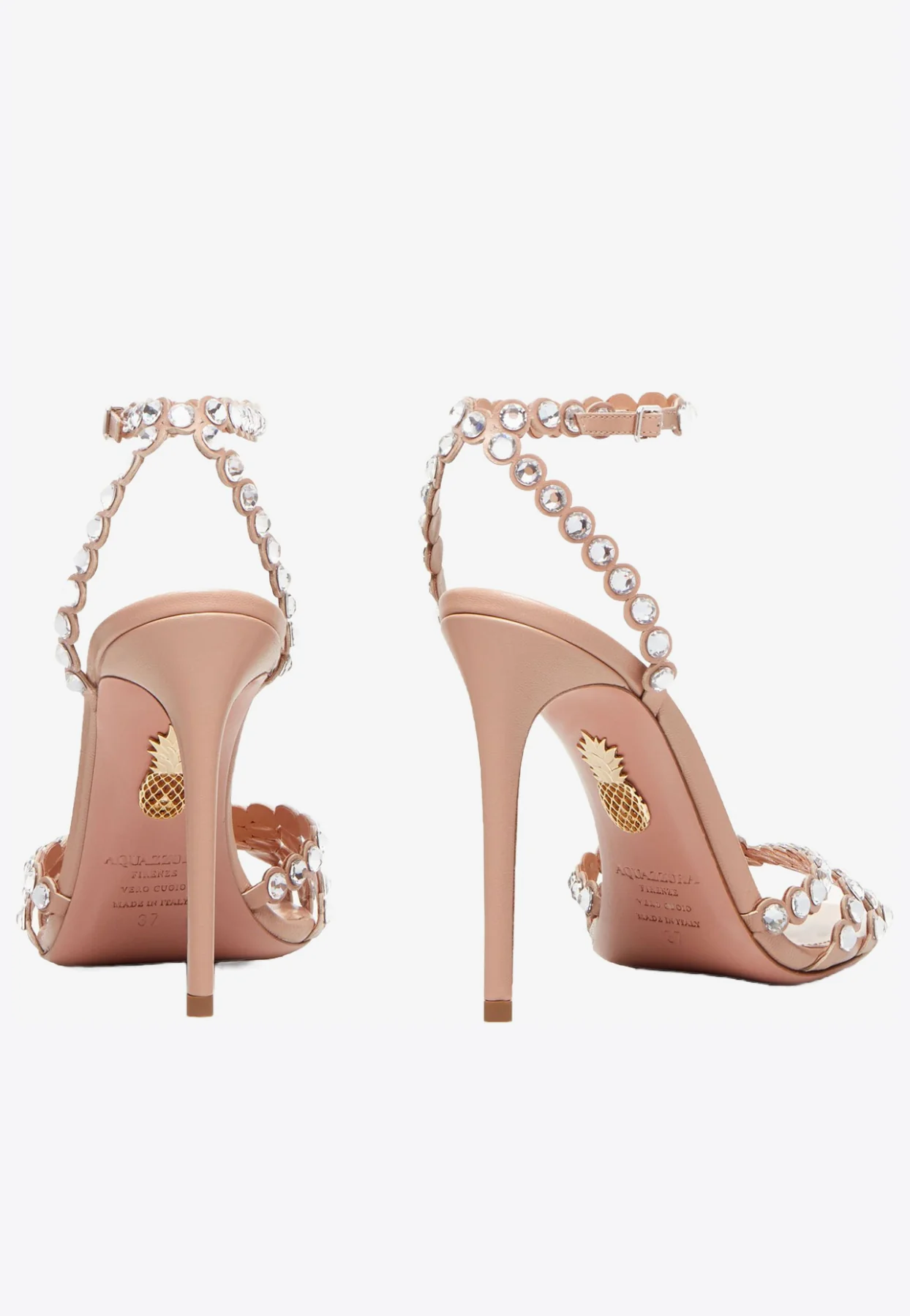 Aquazzura Tequila 105 Crystal-Embellished Sandals in Leather Women Shoes