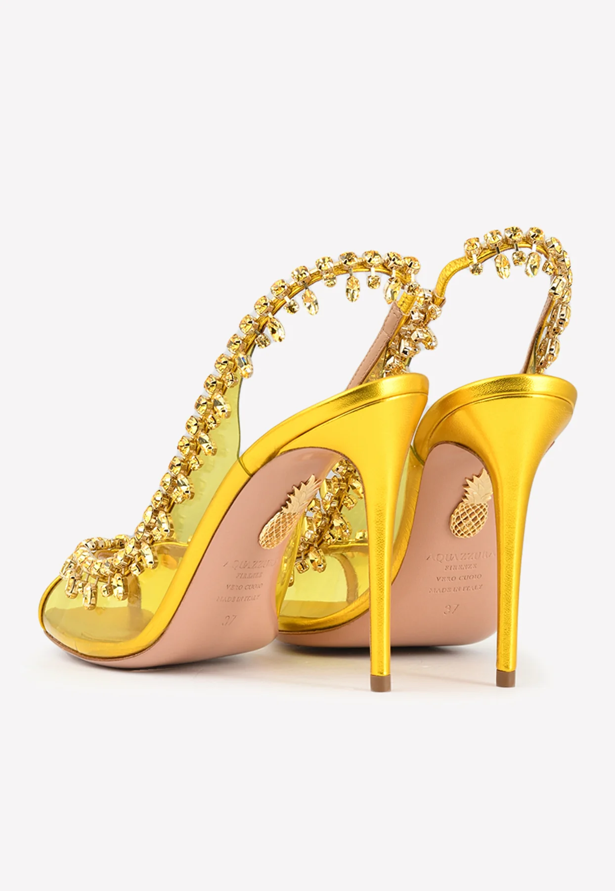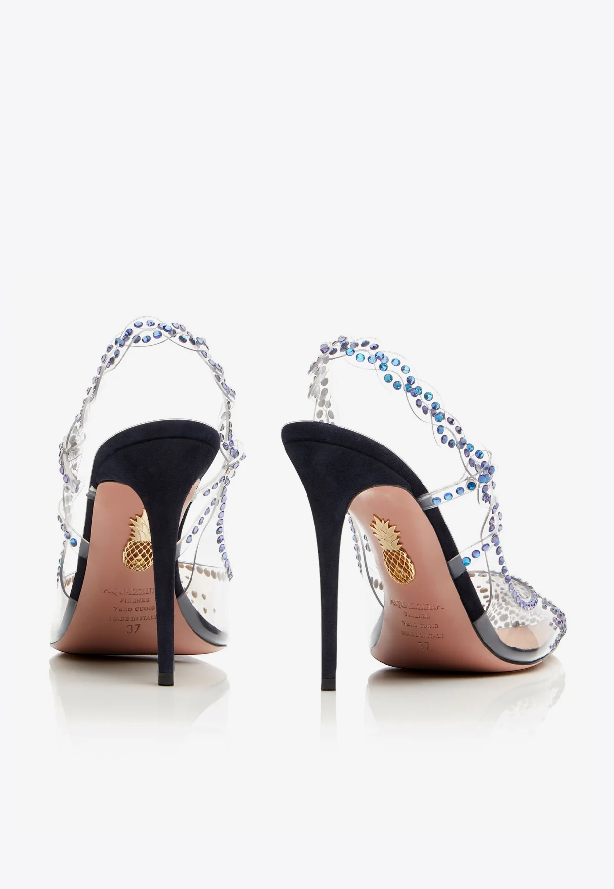 Aquazzura Temptation 105 Crystal-Embellished Slingback Sandals Women Shoes