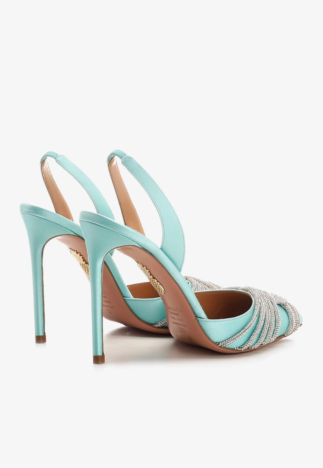 Aquazzura Gatsby 105 Crystal Embellished Slingback Pumps in Satin Women Shoes