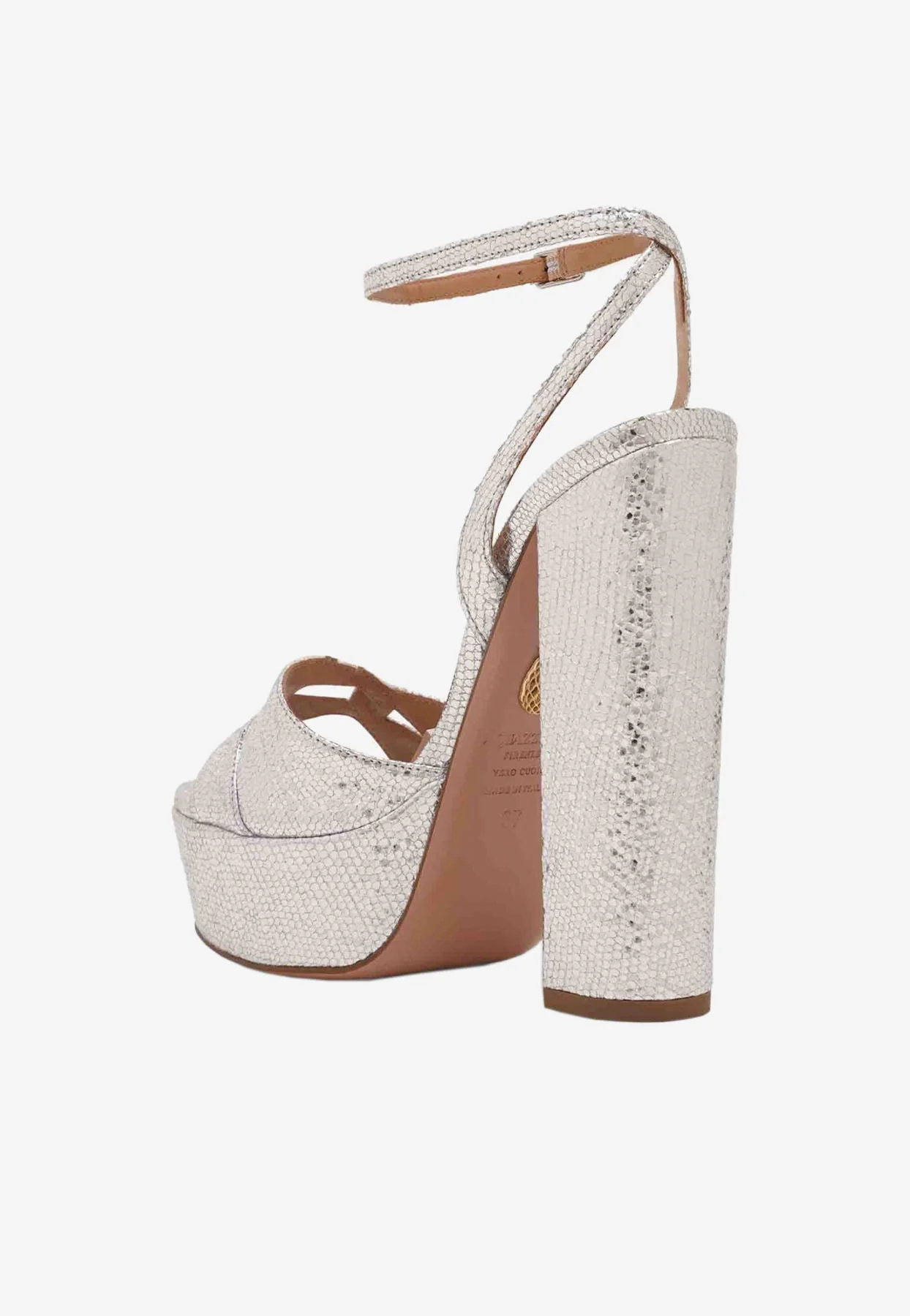 Aquazzura Sinner 140 Platform Sandals in Metallic Nappa Leather Women Shoes