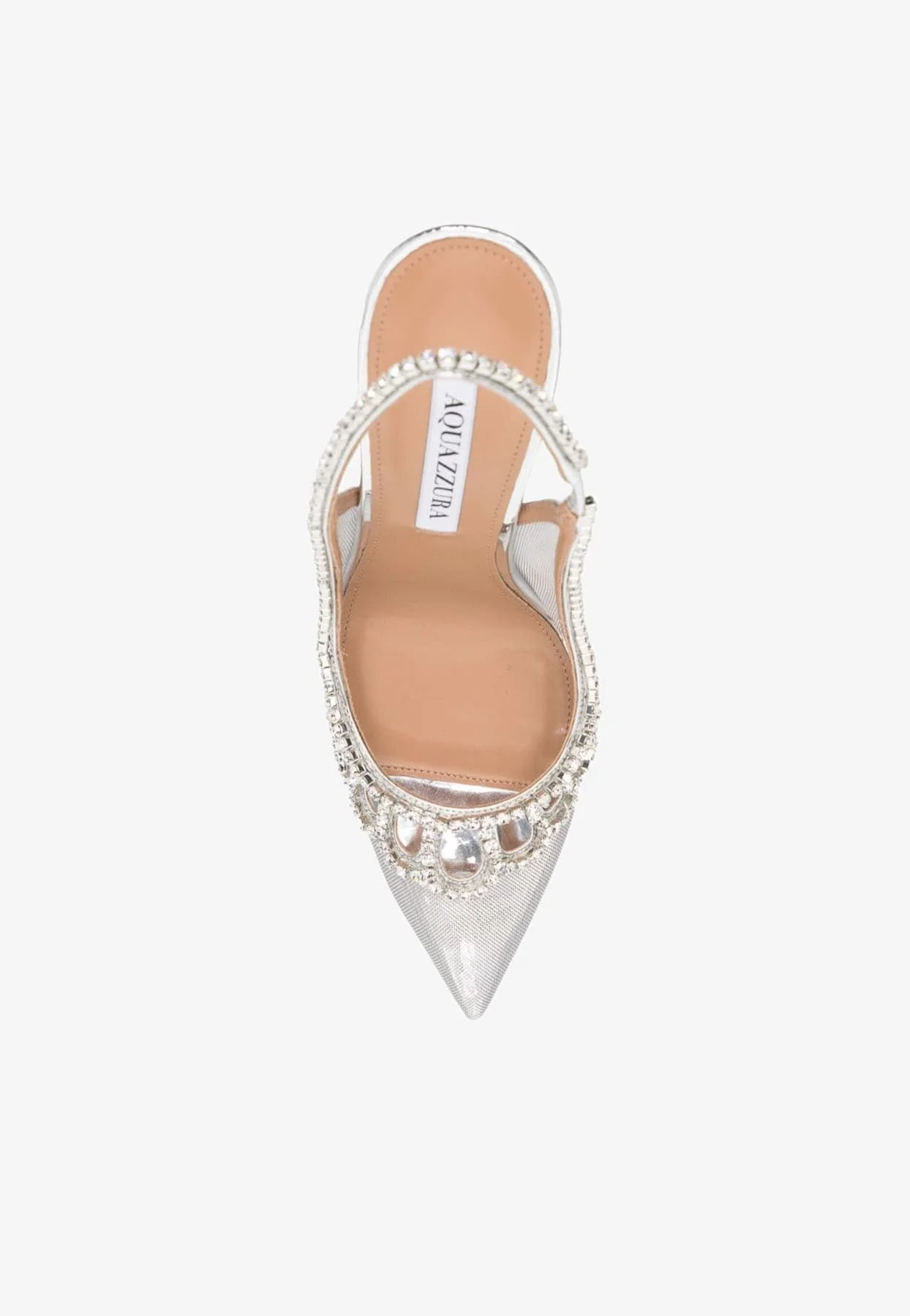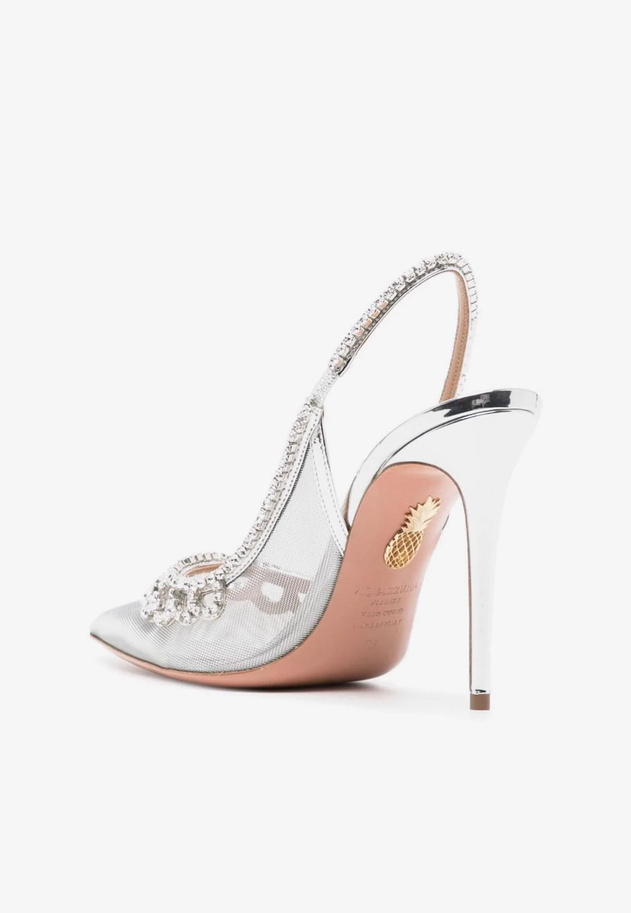 Aquazzura Tiara 105 Slingback Crystal Embellished Mesh Pumps Women Shoes