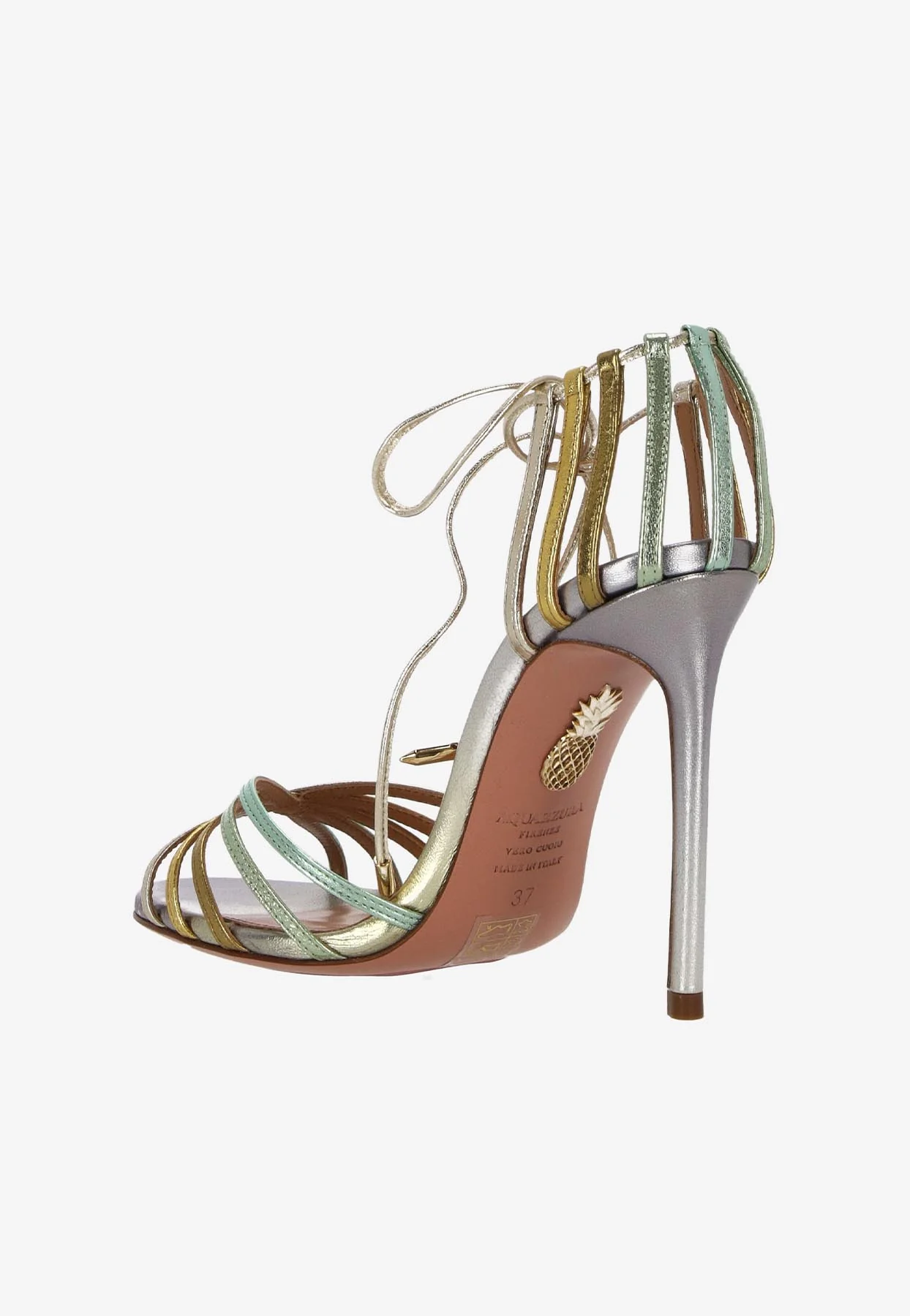 Aquazzura Straight to Heaven 125 Sandals in Metallic Leather Women Shoes