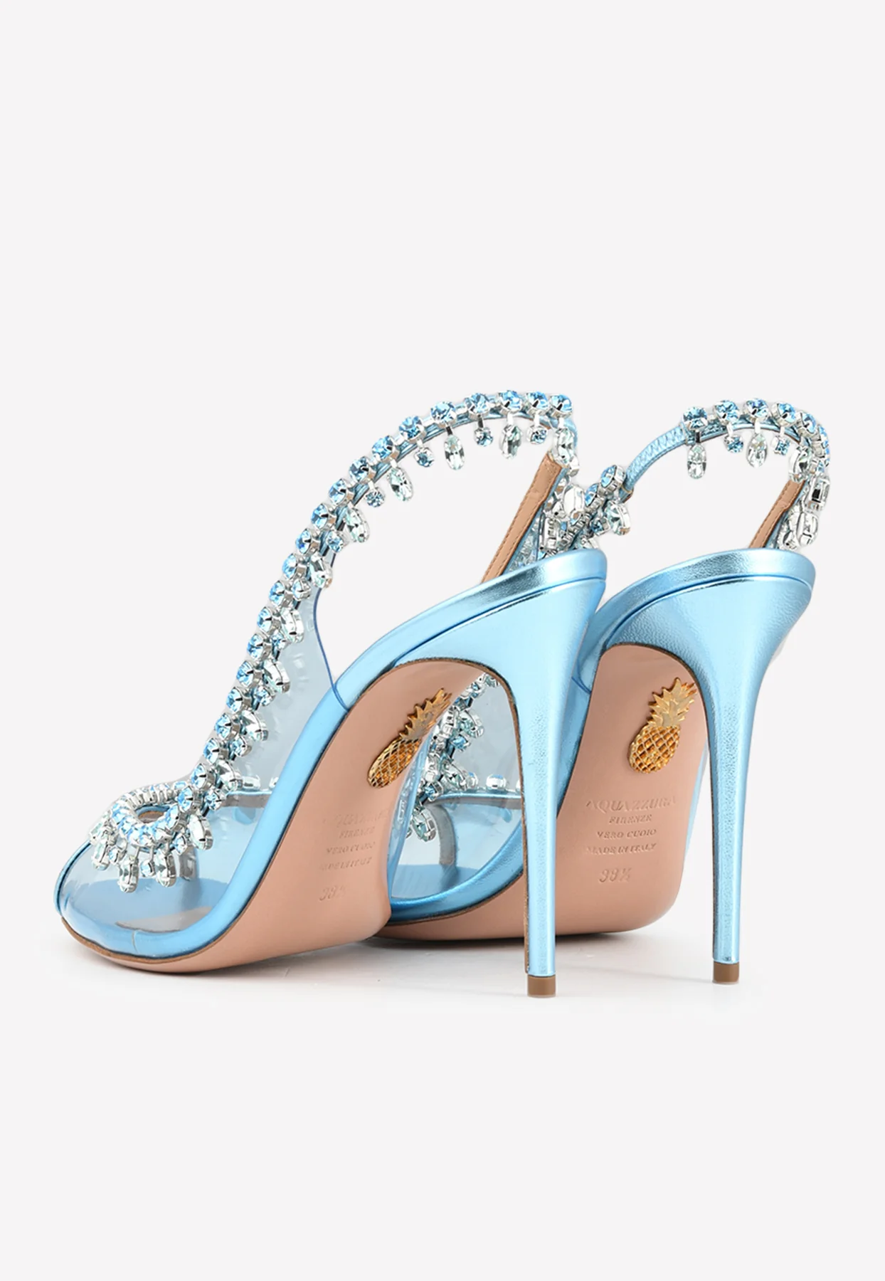 Aquazzura Temptation 105 Crystal-Embellished Slingback Sandals Women Shoes