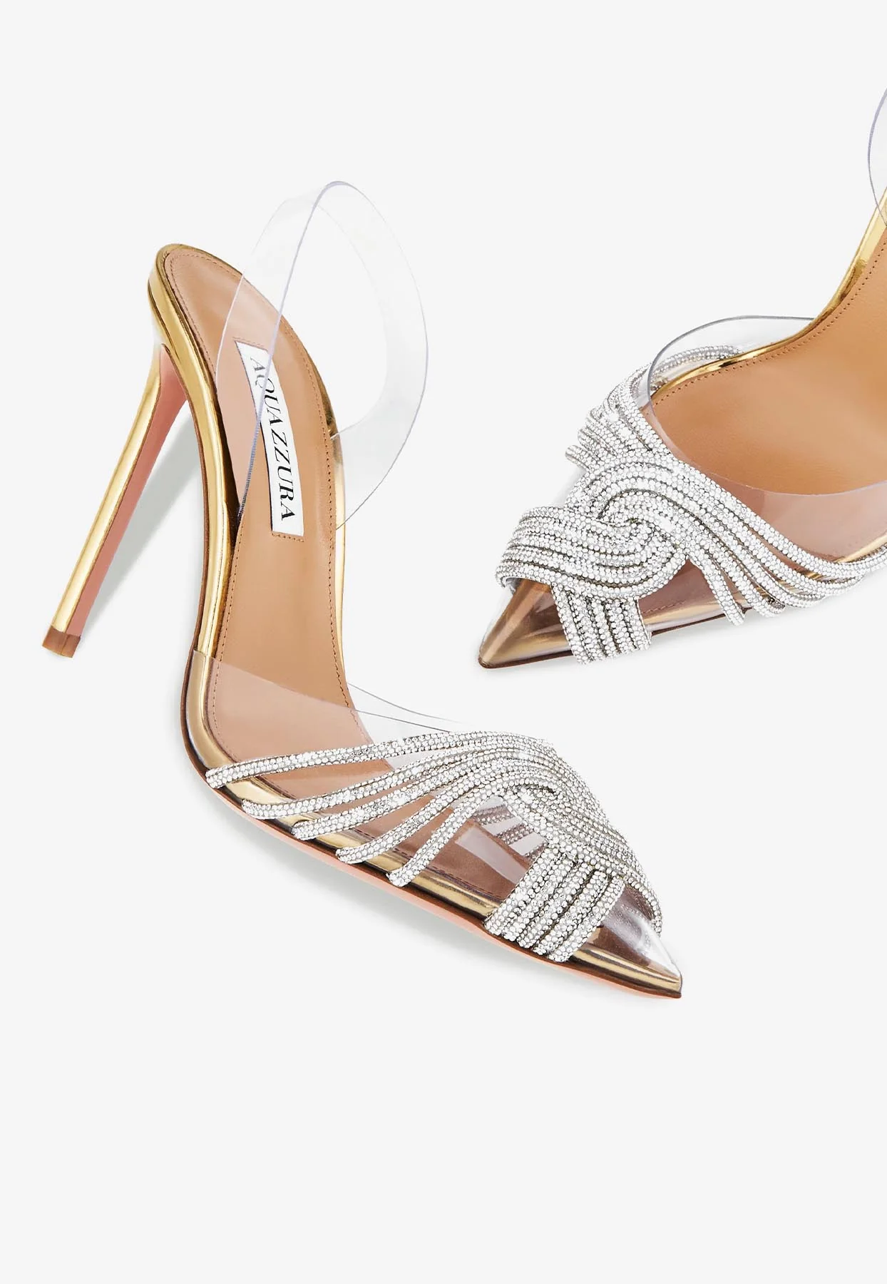 Aquazzura Gatsby 105 Crystal Embellished Slingback Pumps Women Shoes