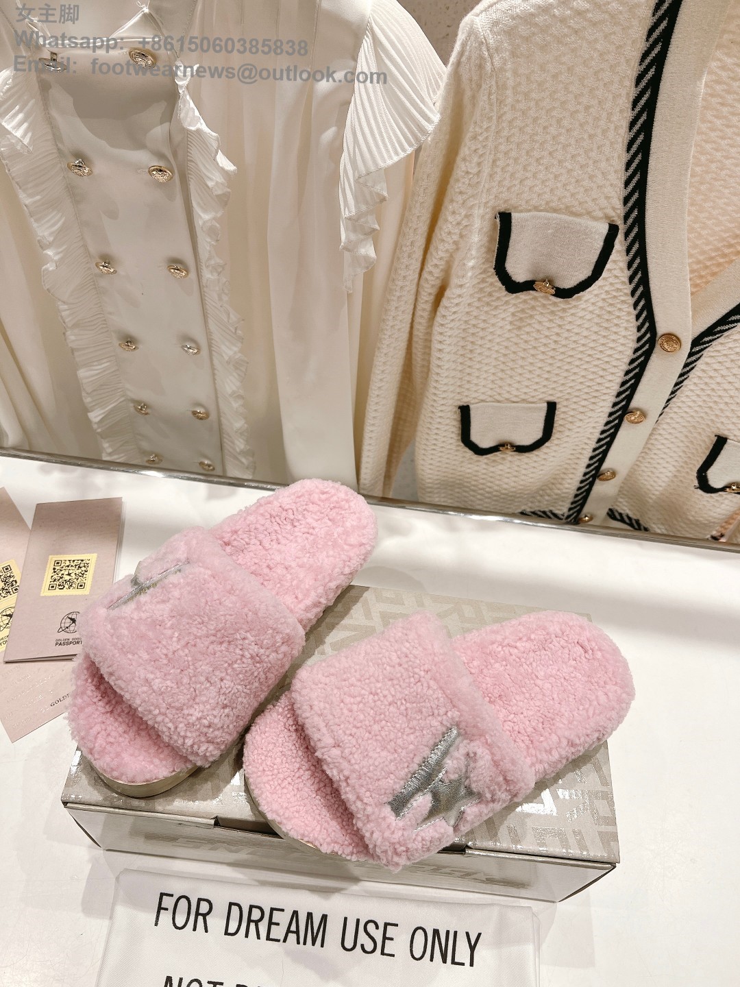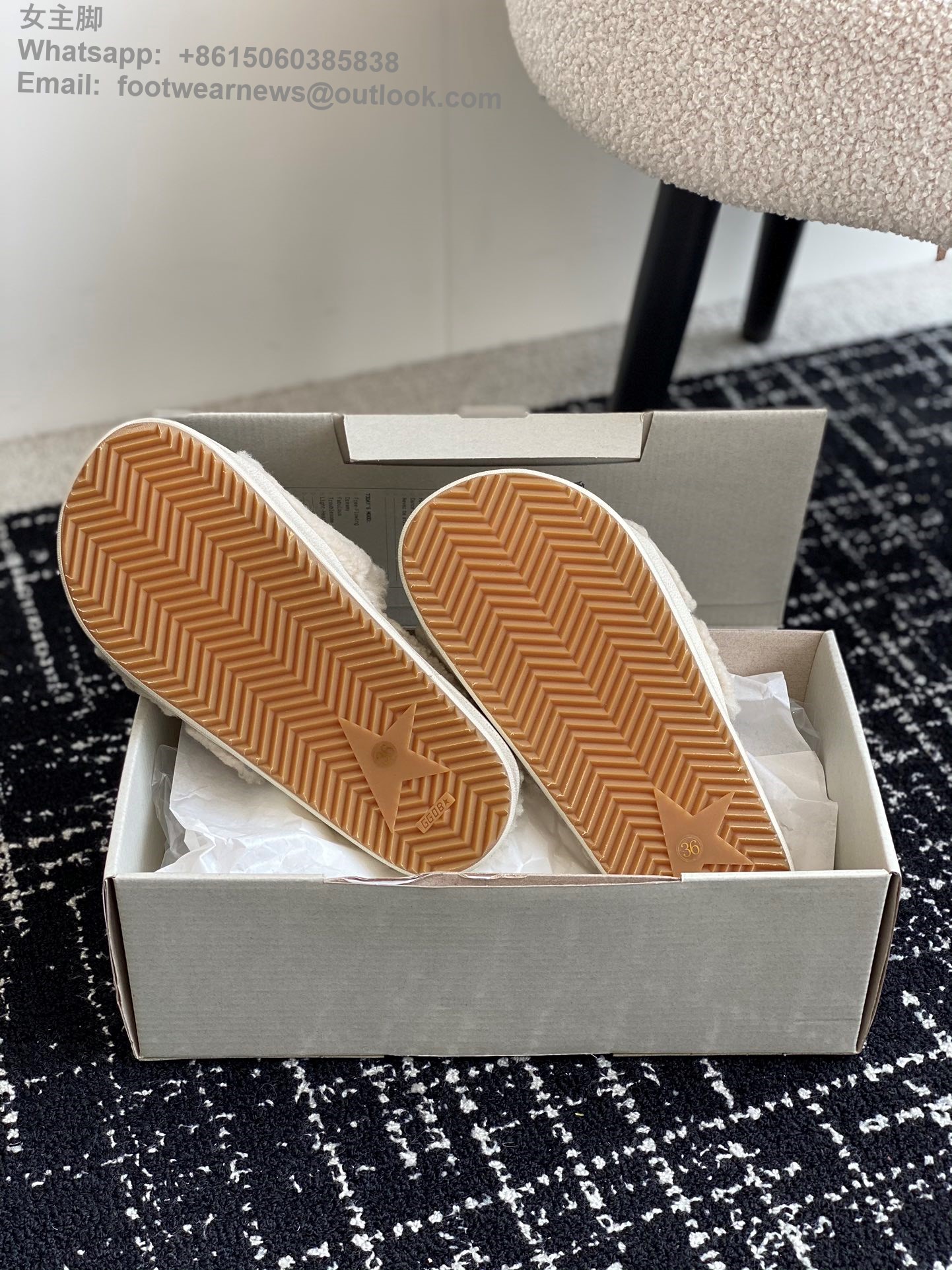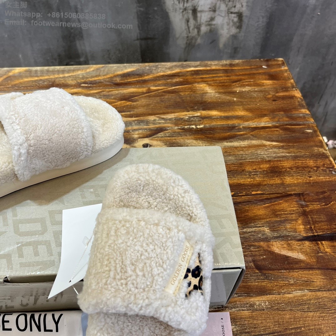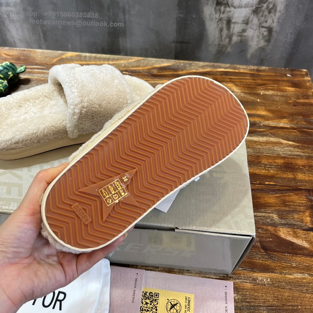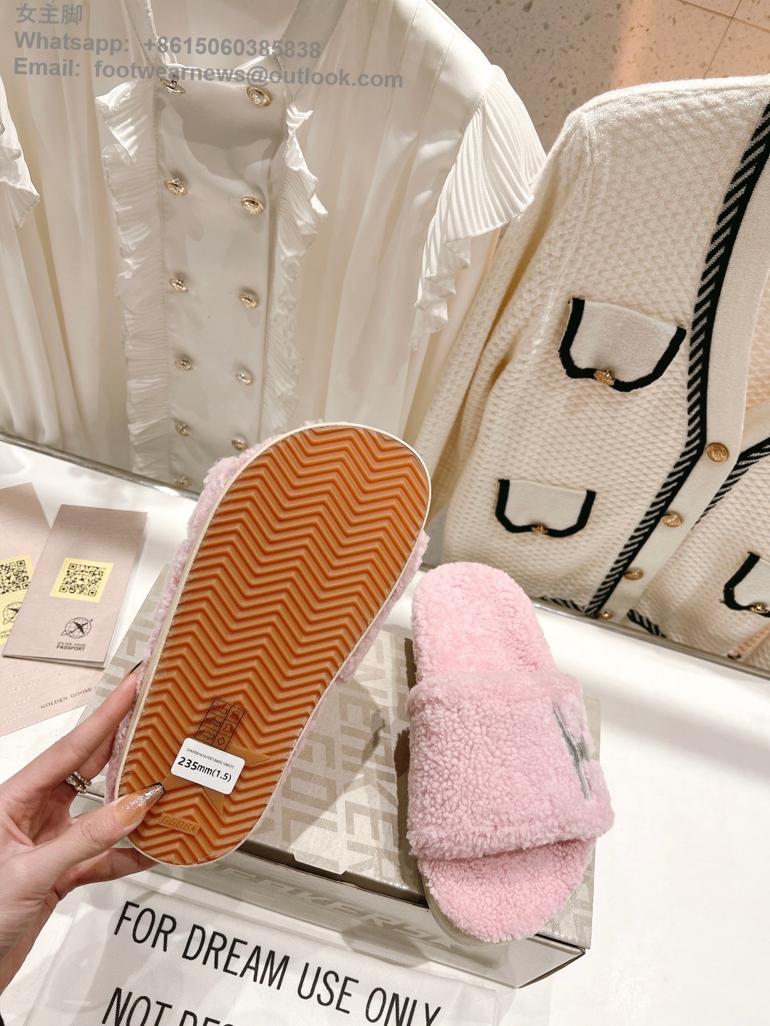 GOLDEN GOOSE Shearling slip-on sandals Slides Open round toe GGDB Women Shoes