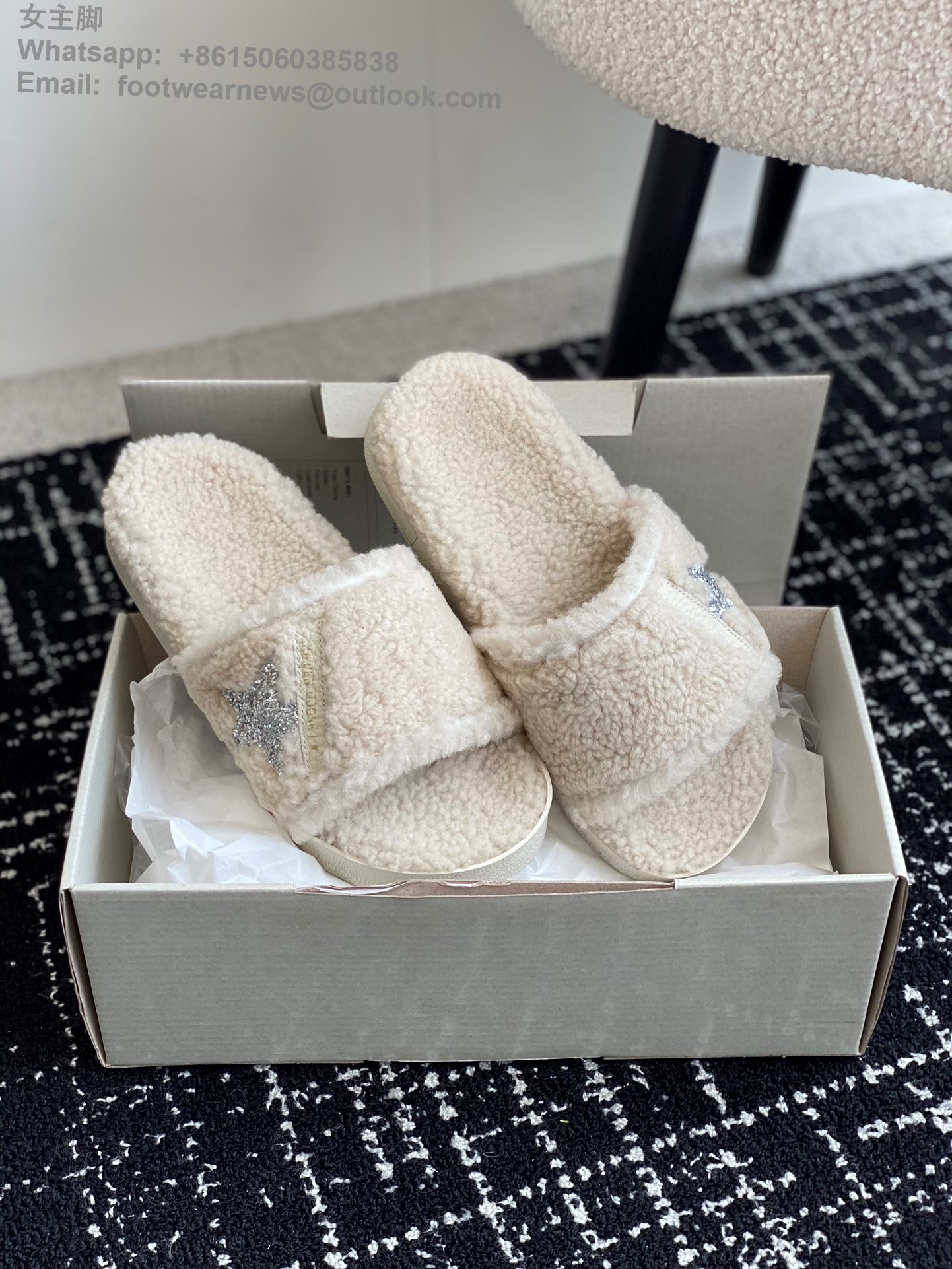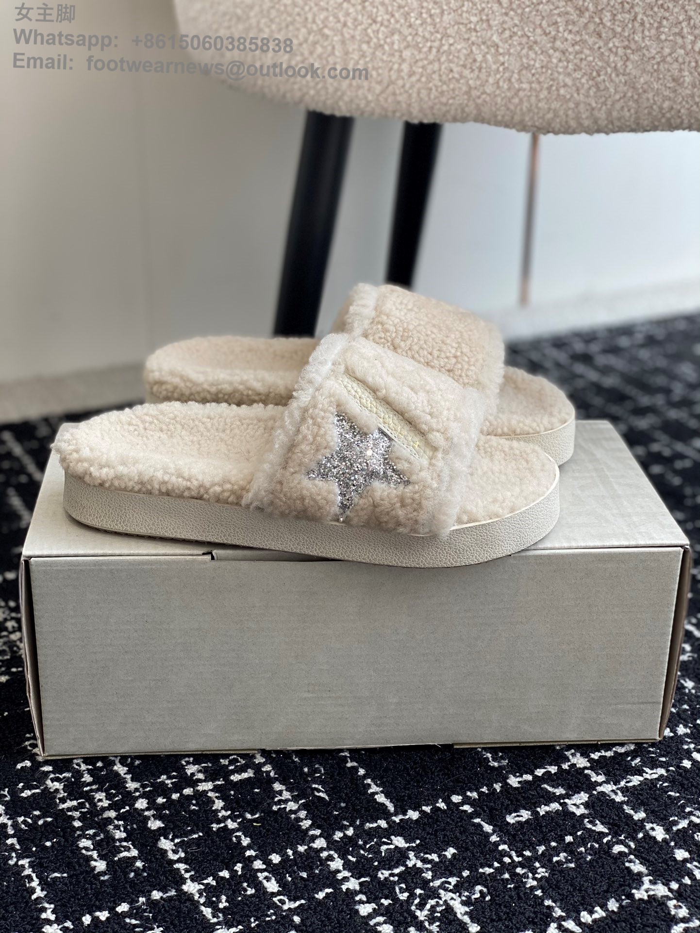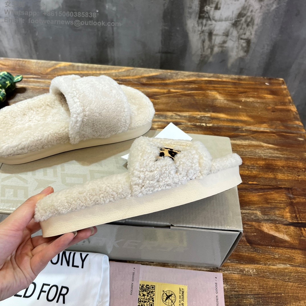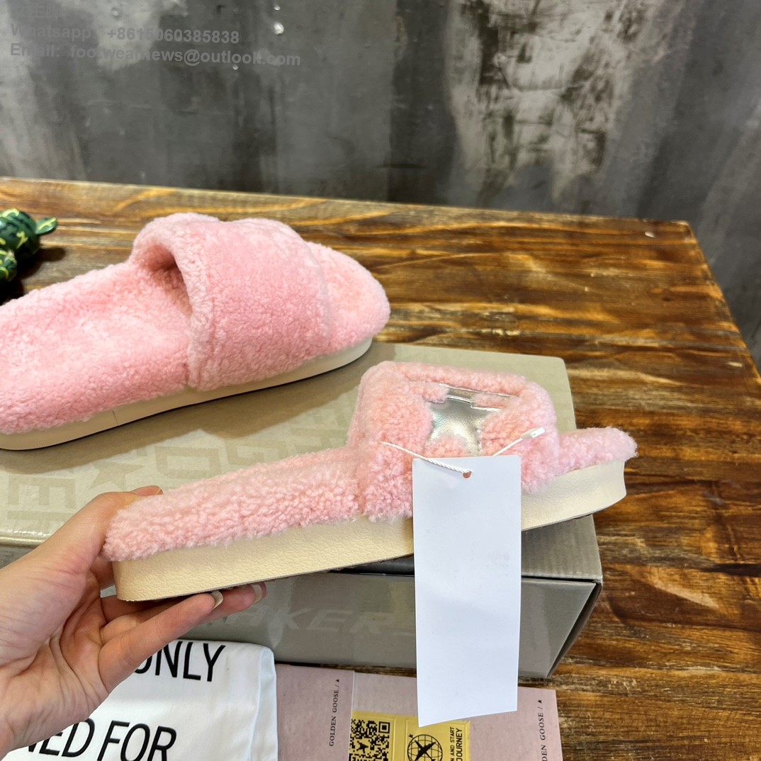 GOLDEN GOOSE Shearling slip-on sandals Slides Open round toe GGDB Women Shoes