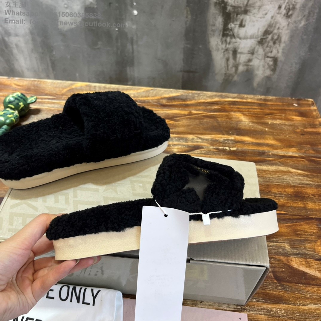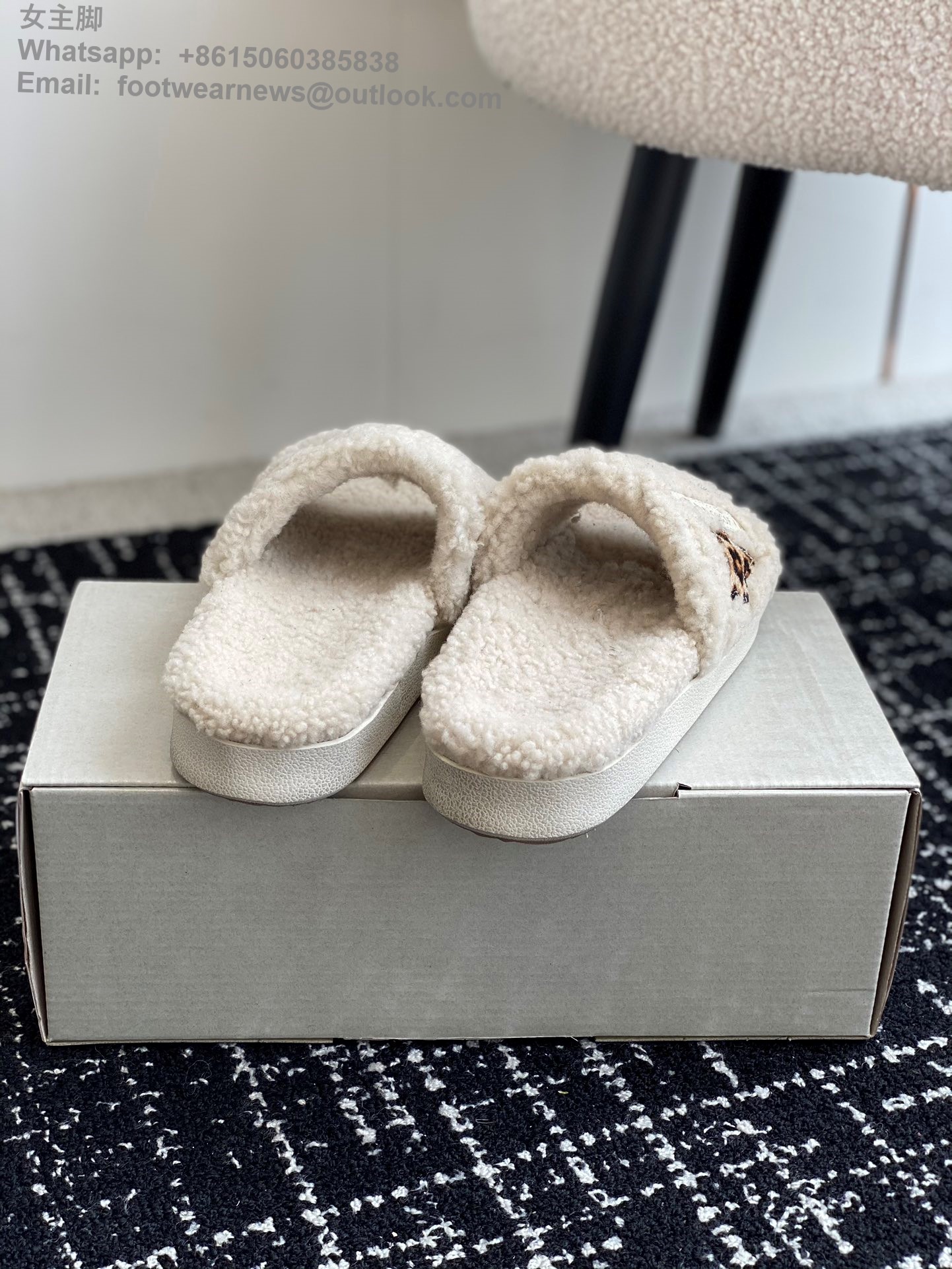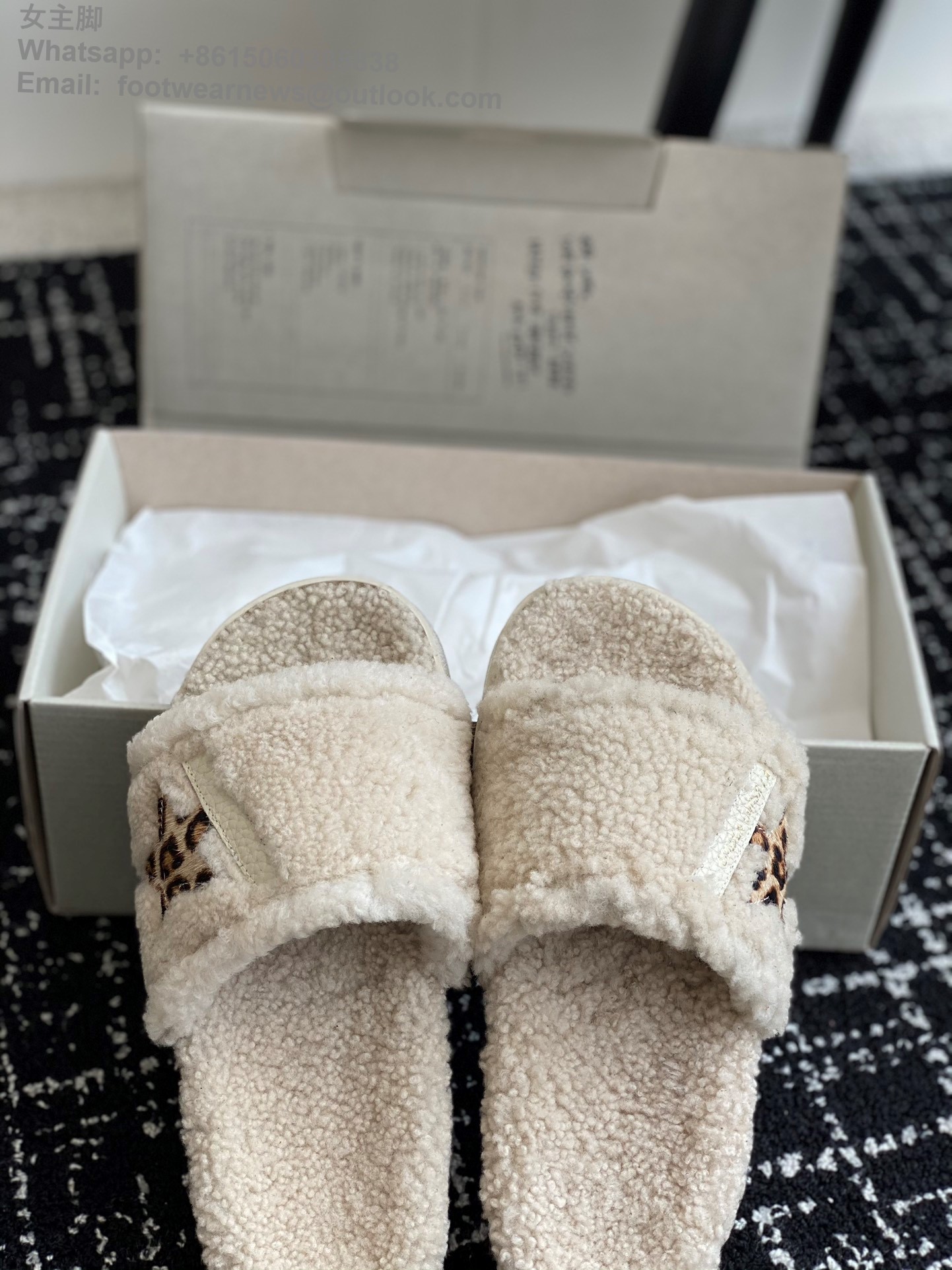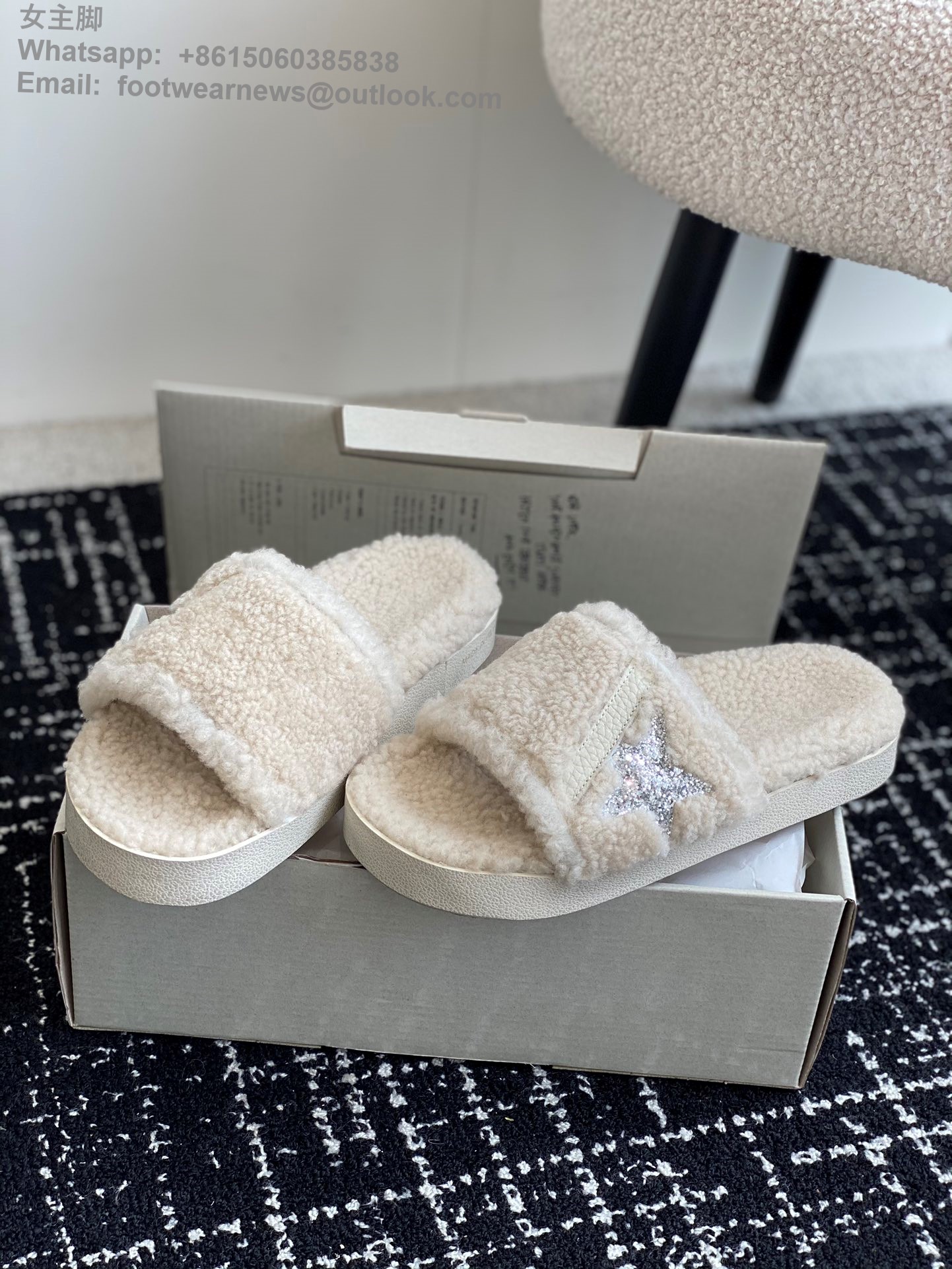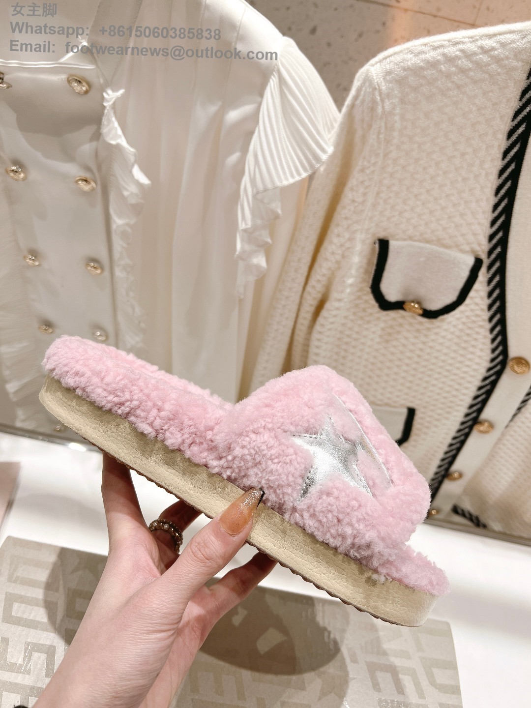GOLDEN GOOSE Shearling slip-on sandals Slides Open round toe GGDB Women Shoes