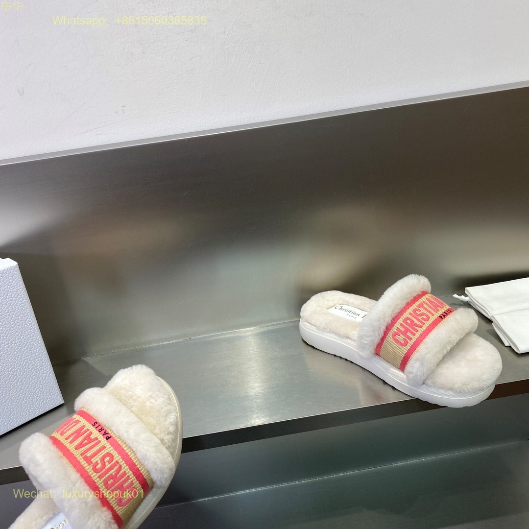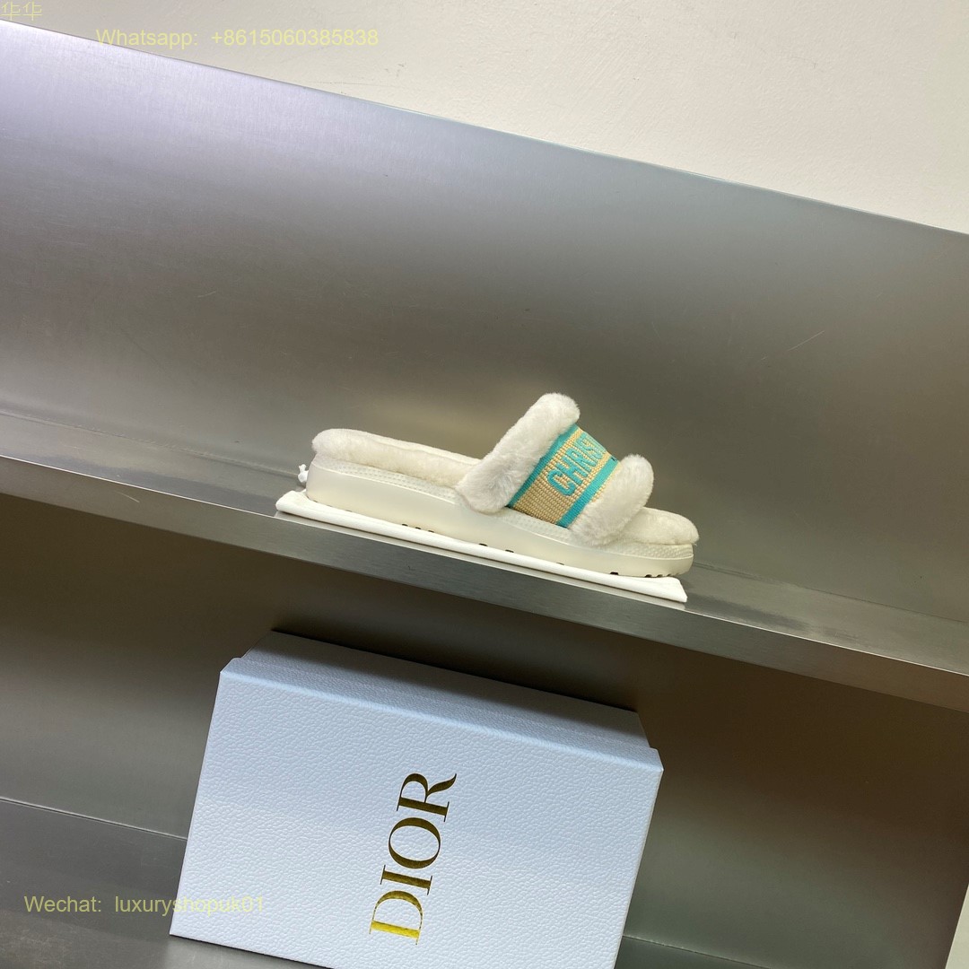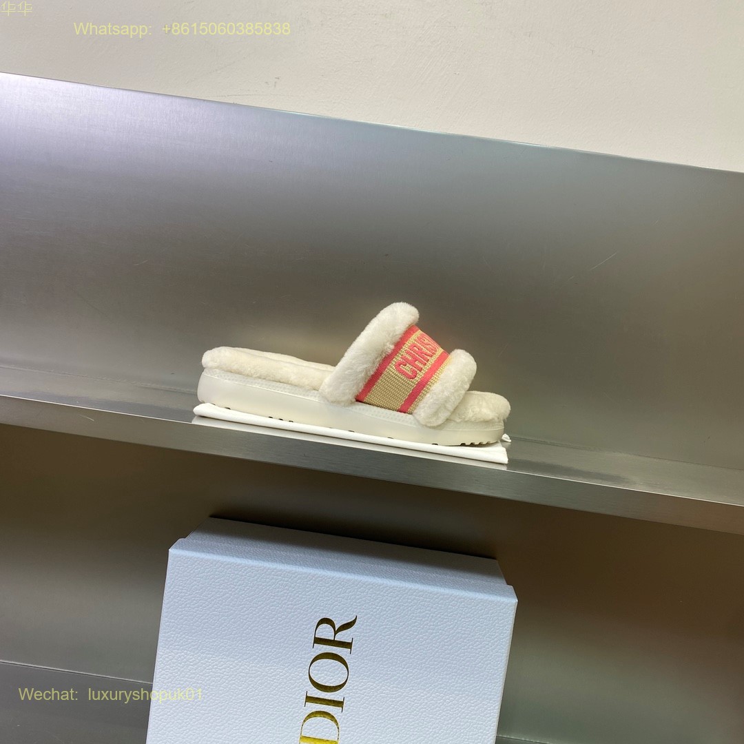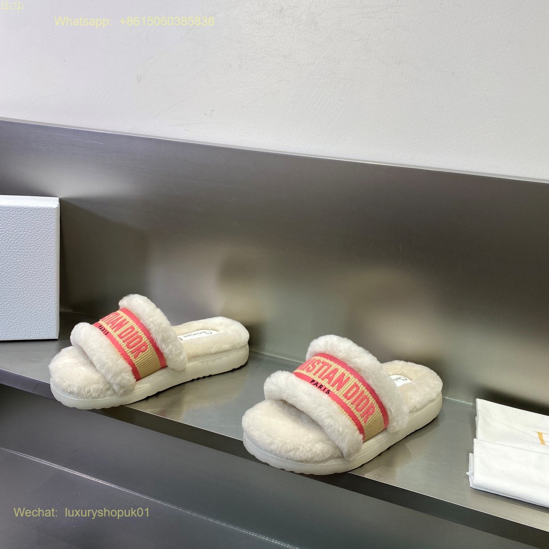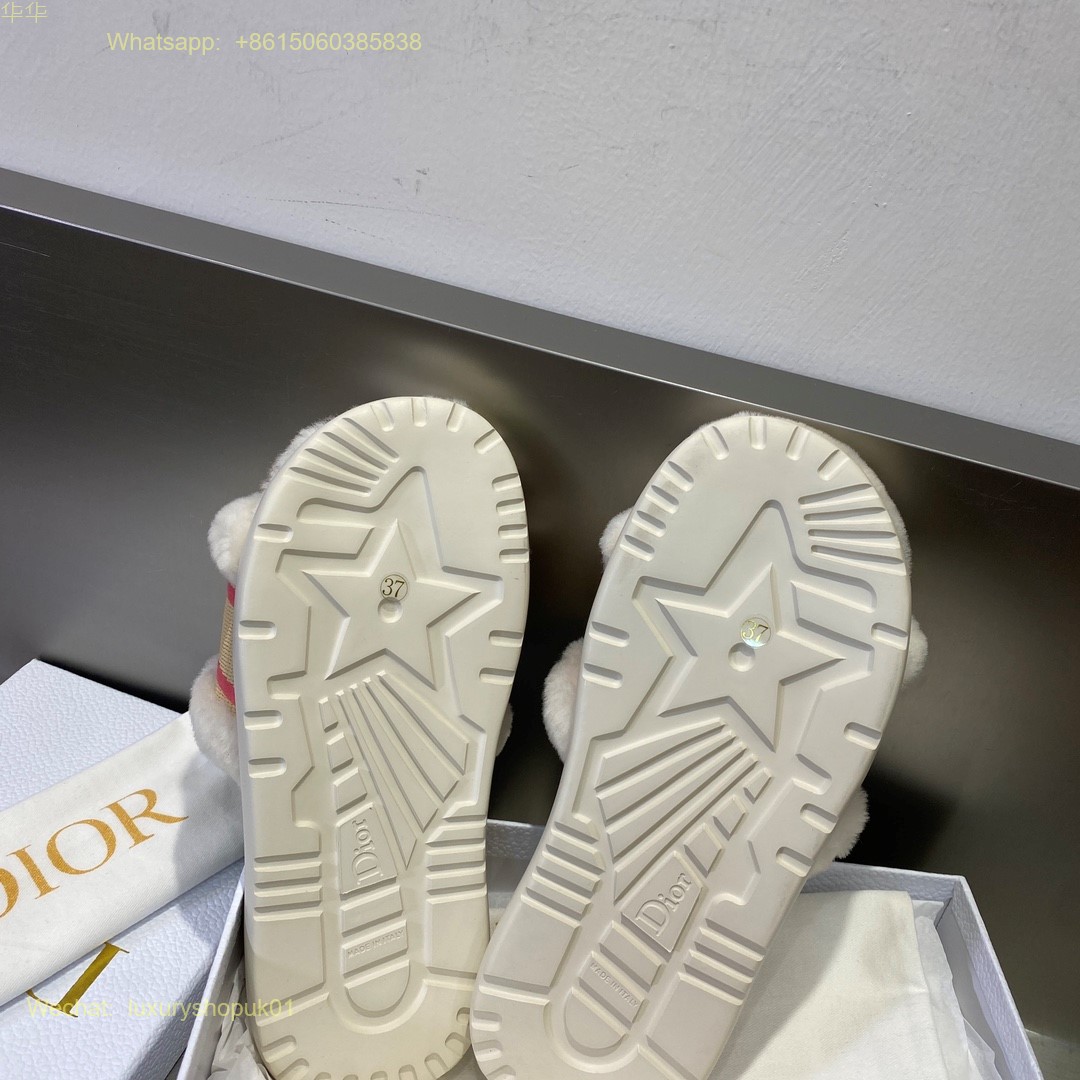 Christian Dior Wool Fur Shearling Slides Women Shoes
