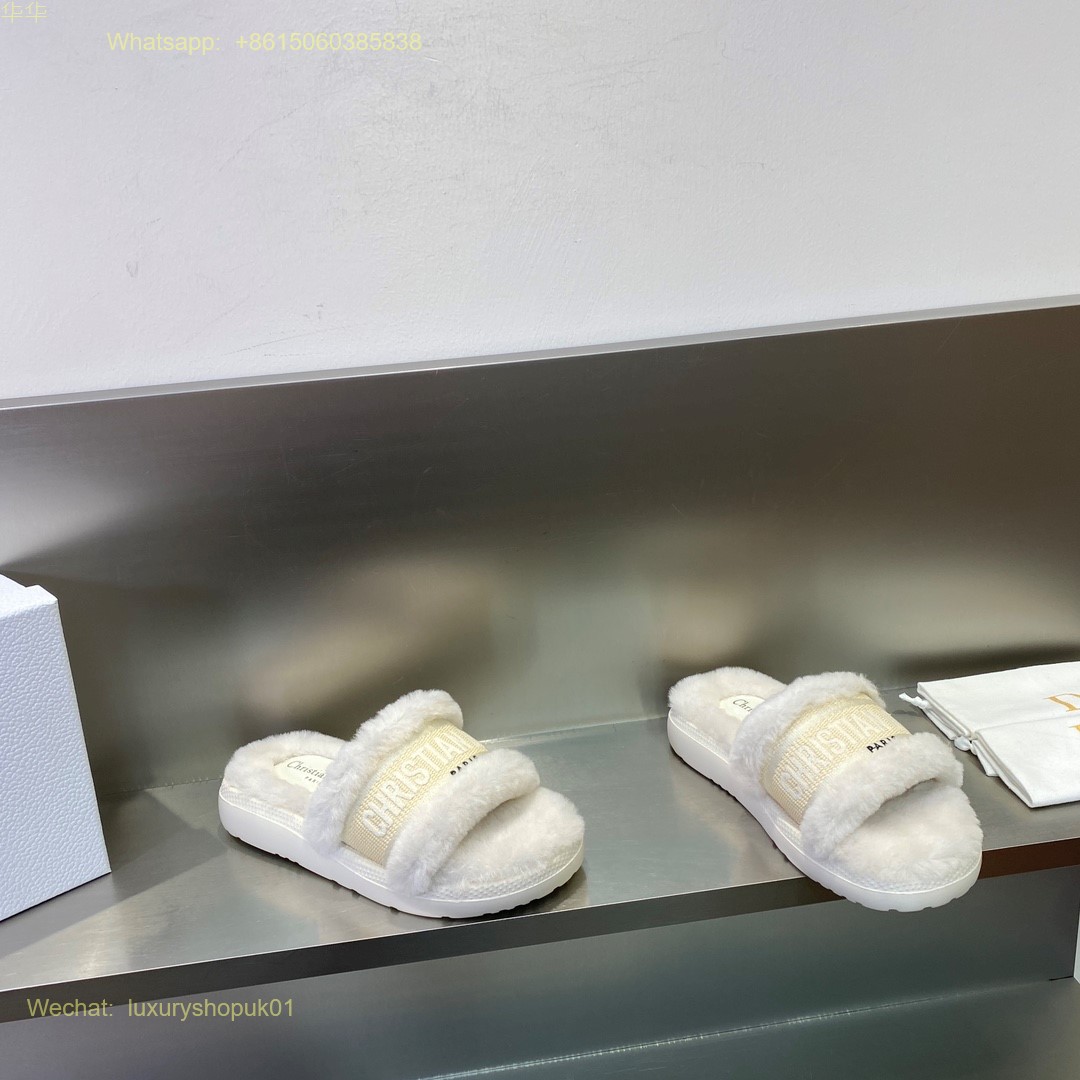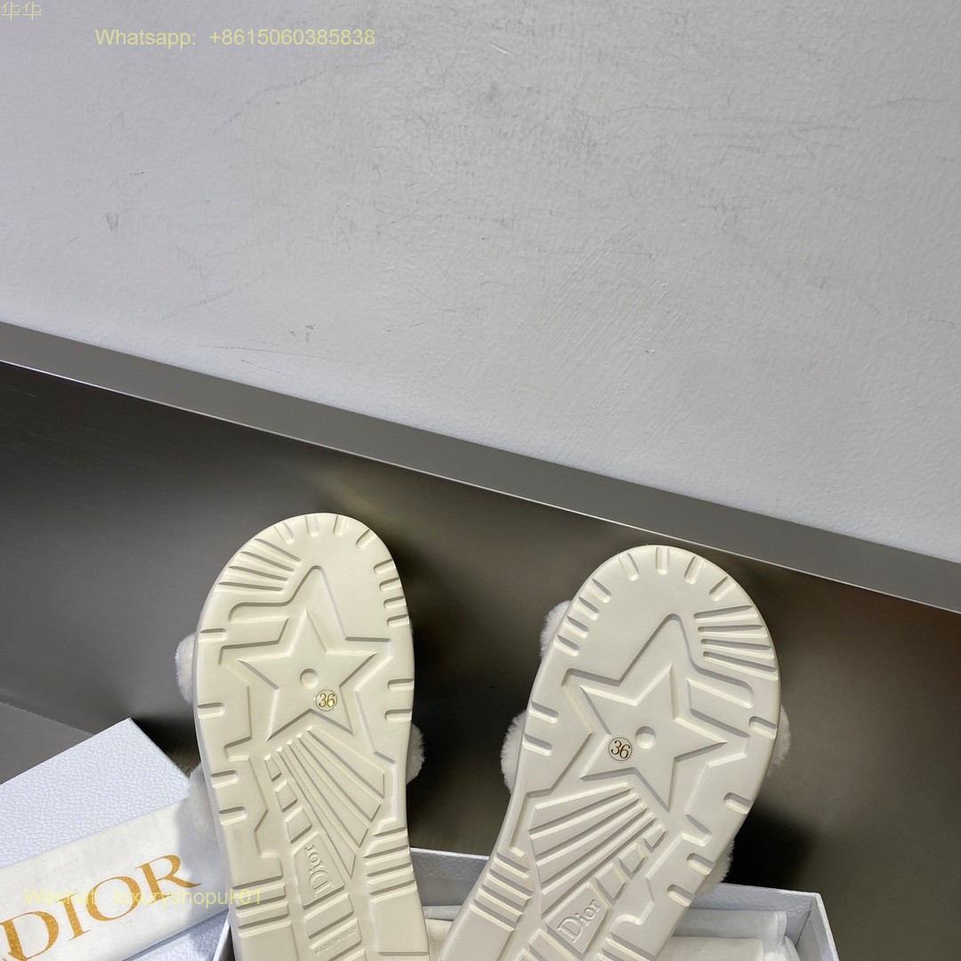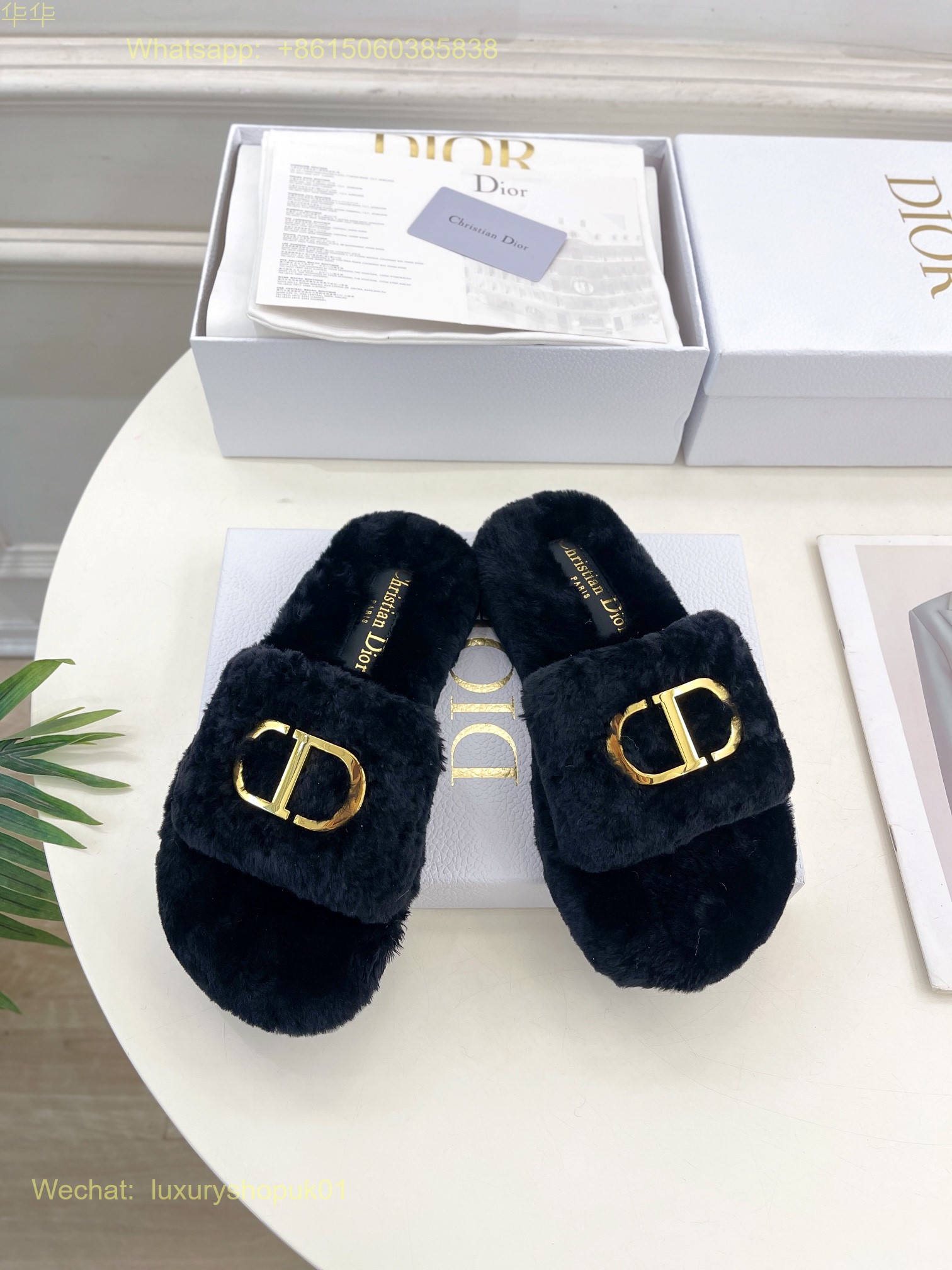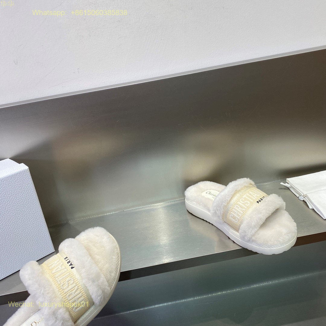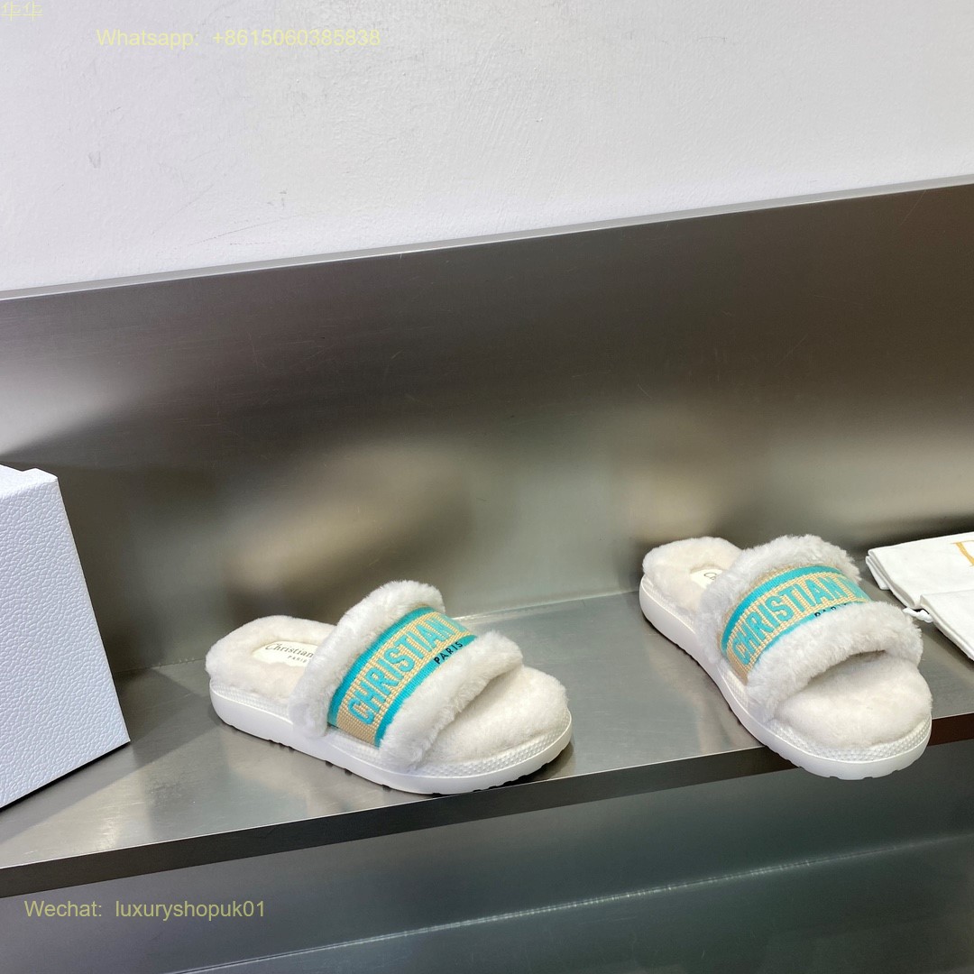 Christian Dior Wool Fur Shearling Slides Women Shoes