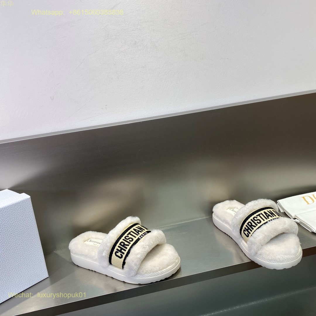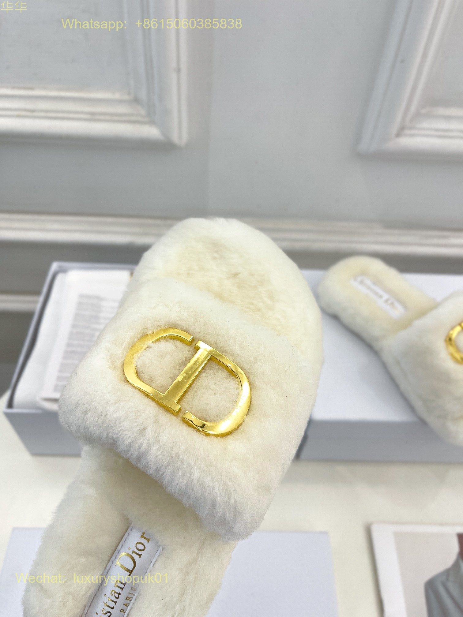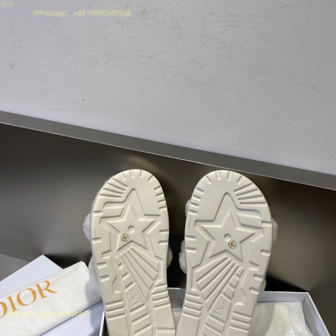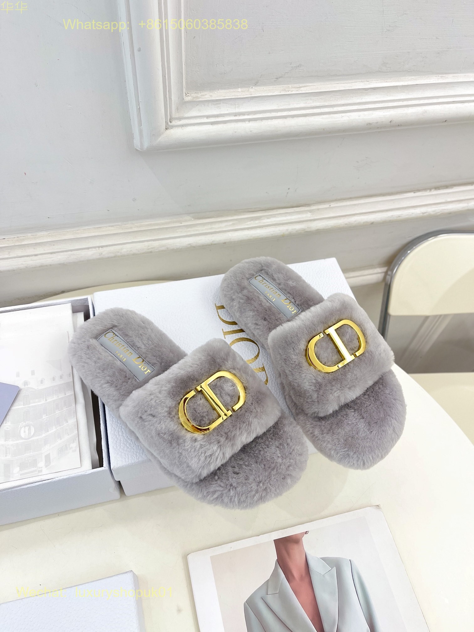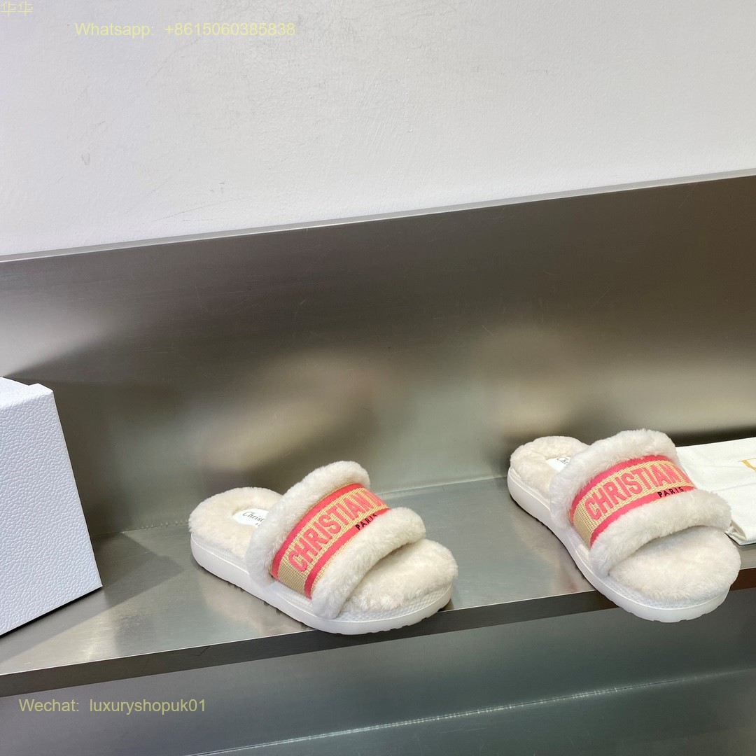 Christian Dior Wool Fur Shearling Slides Women Shoes