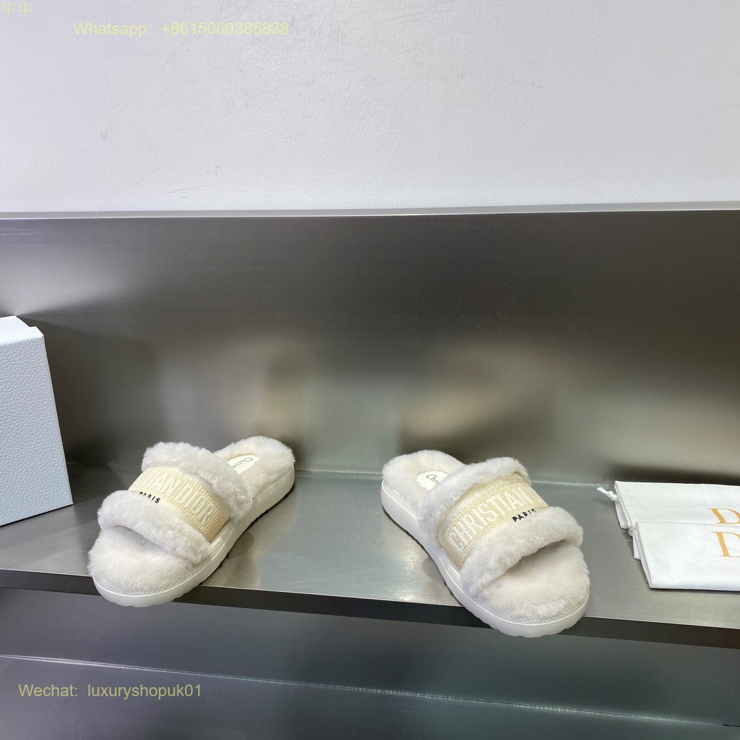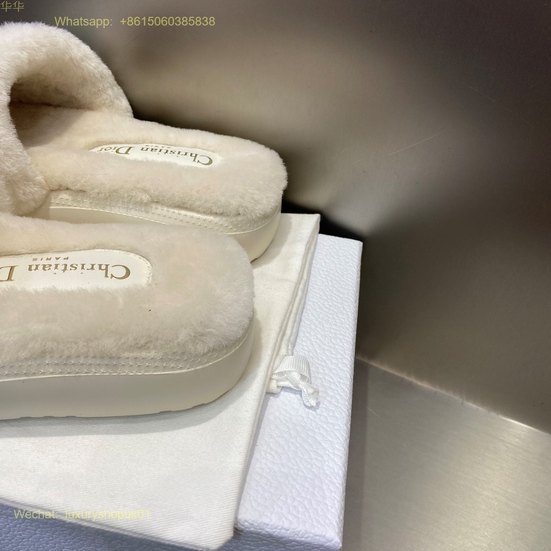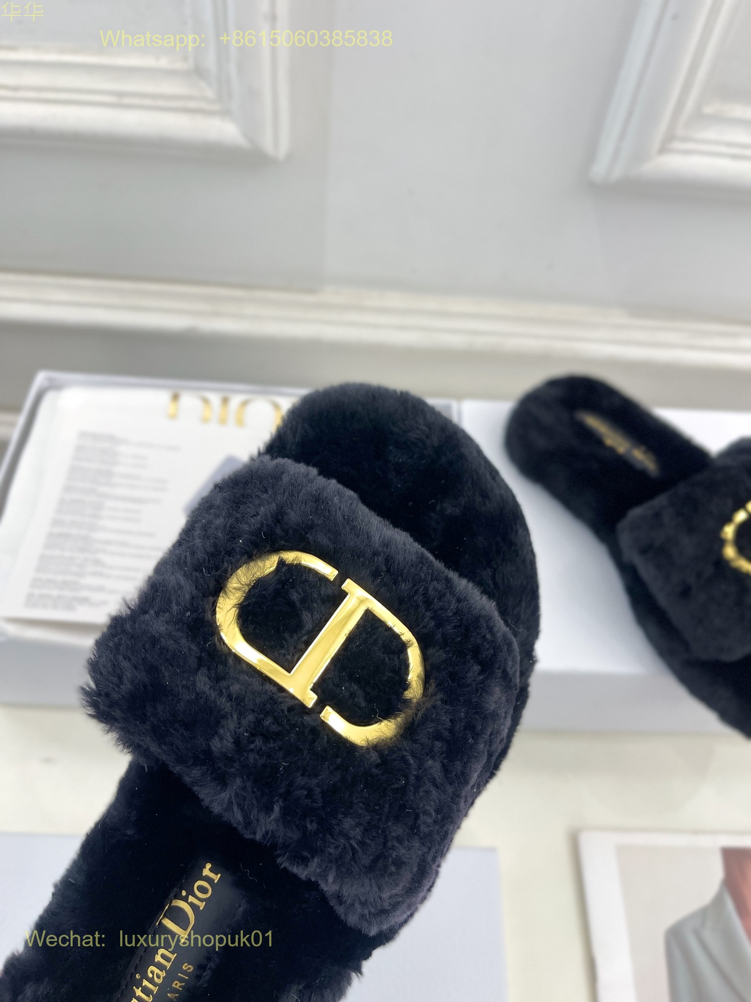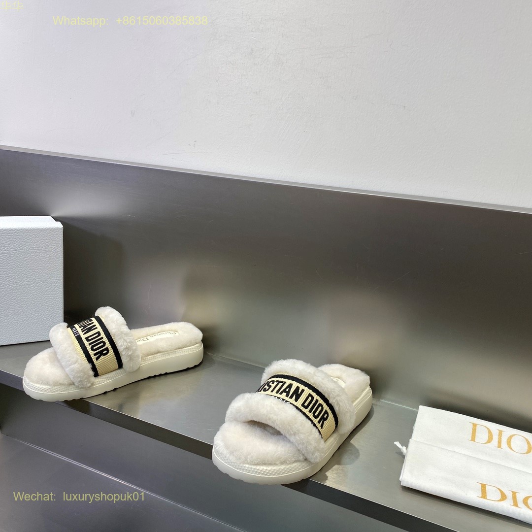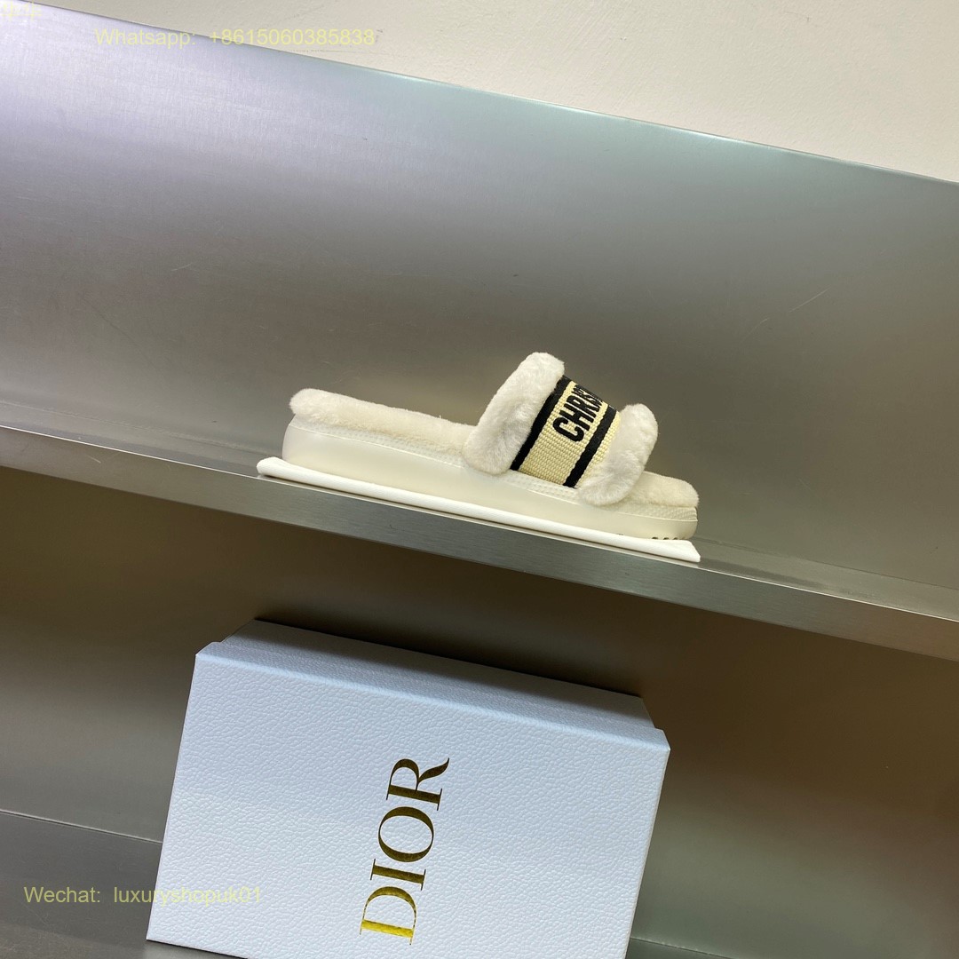 Christian Dior Wool Fur Shearling Slides Women Shoes
