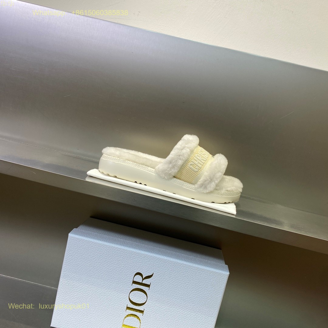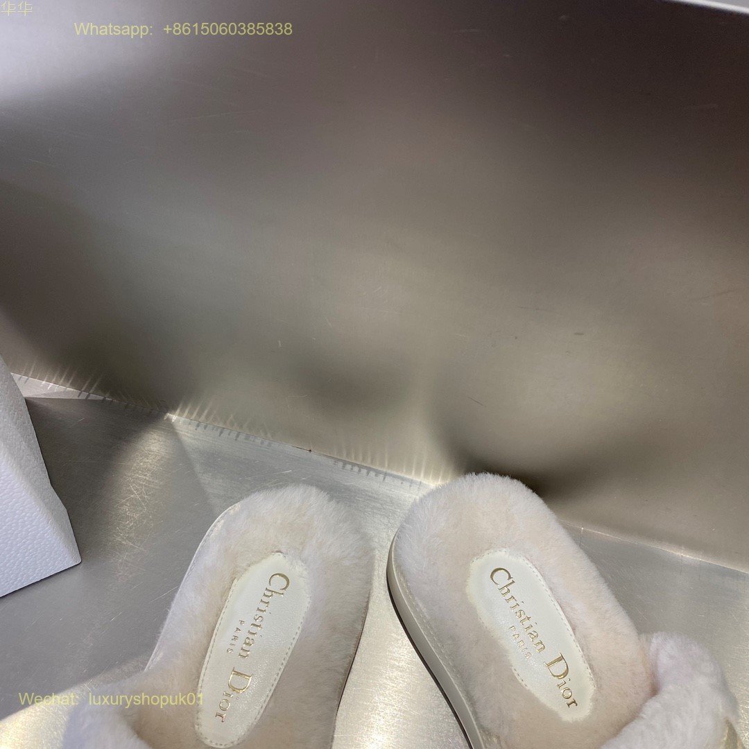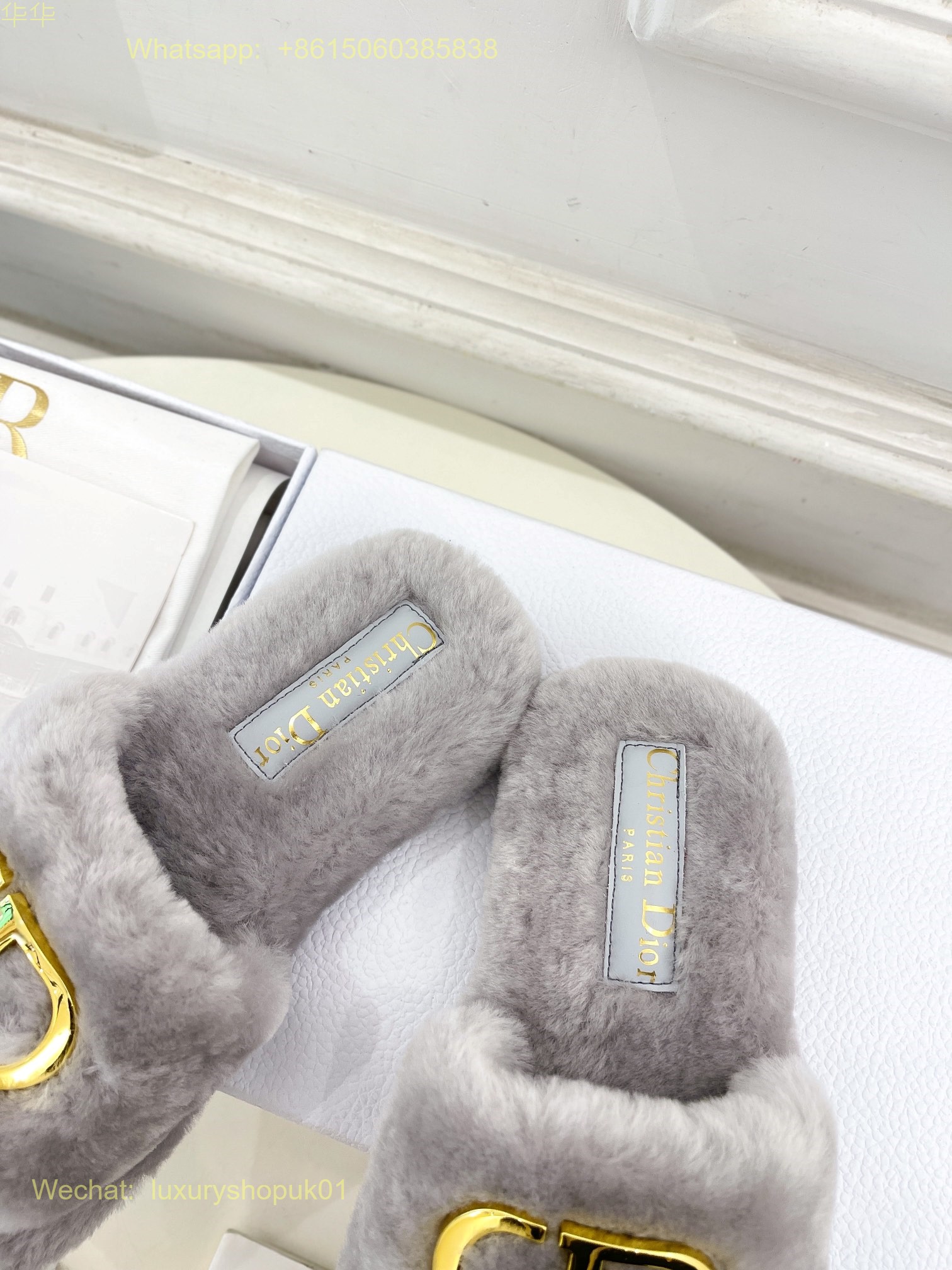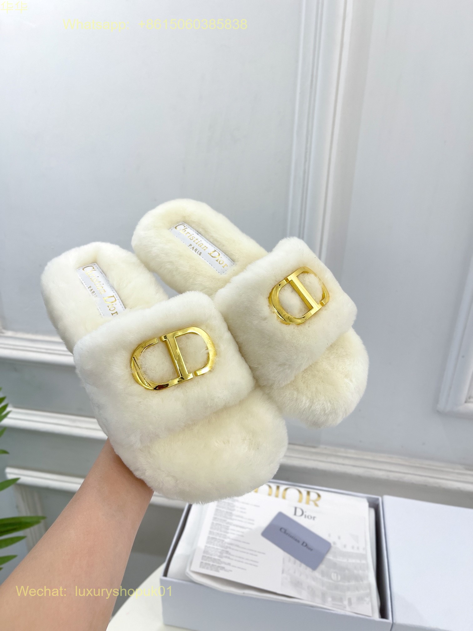 Christian Dior Wool Fur Shearling Slides Women Shoes