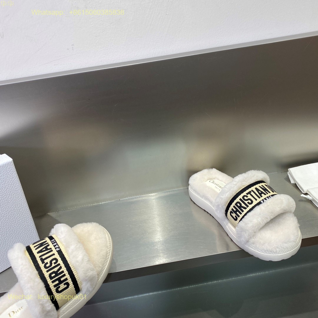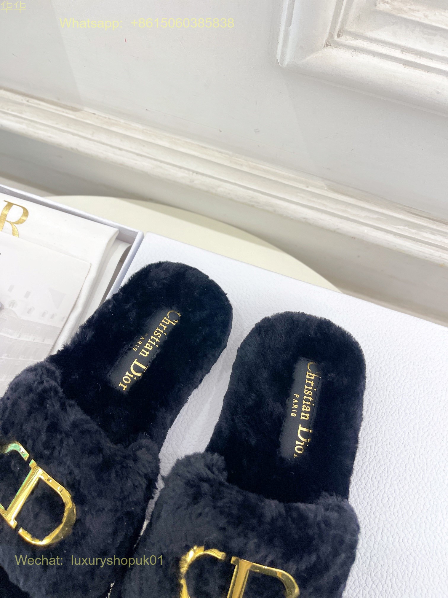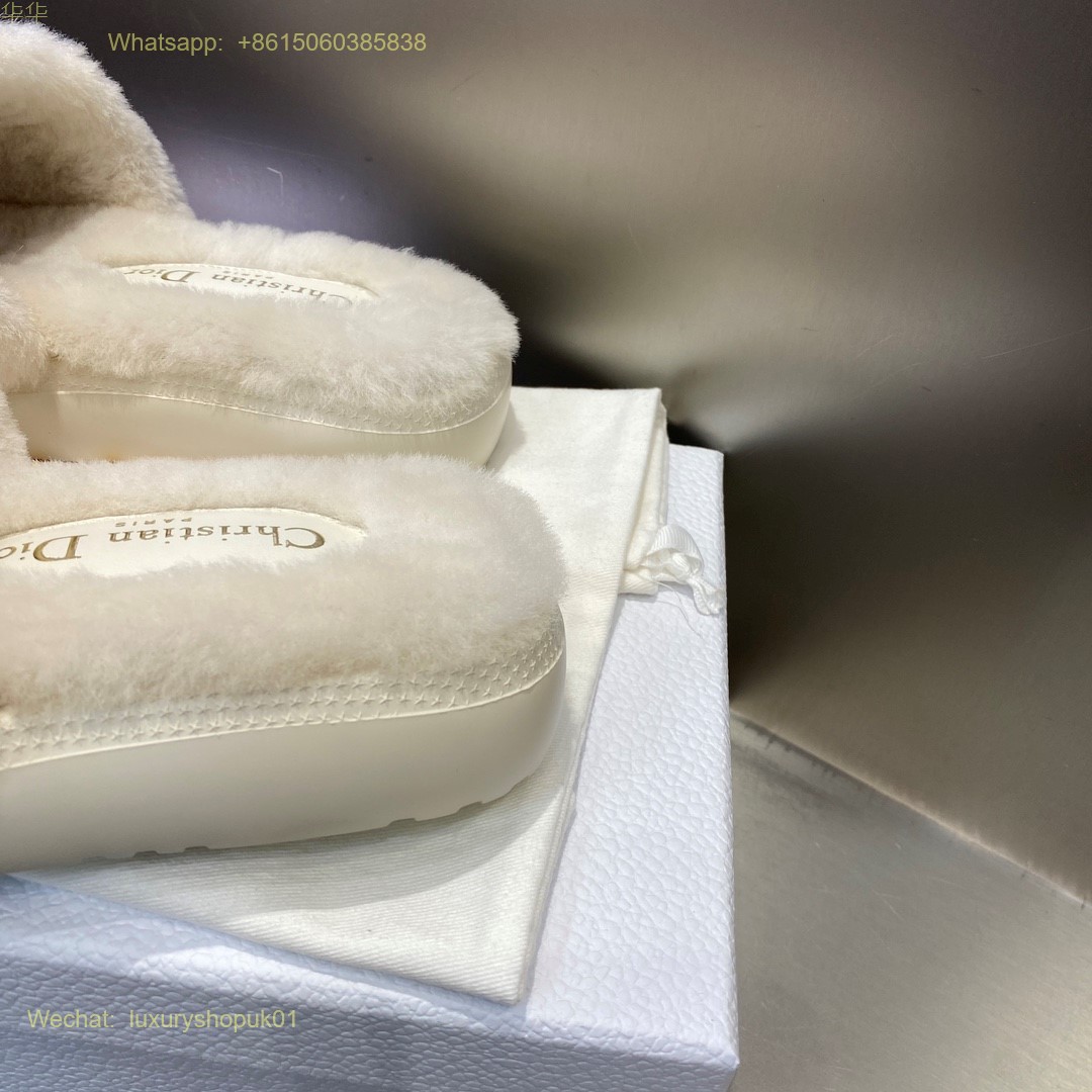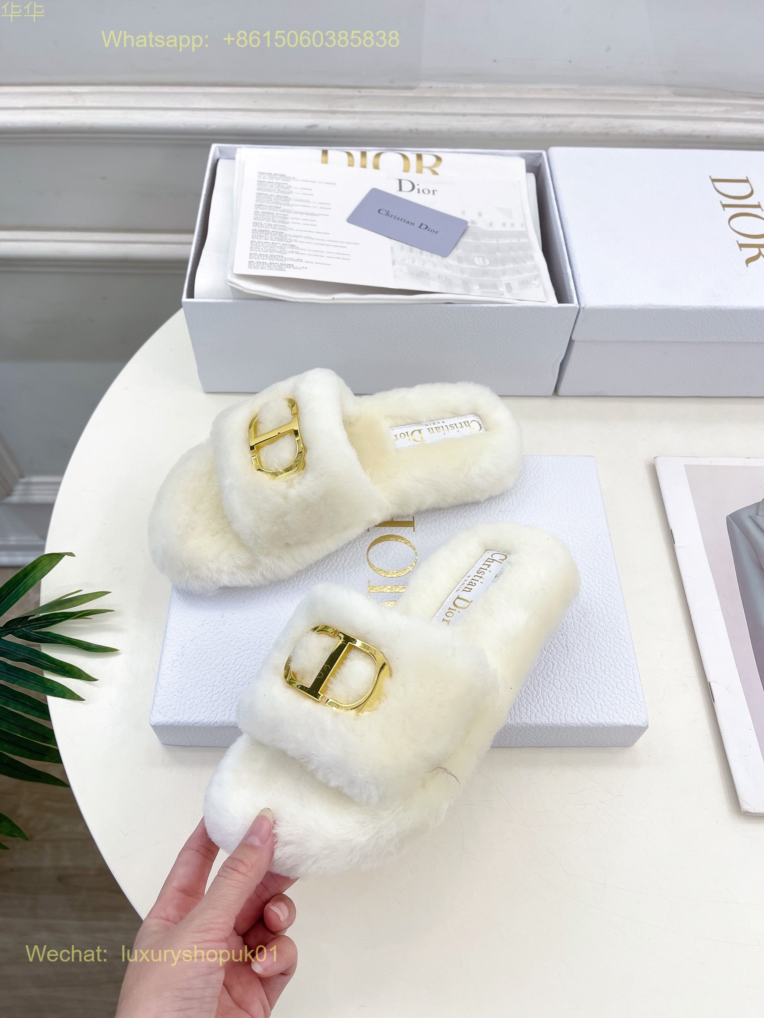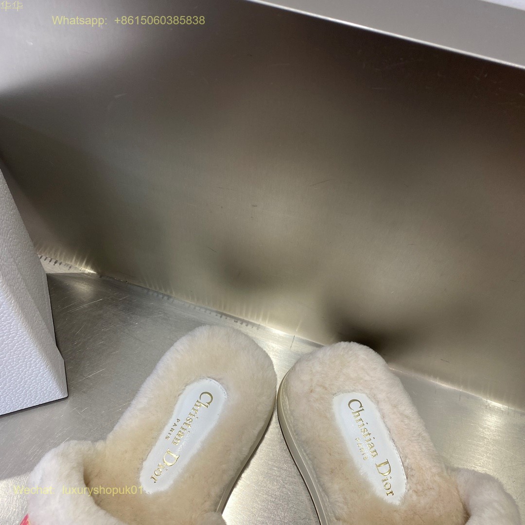 Christian Dior Wool Fur Shearling Slides Women Shoes