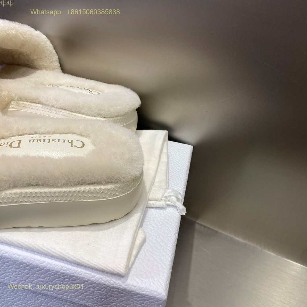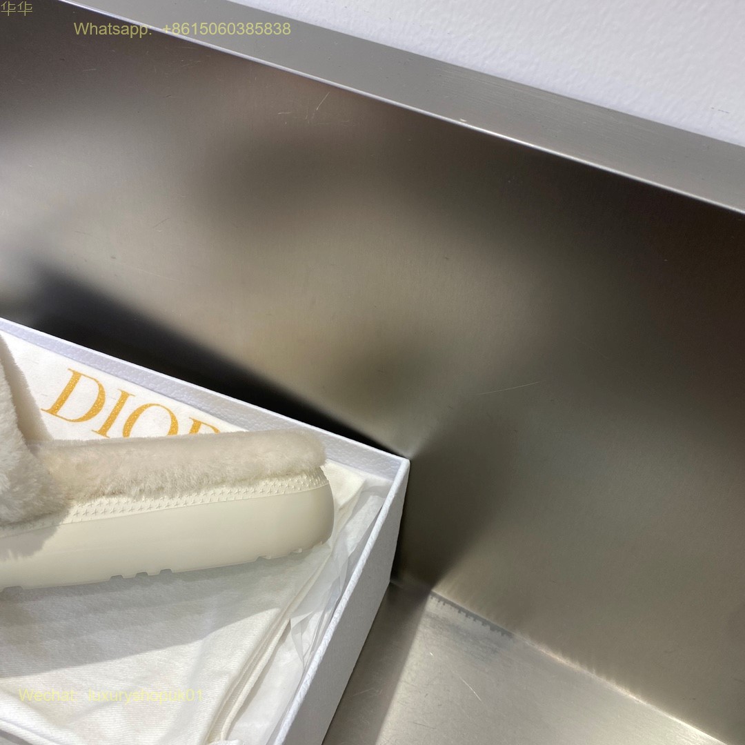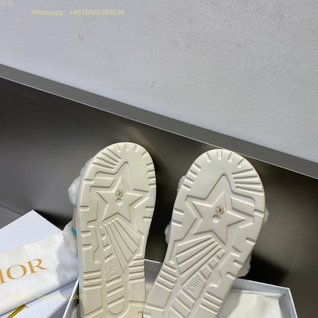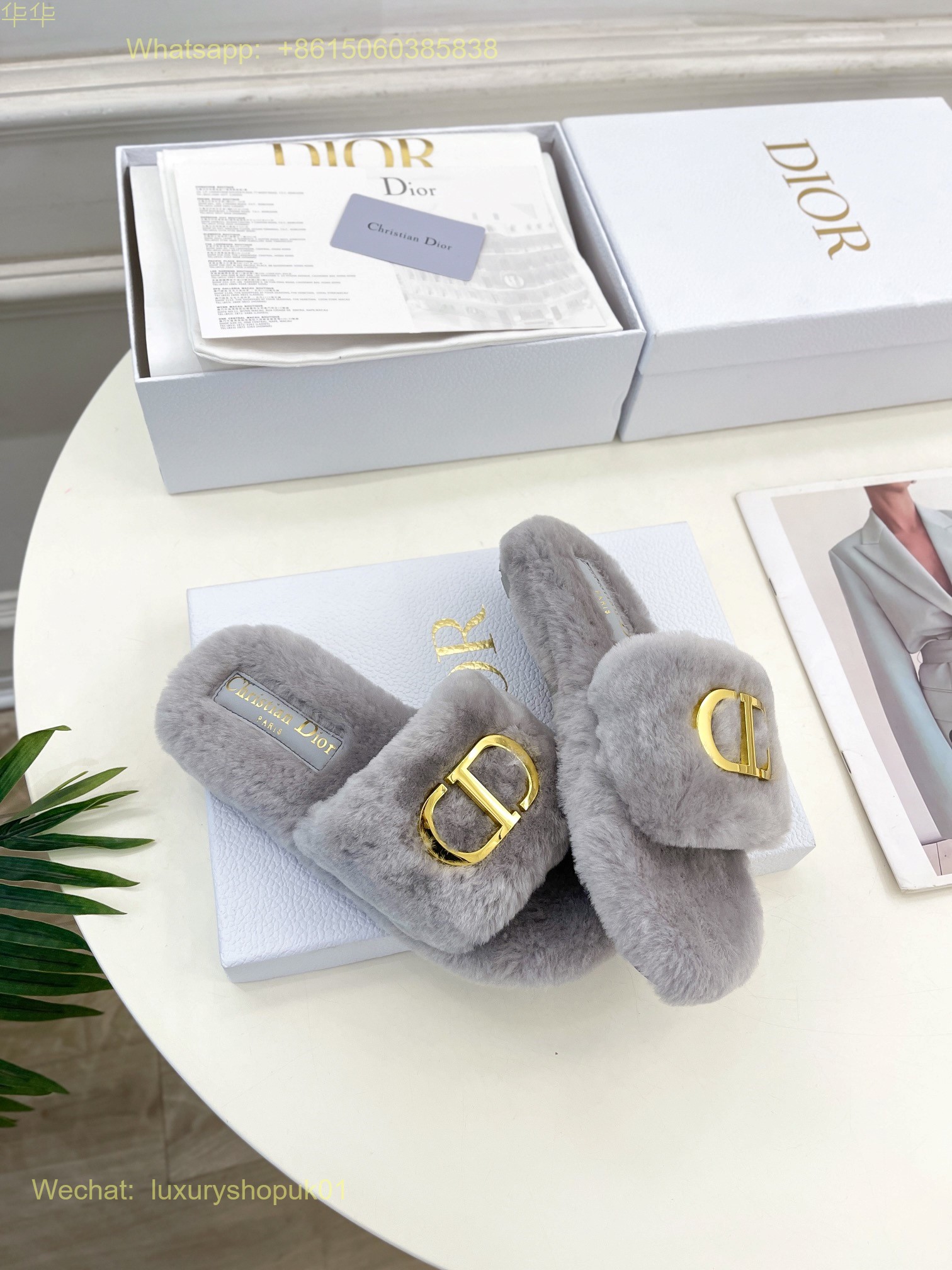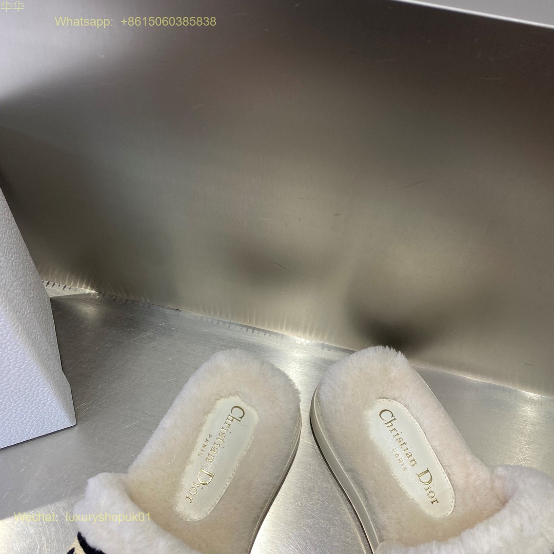 Christian Dior Wool Fur Shearling Slides Women Shoes