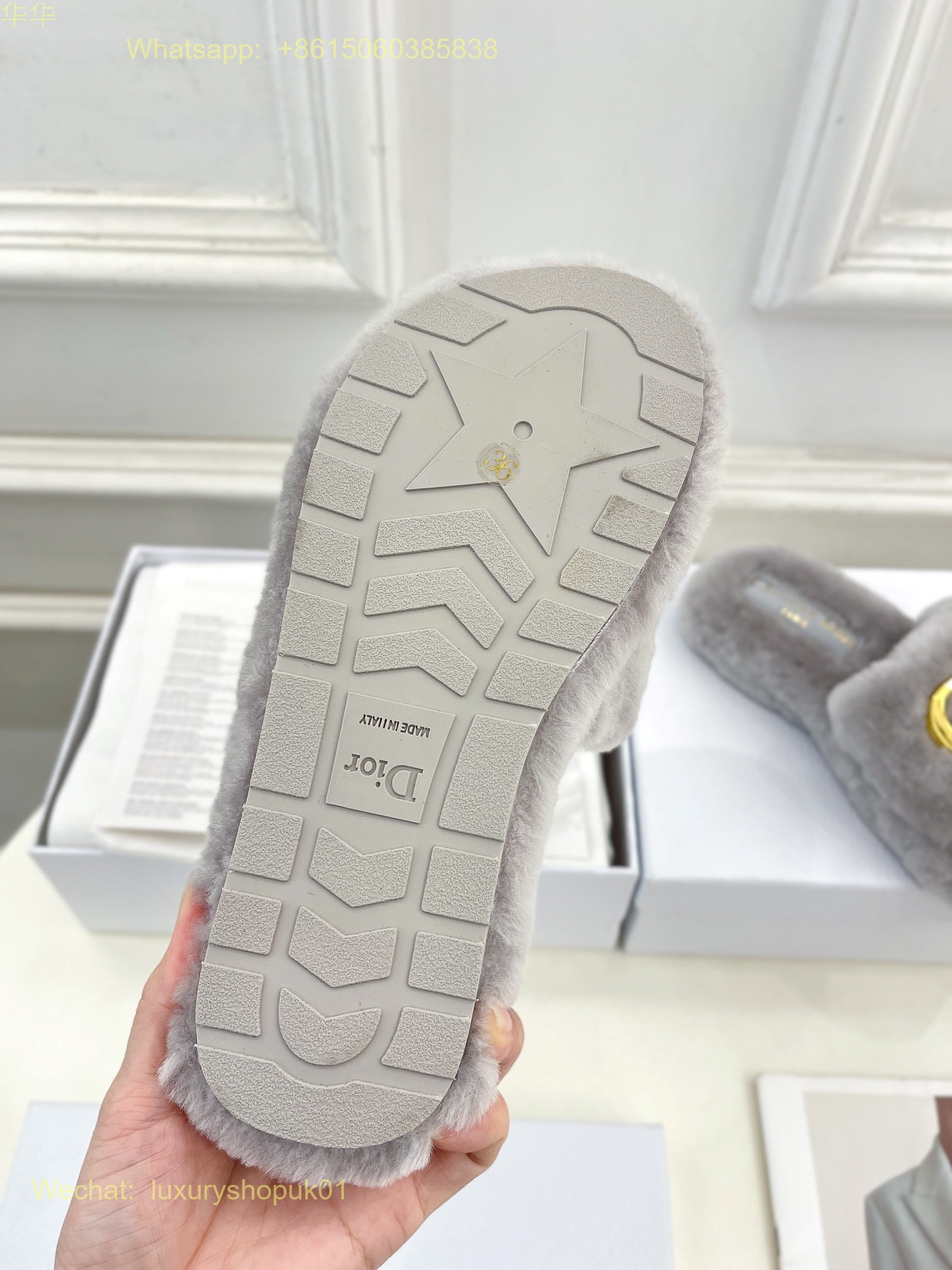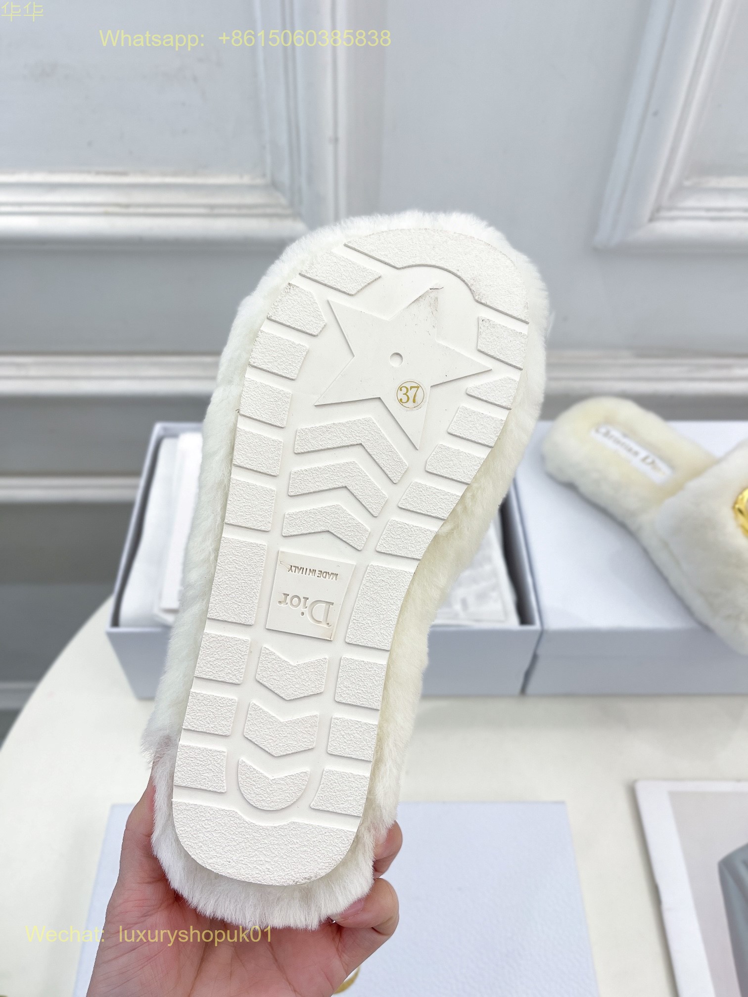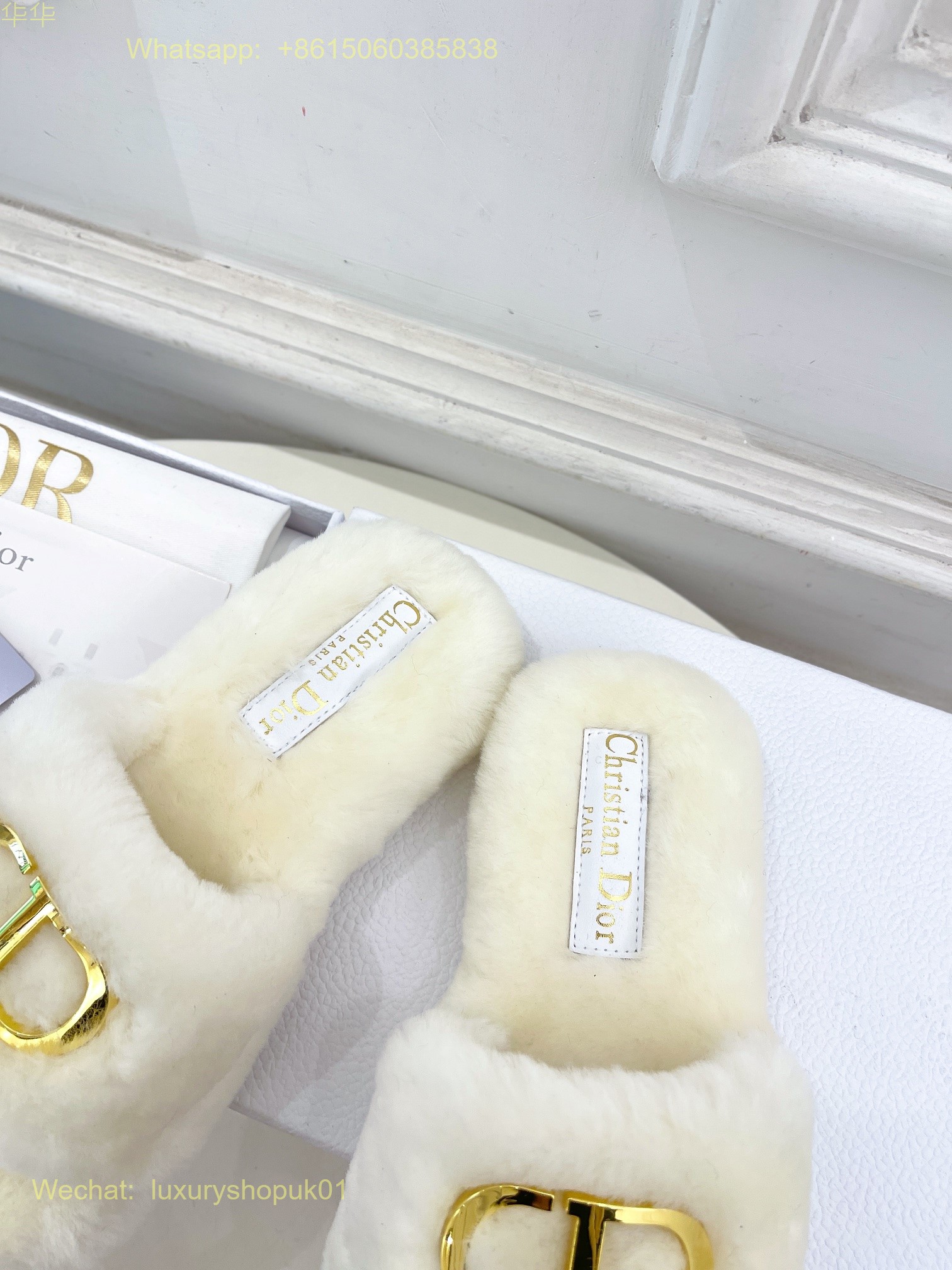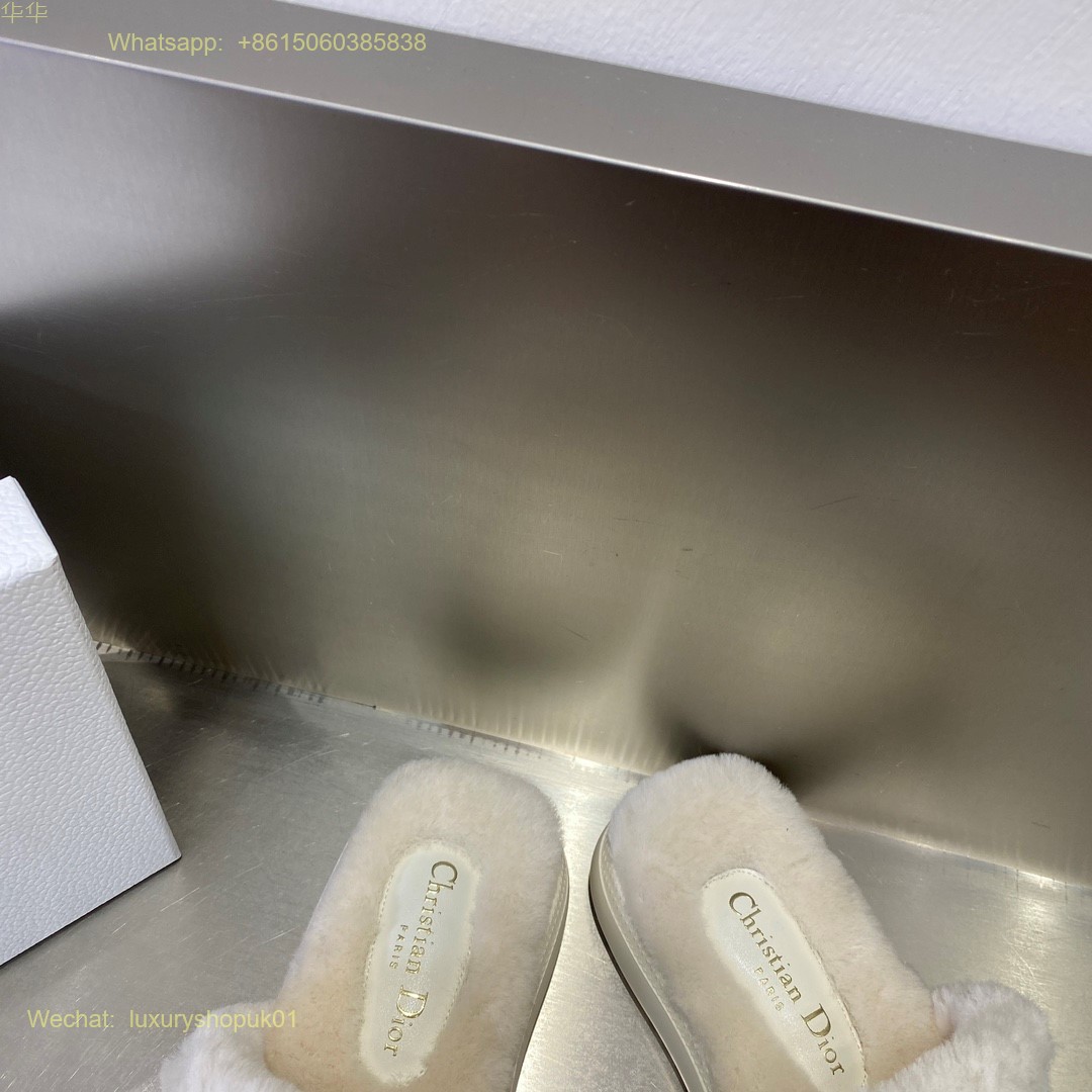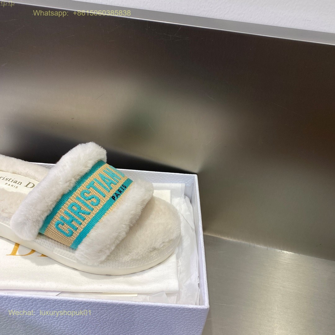 Christian Dior Wool Fur Shearling Slides Women Shoes
