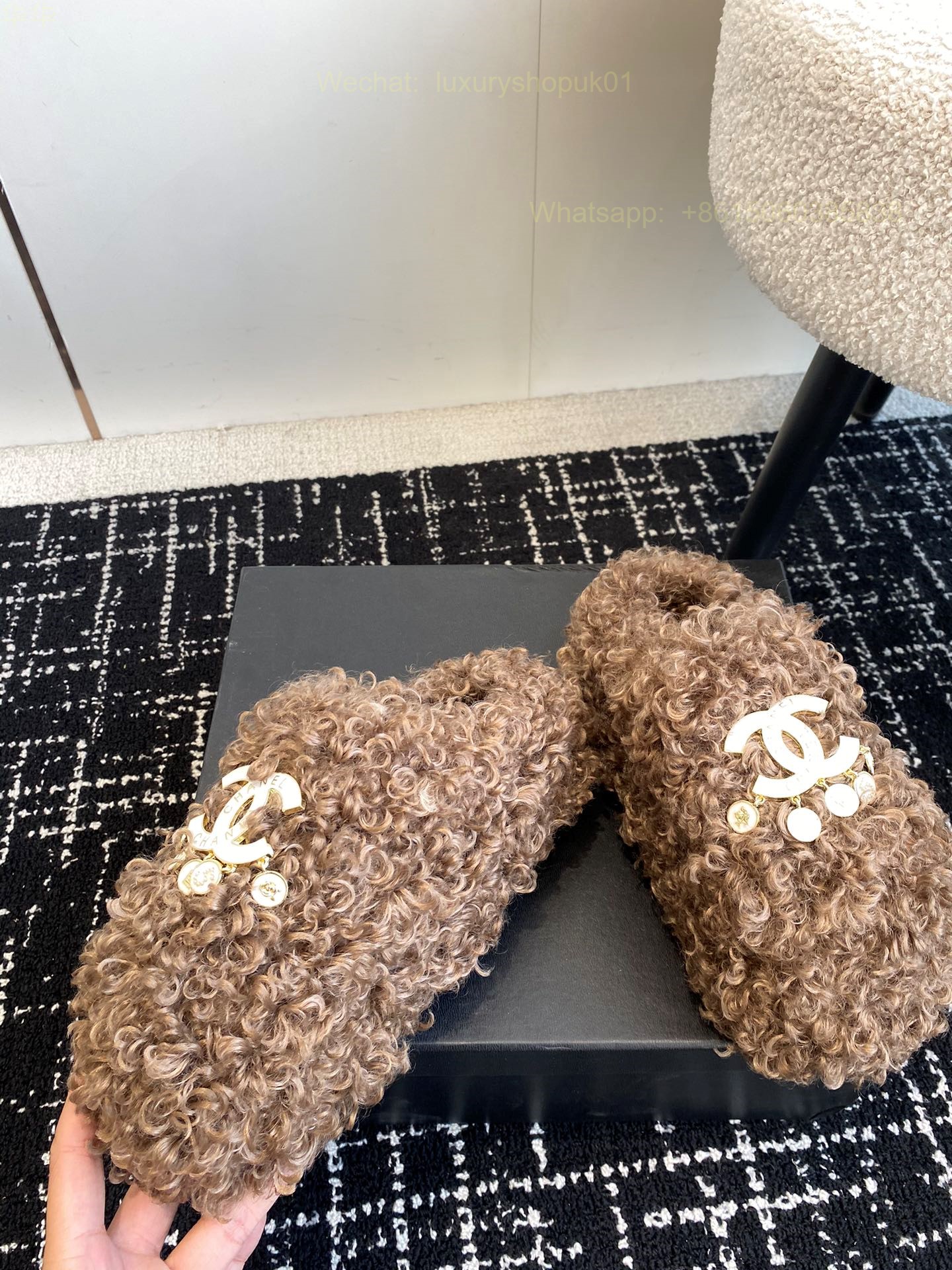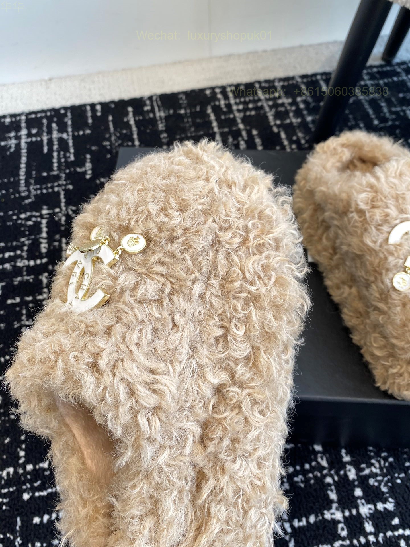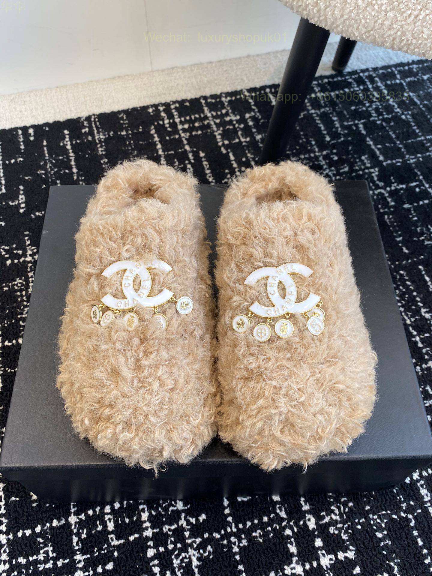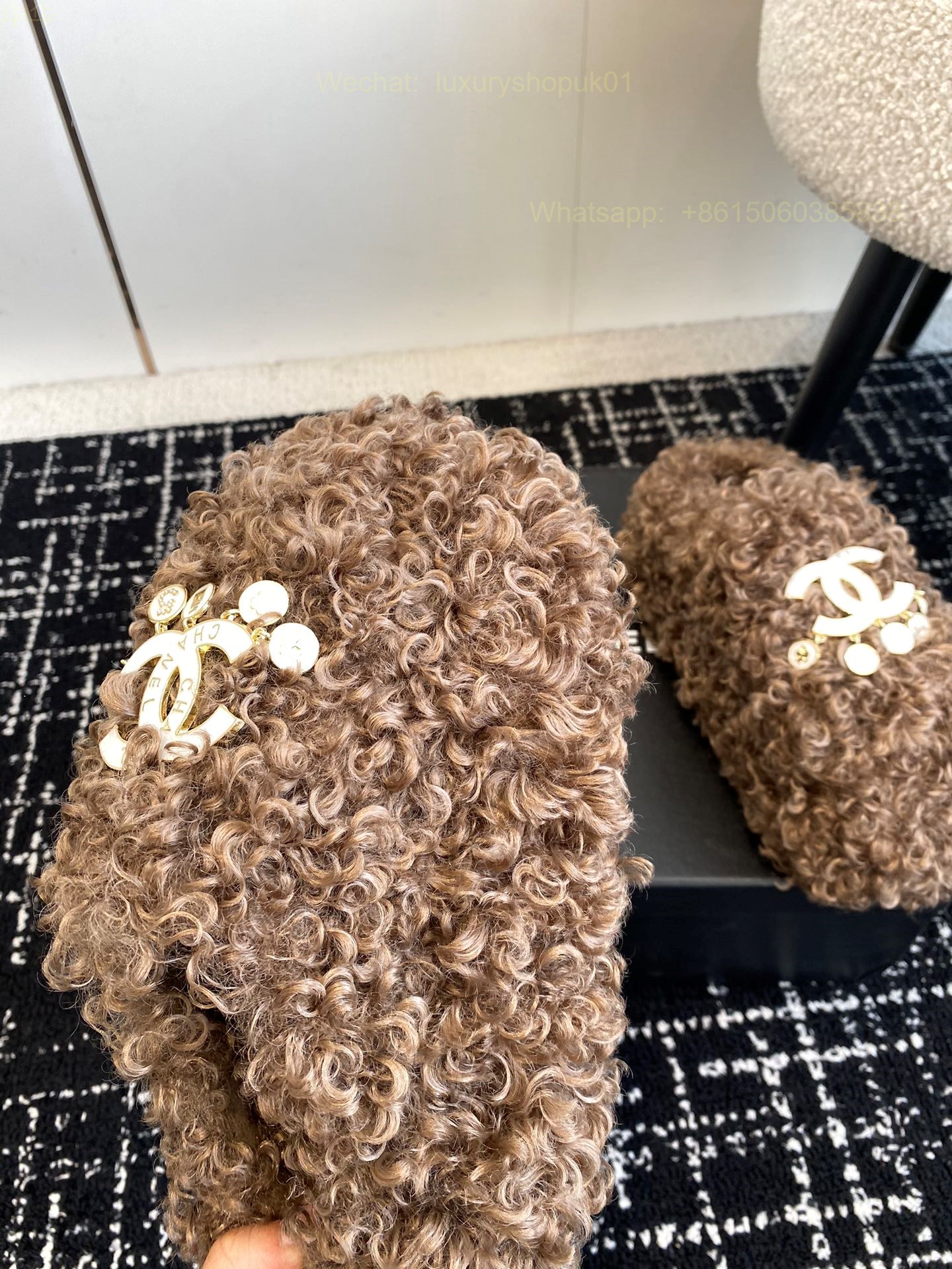 Chanel Slipper Women Faux Fur Shearling Slide Sandals Shoes