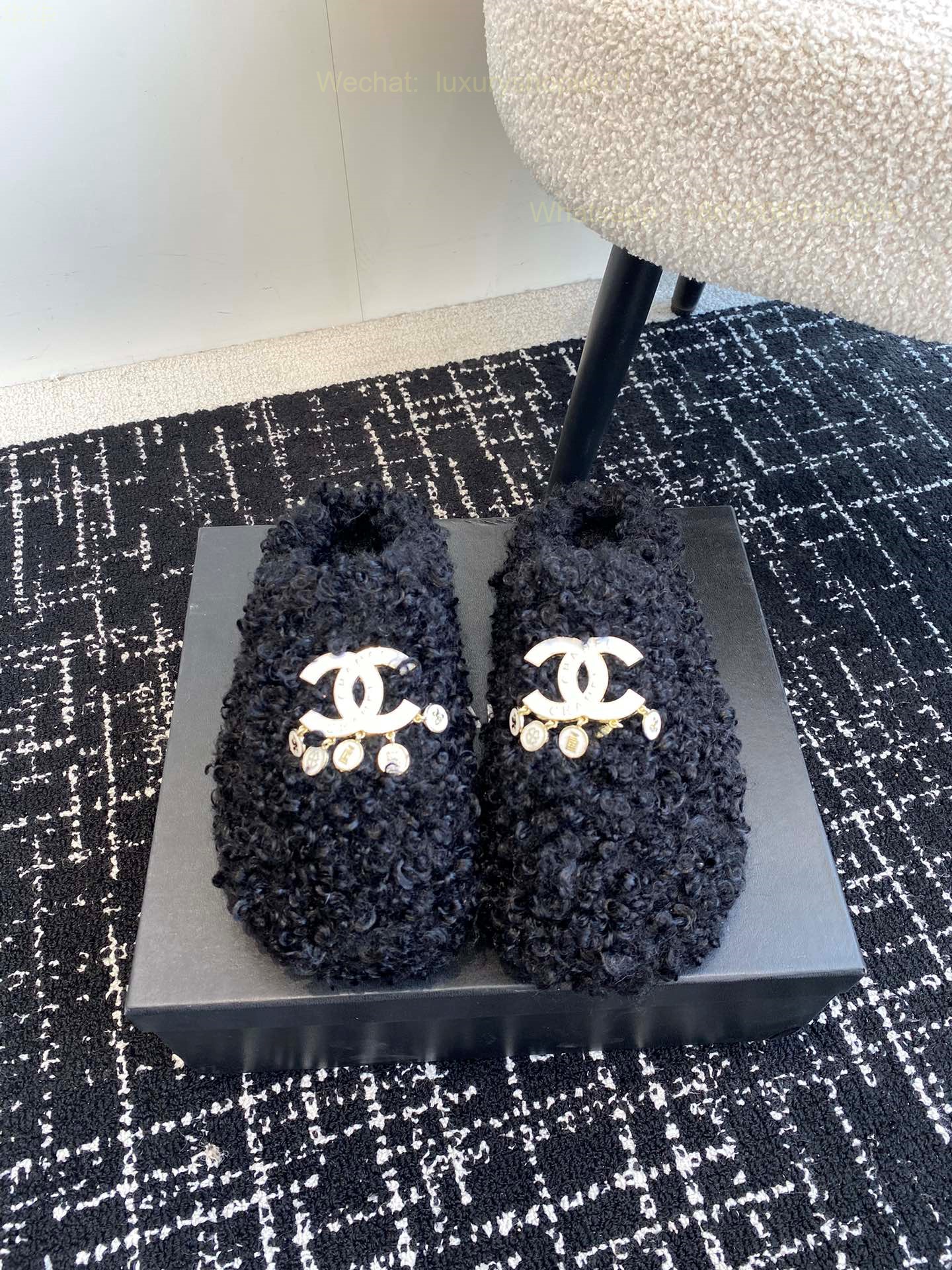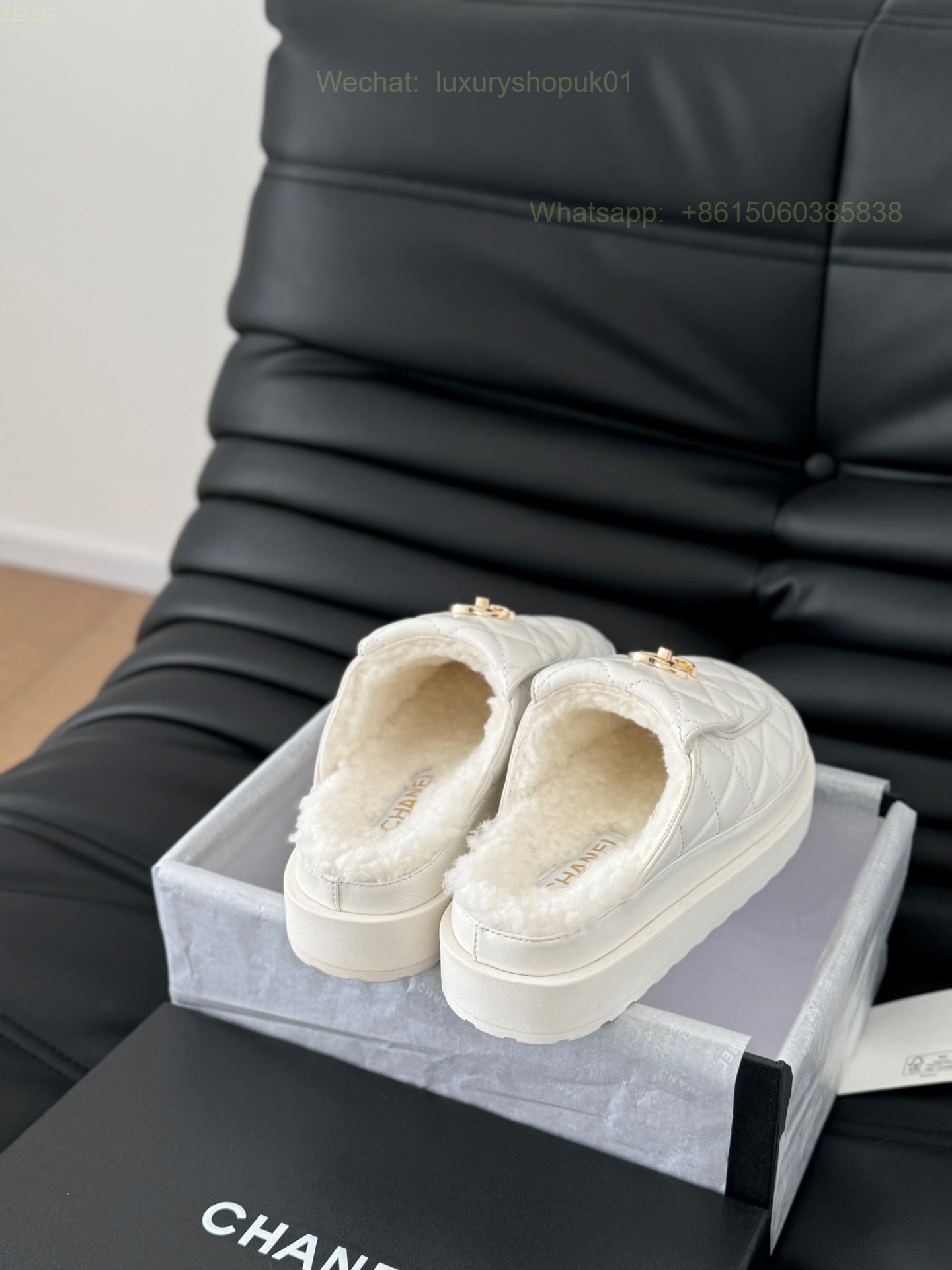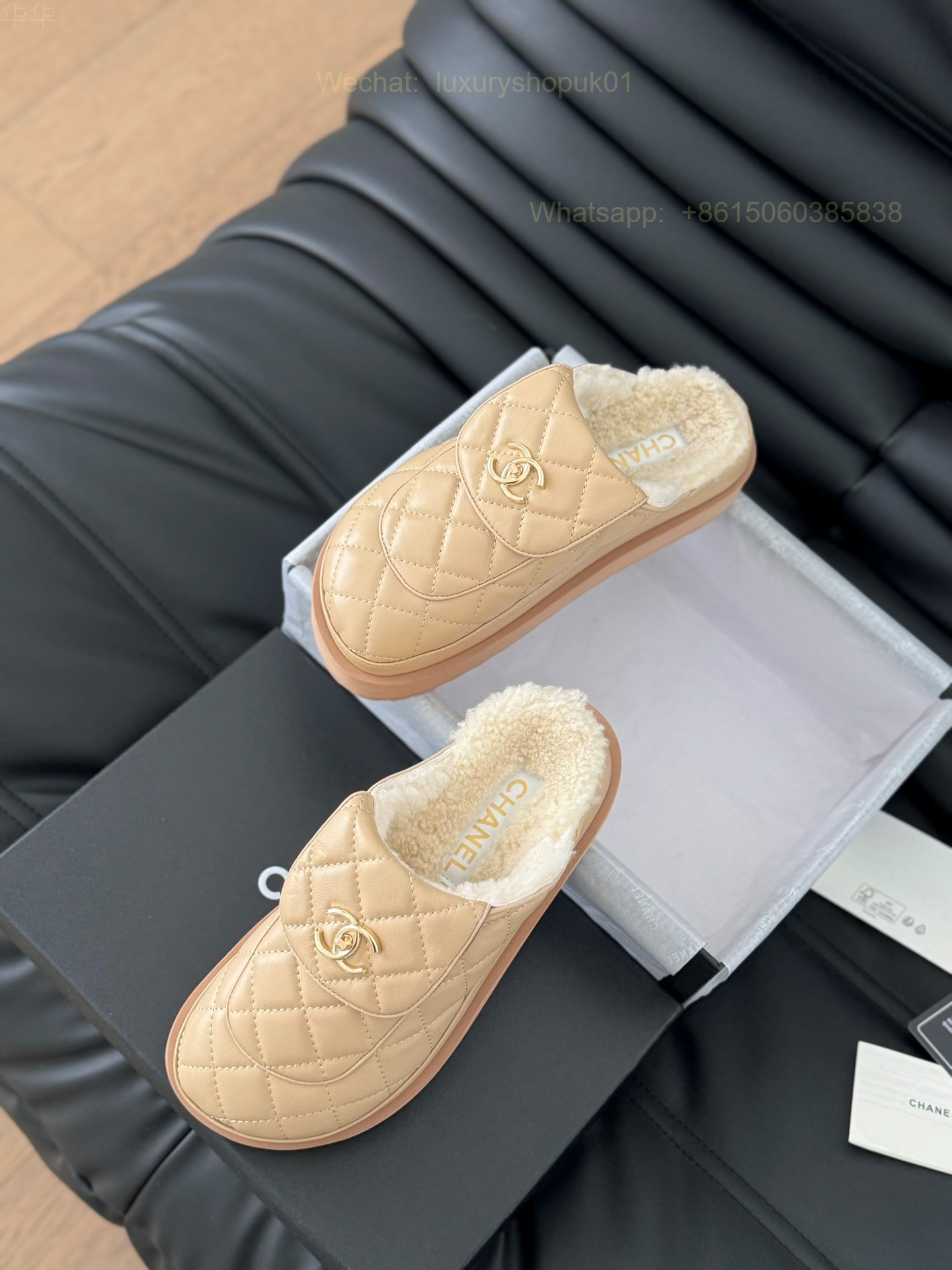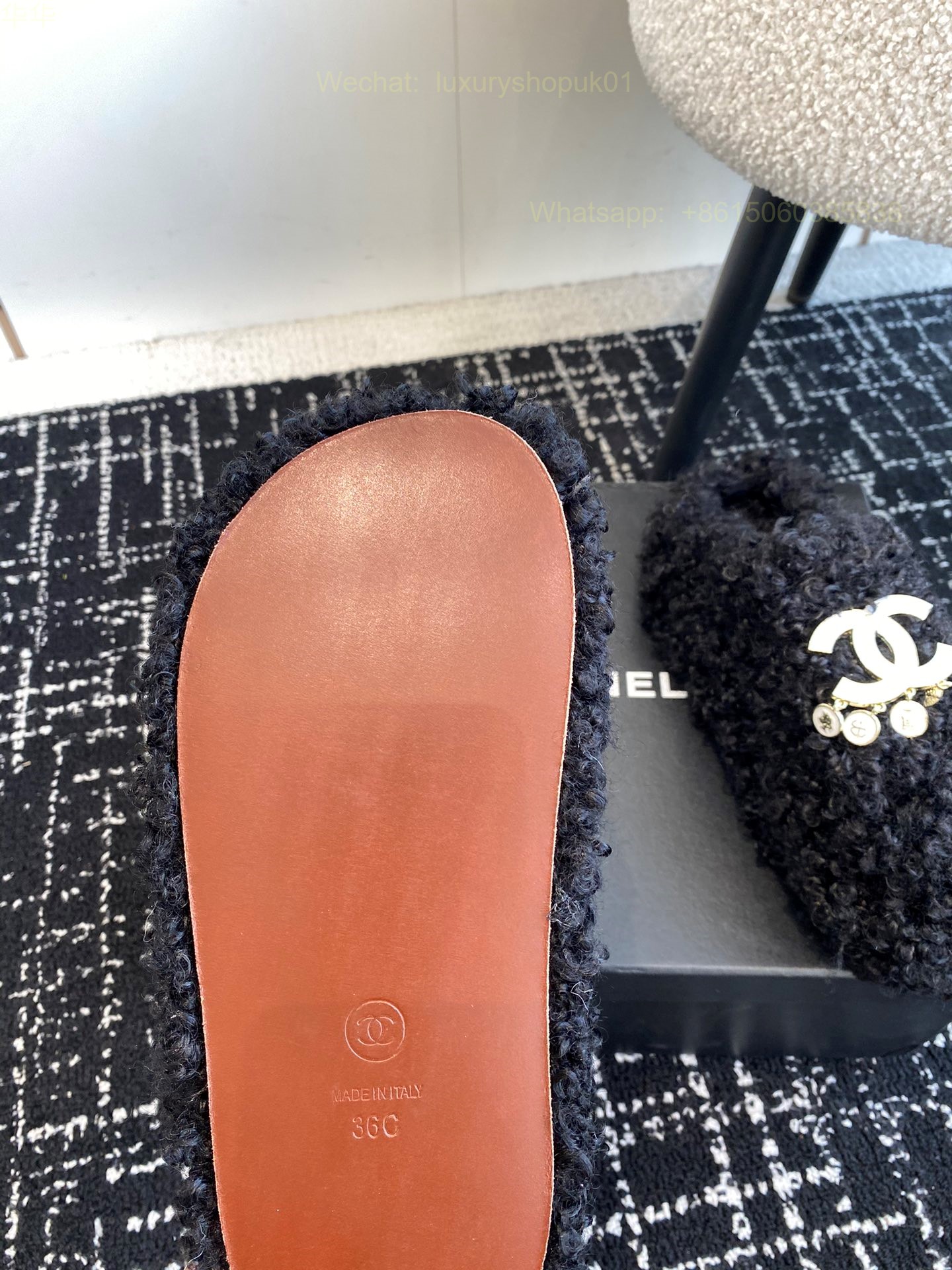 Chanel Slipper Women Faux Fur Shearling Slide Sandals Shoes