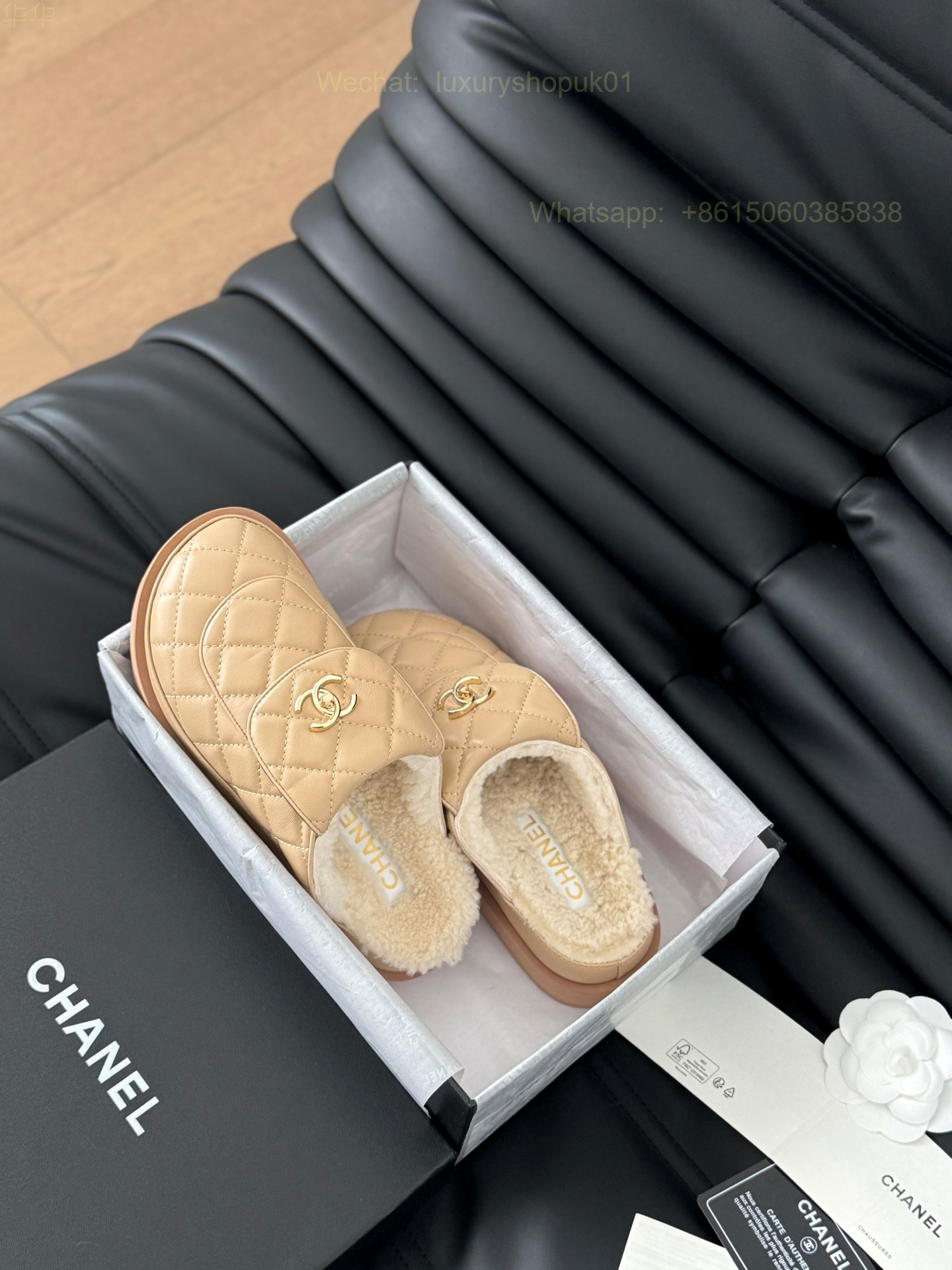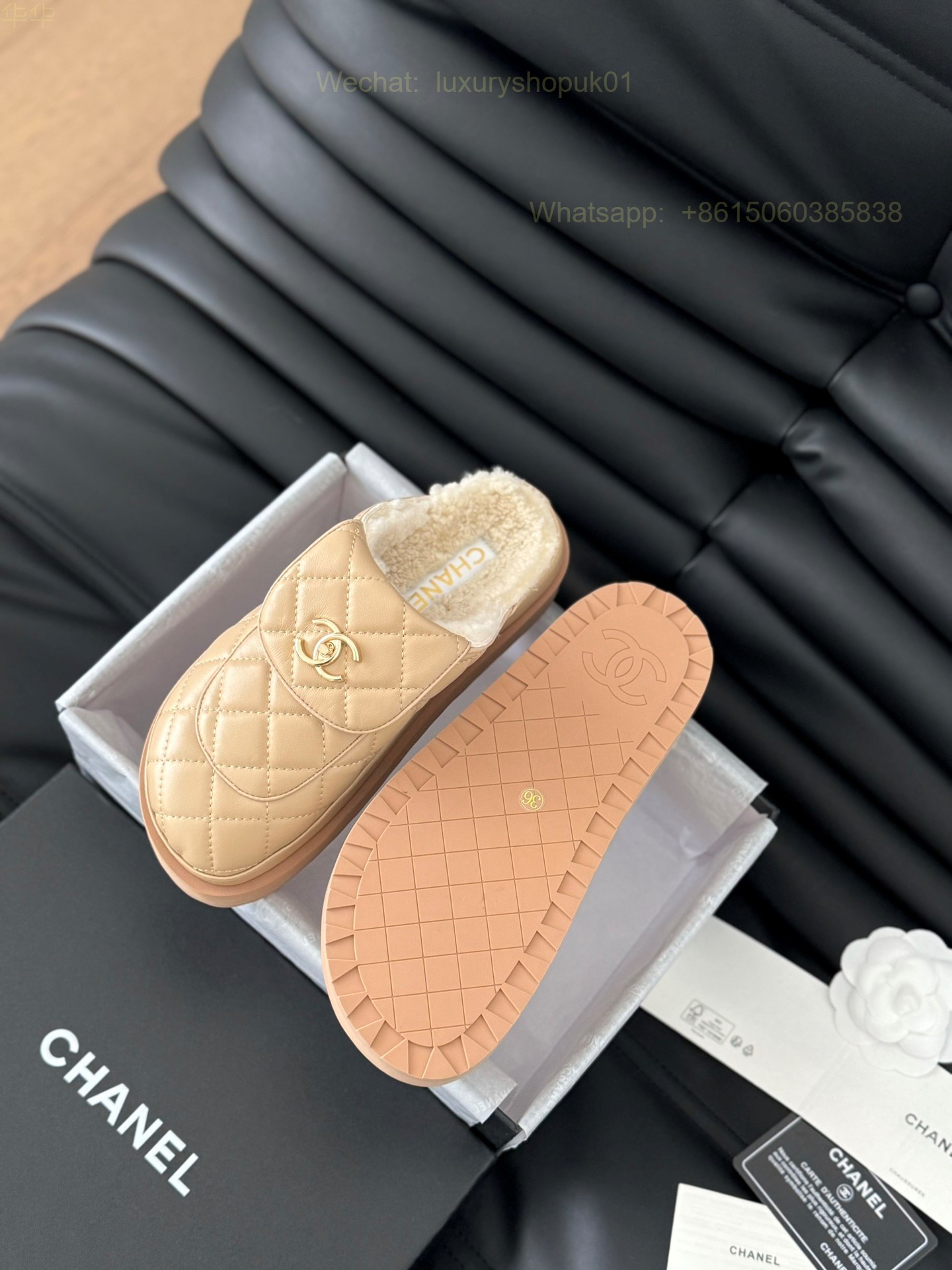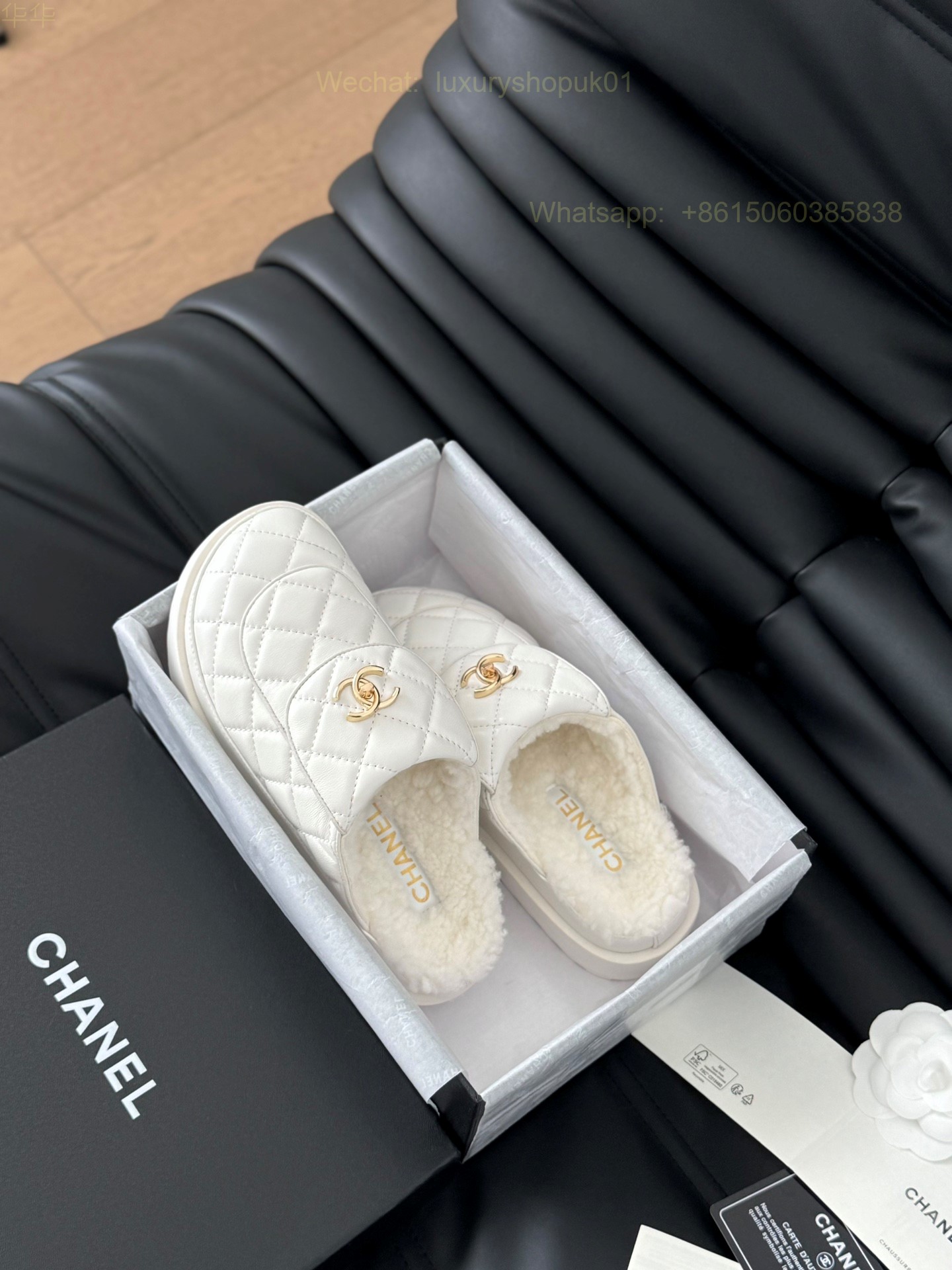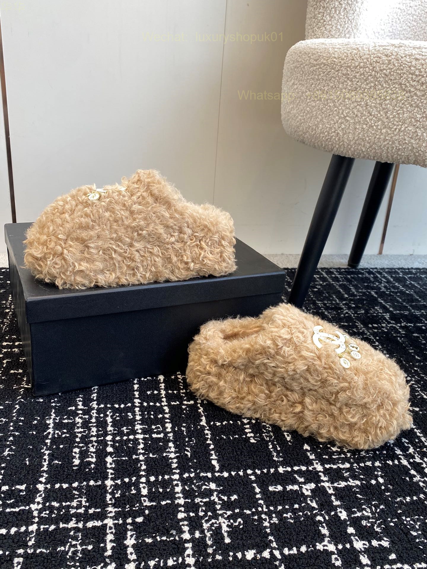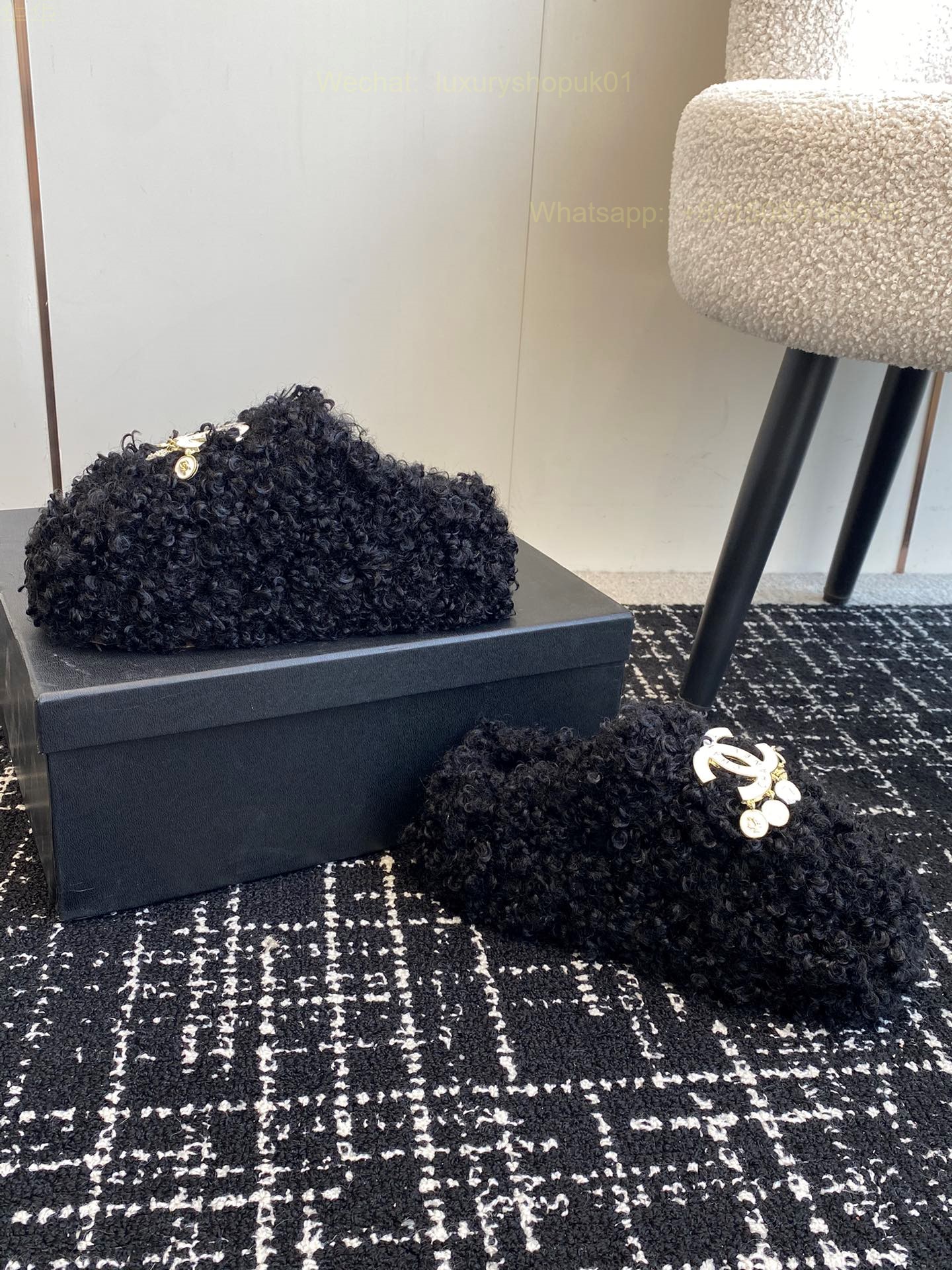 Chanel Slipper Women Faux Fur Shearling Slide Sandals Shoes