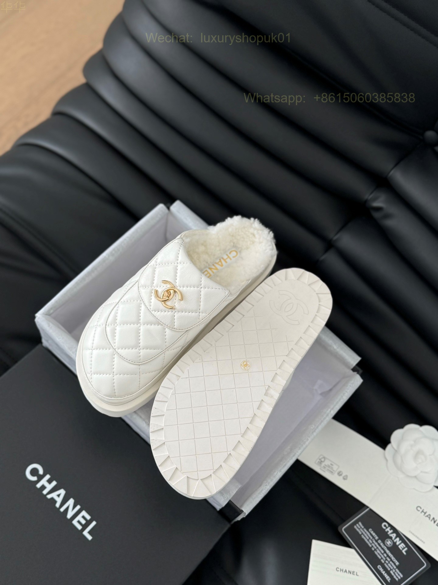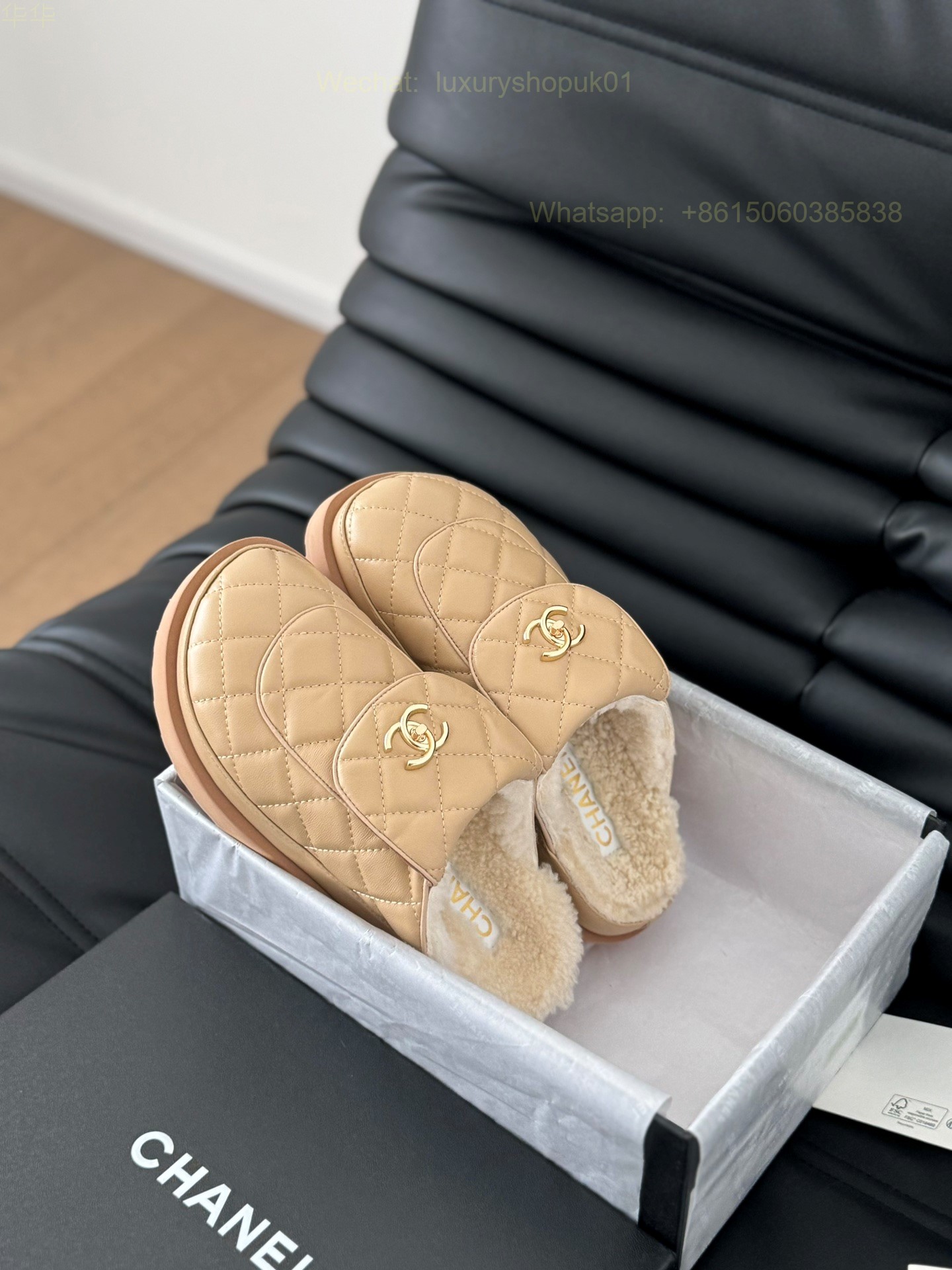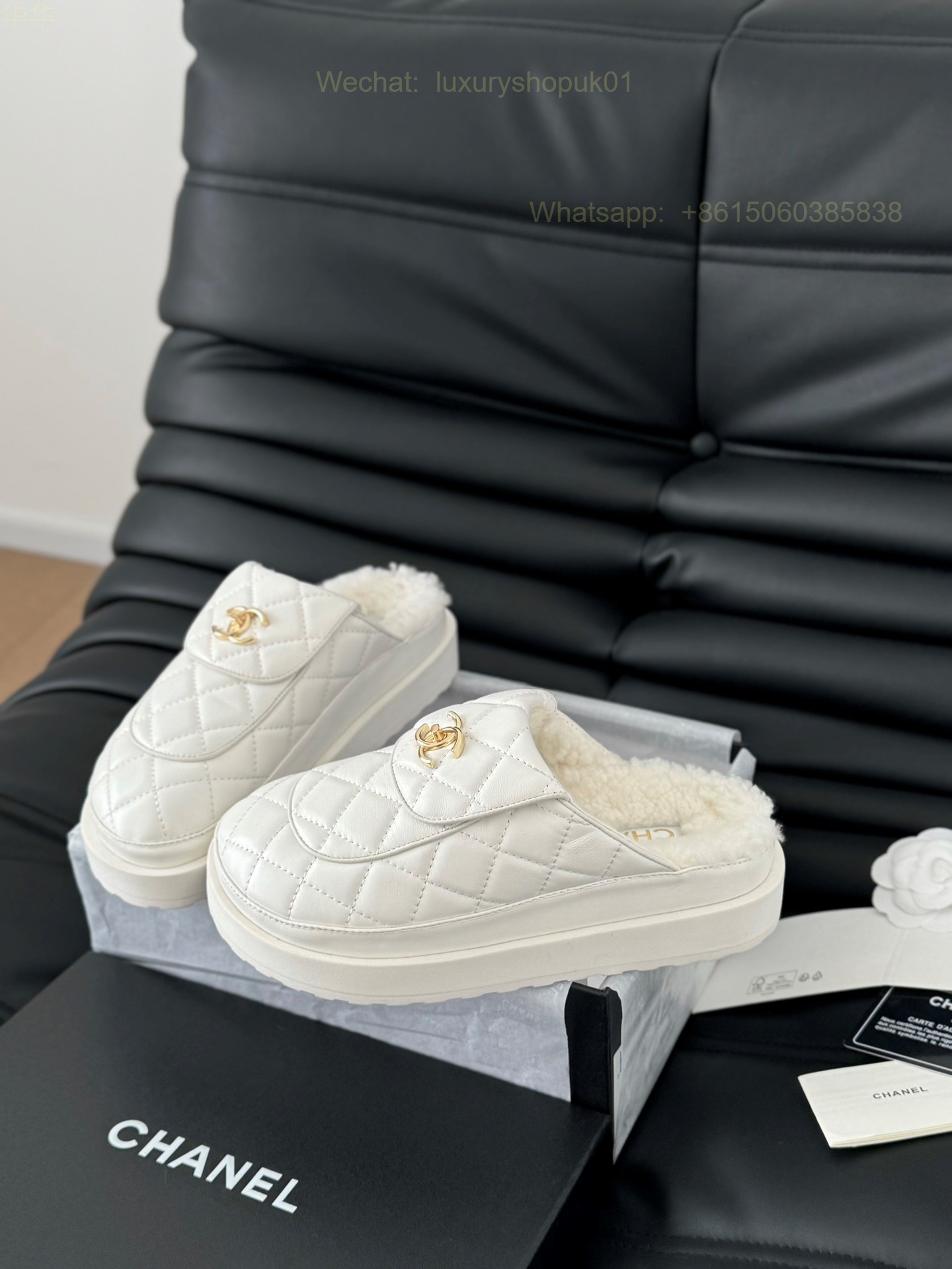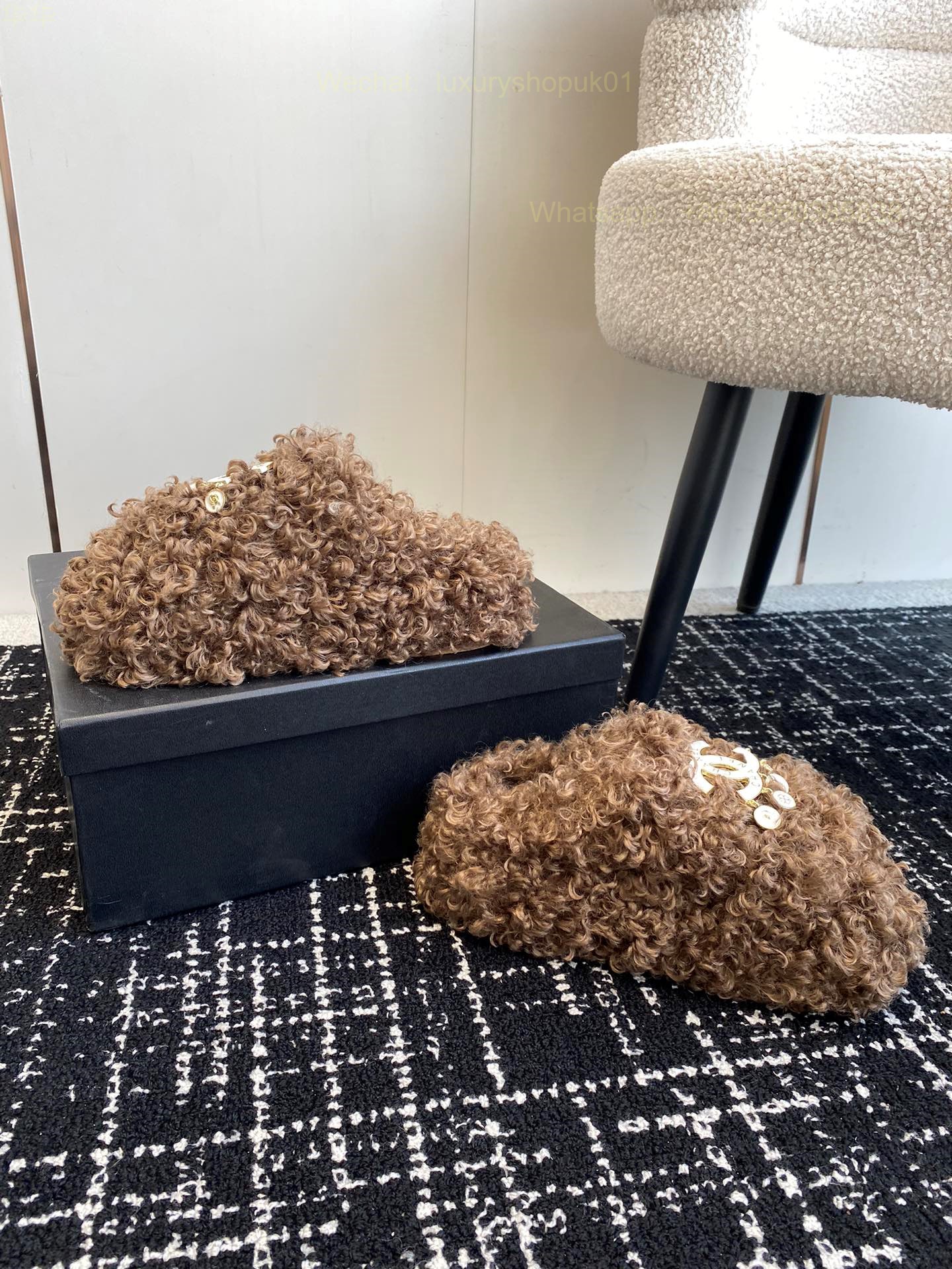 Chanel Slipper Women Faux Fur Shearling Slide Sandals Shoes