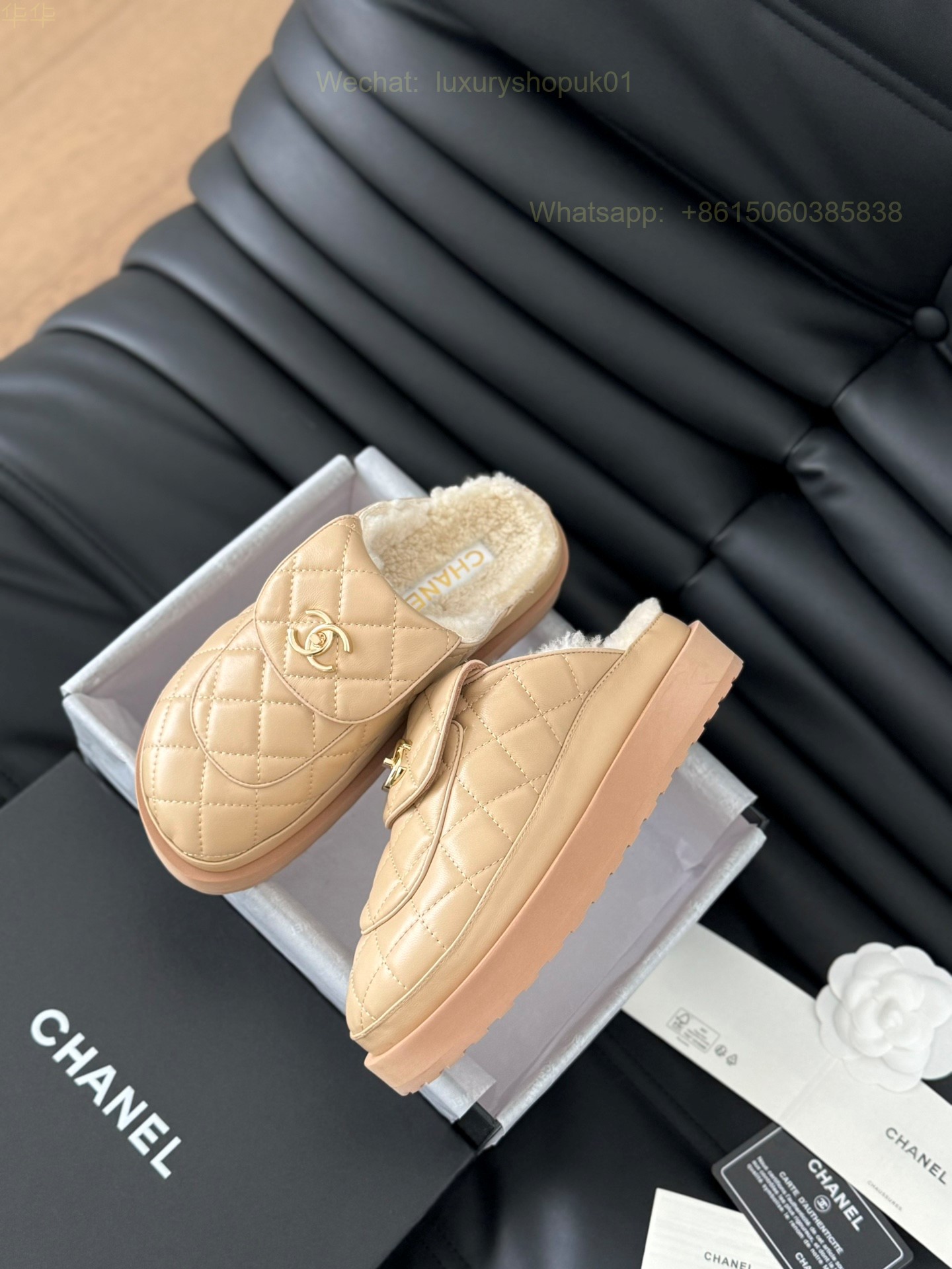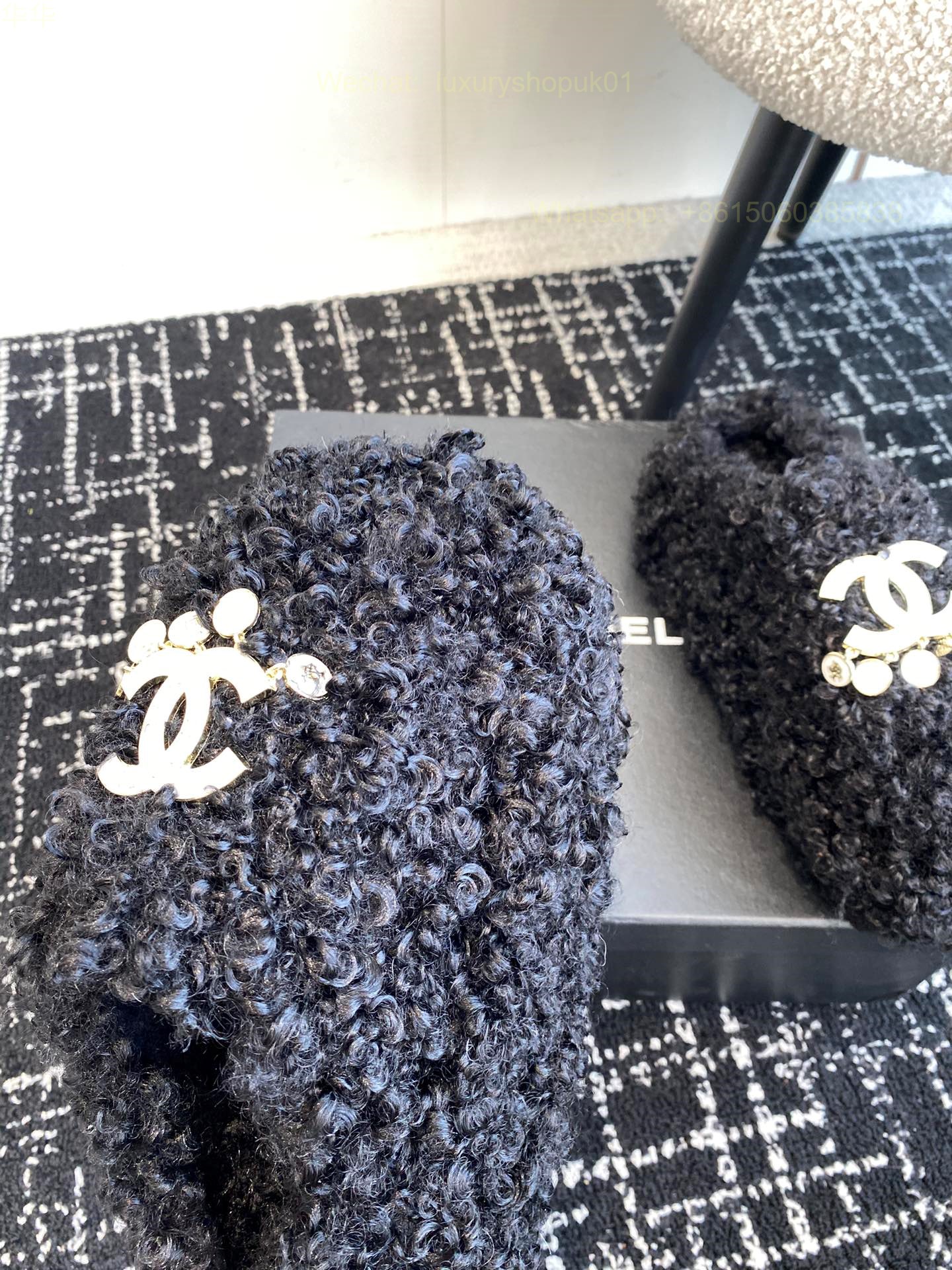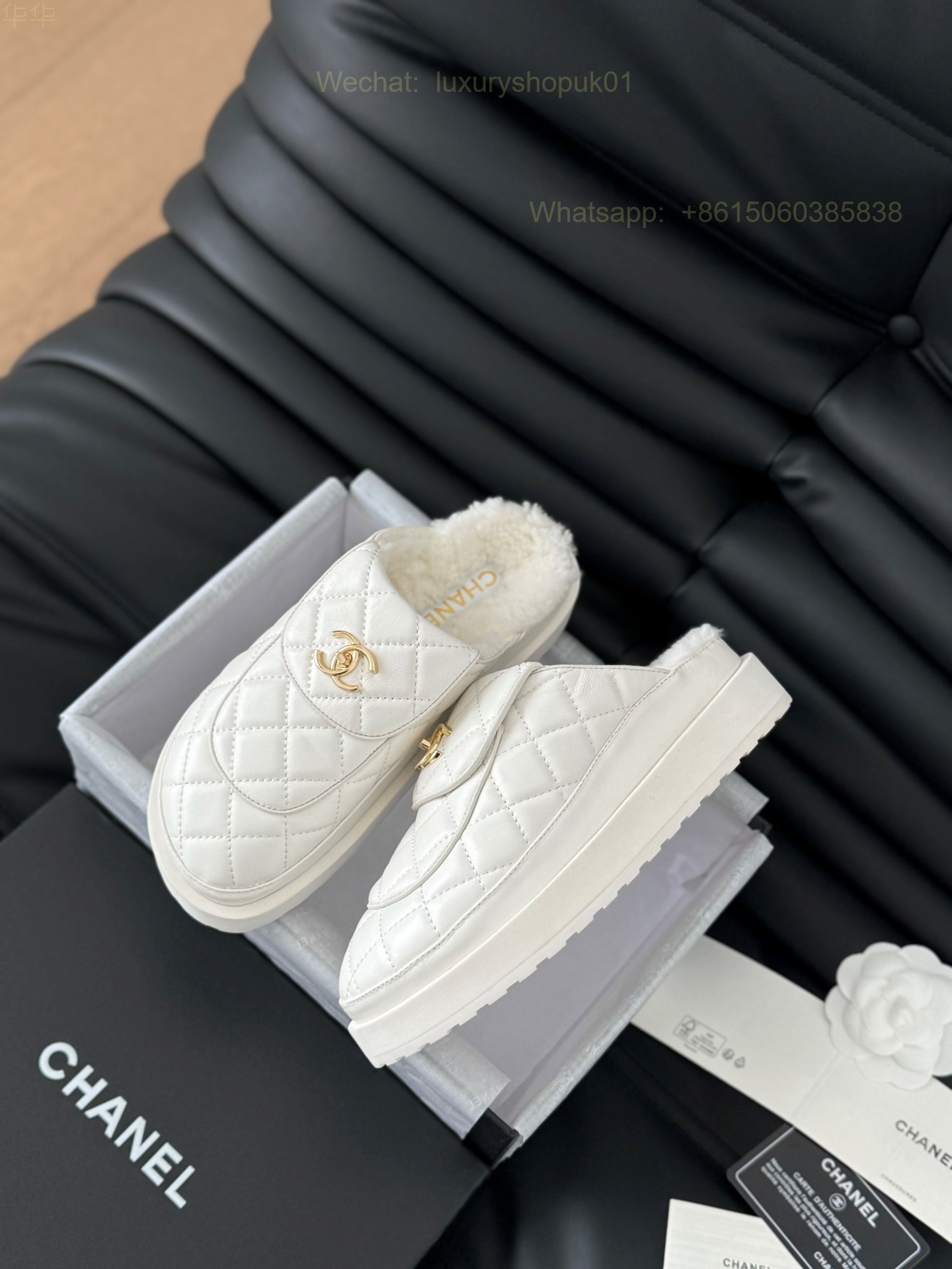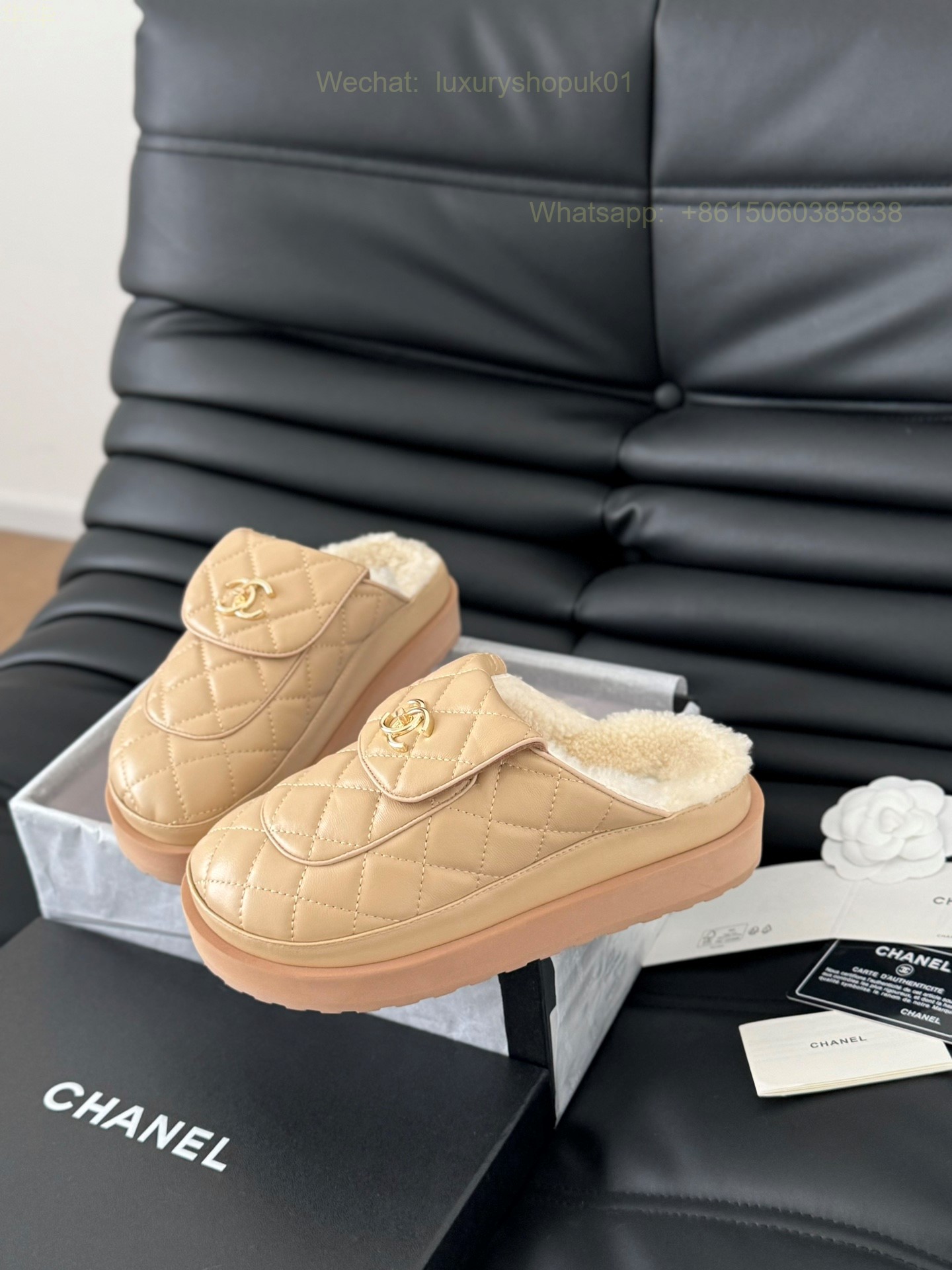 Chanel Slipper Women Faux Fur Shearling Slide Sandals Shoes