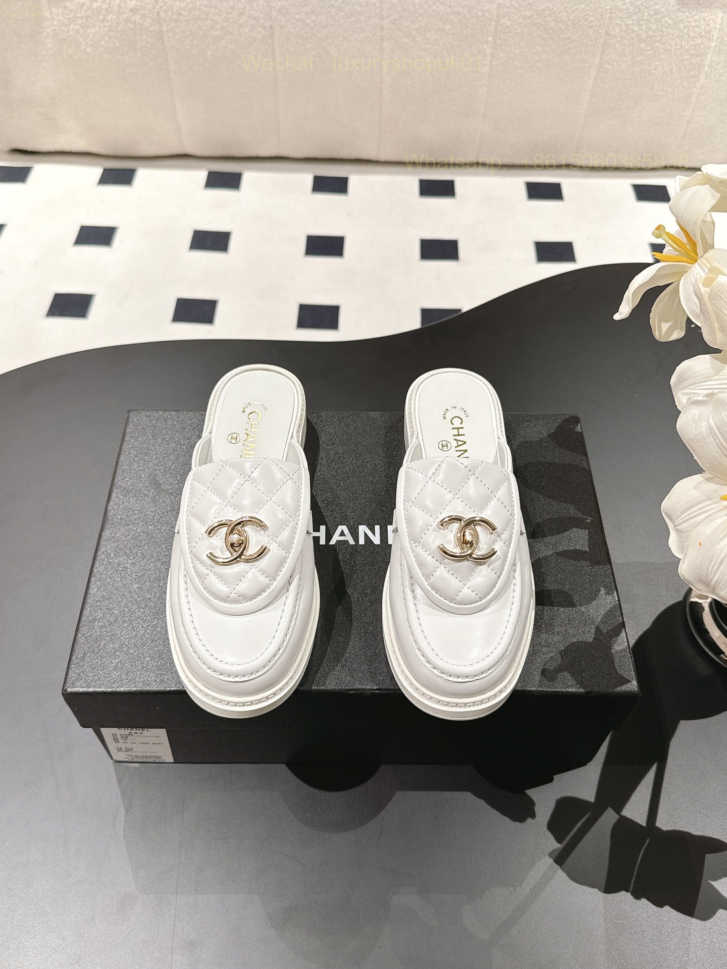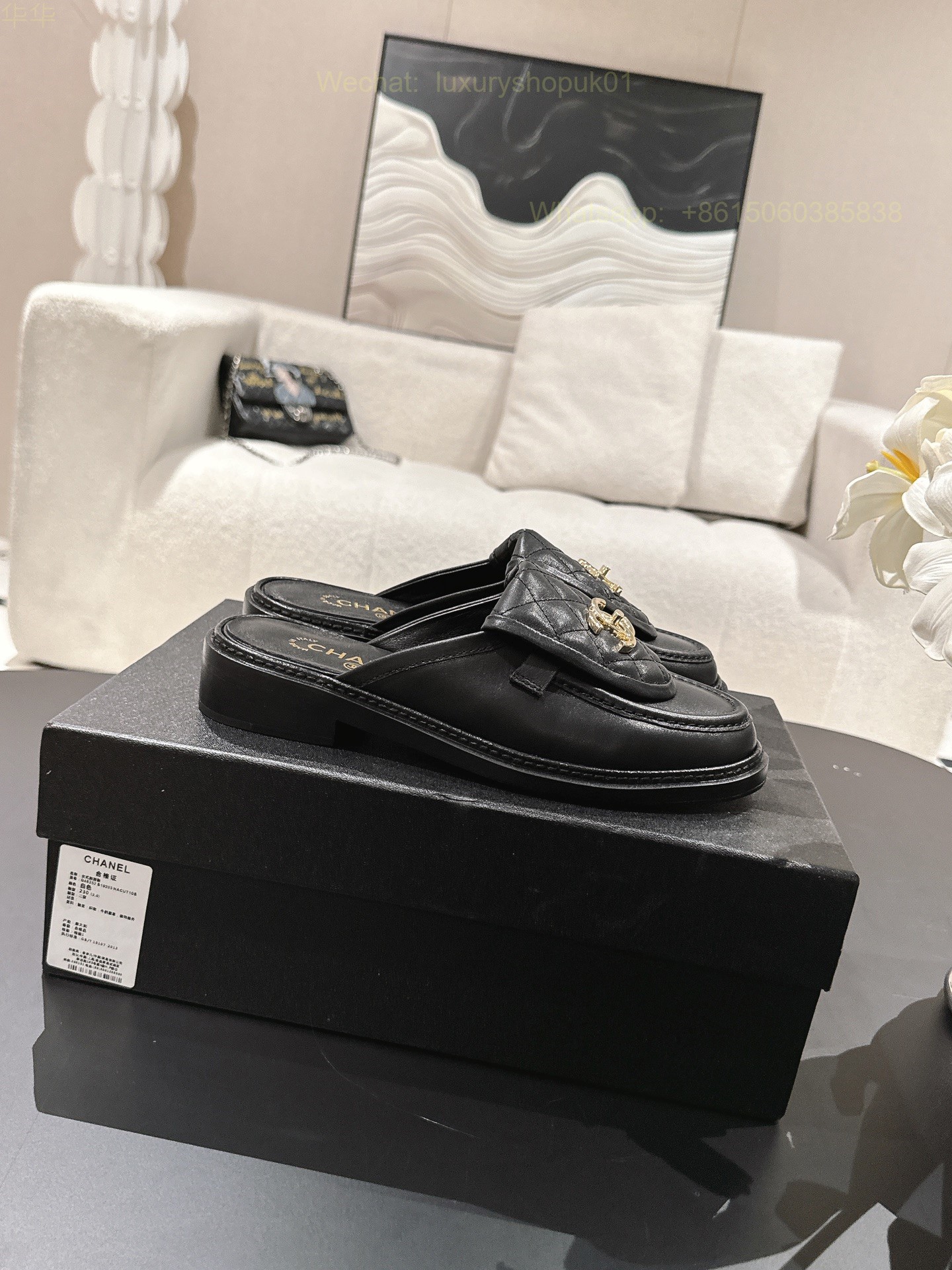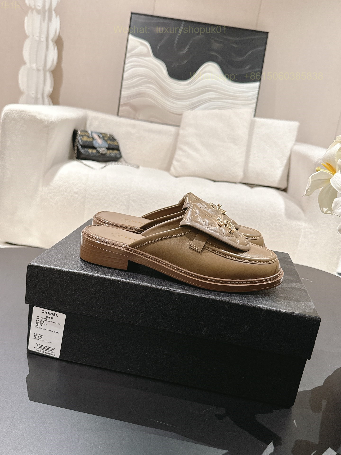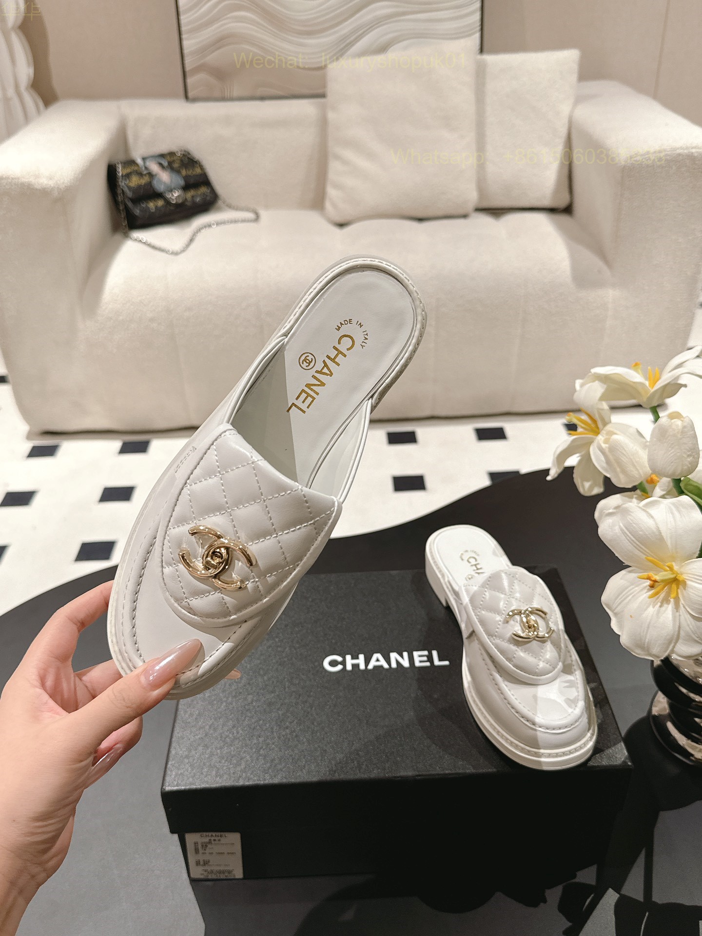 Chanel Leather Slipper flat Slide CC Logo Women Shoes