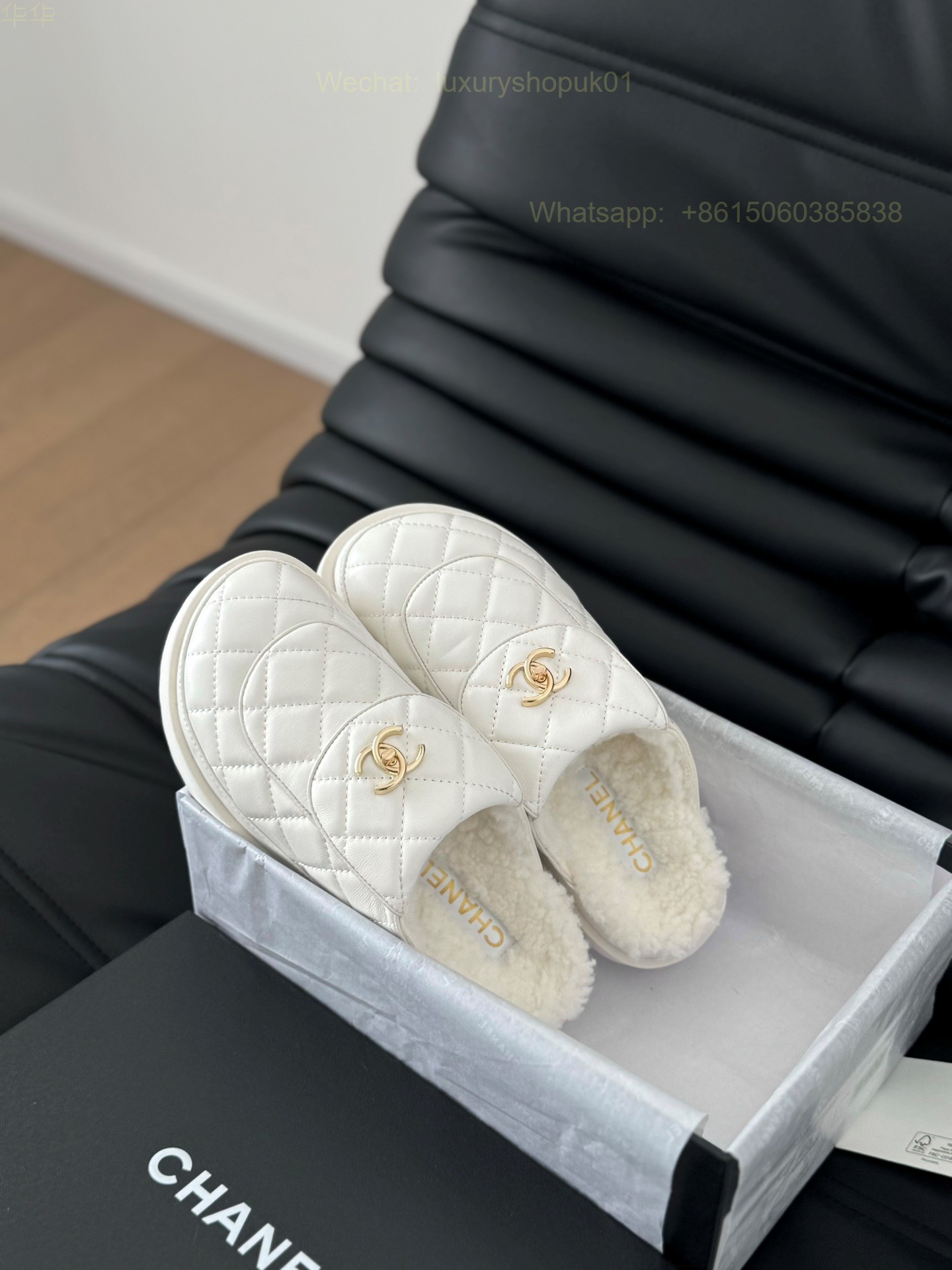 Chanel Slipper Sandal Slide Mule Fur Shearling CC Logo Women Shoes