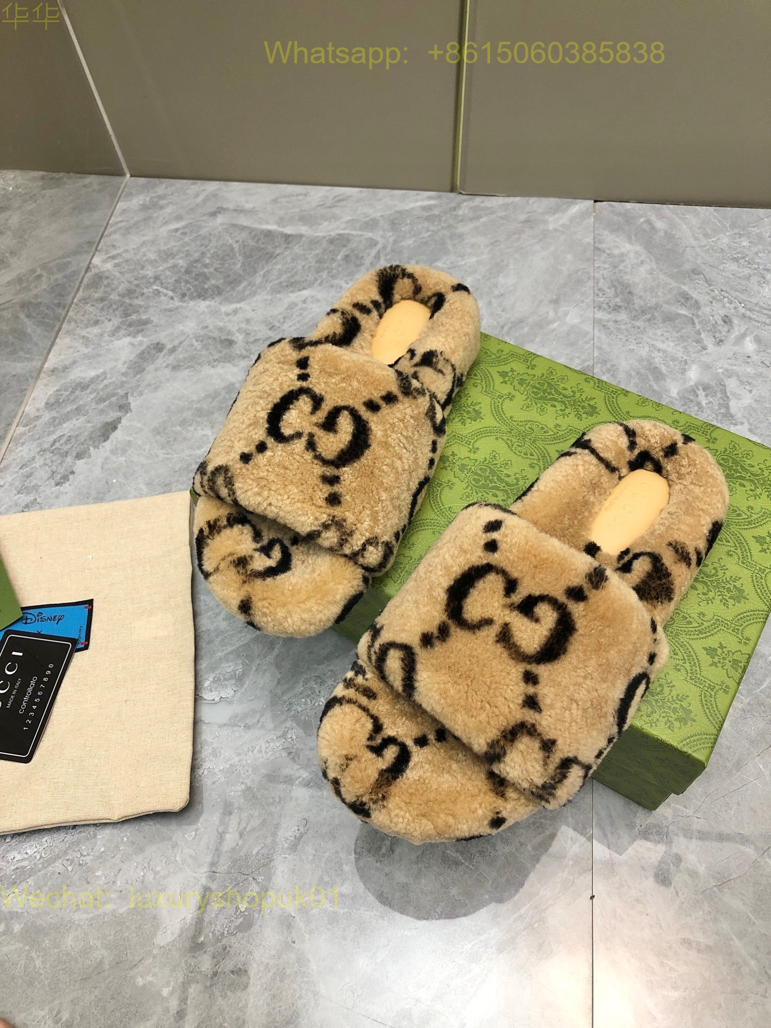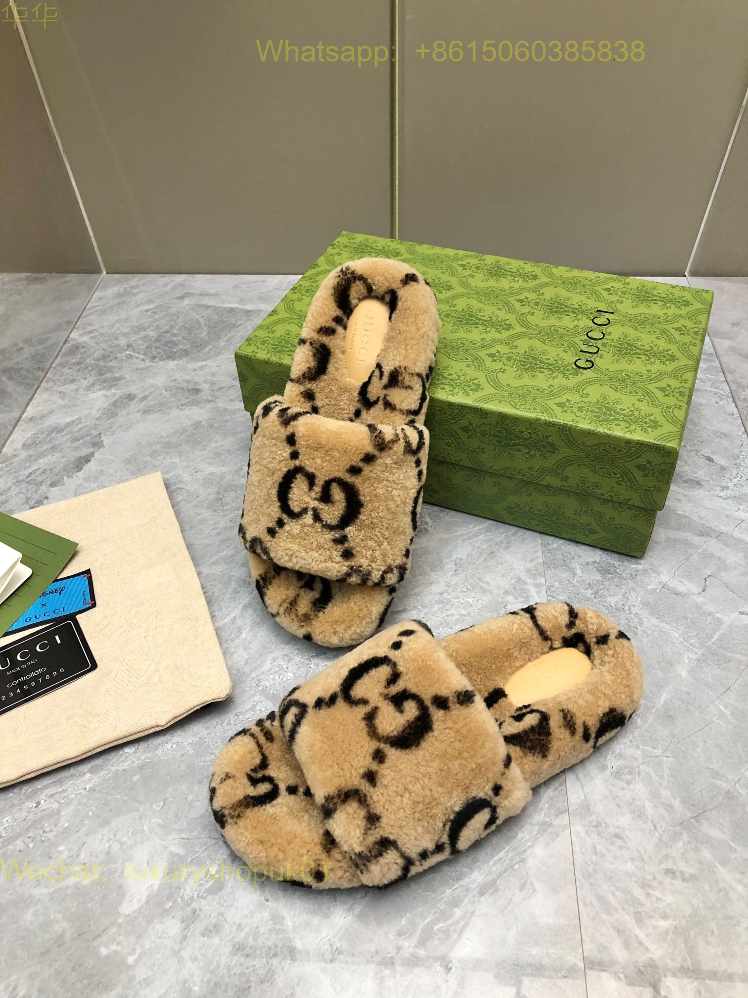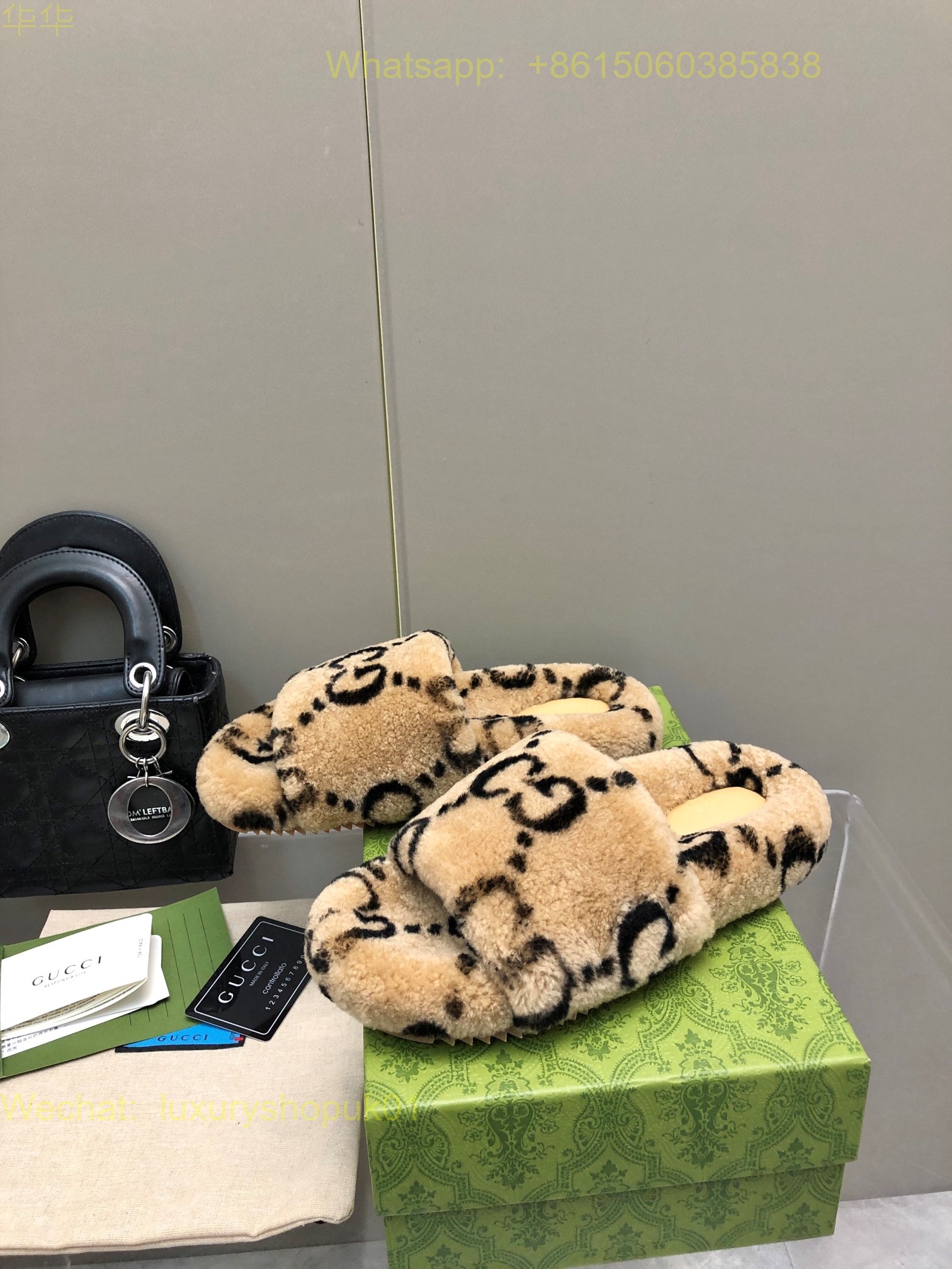 Gucci Shearling Fur Interlocking G Slides sandal Women Shoes
