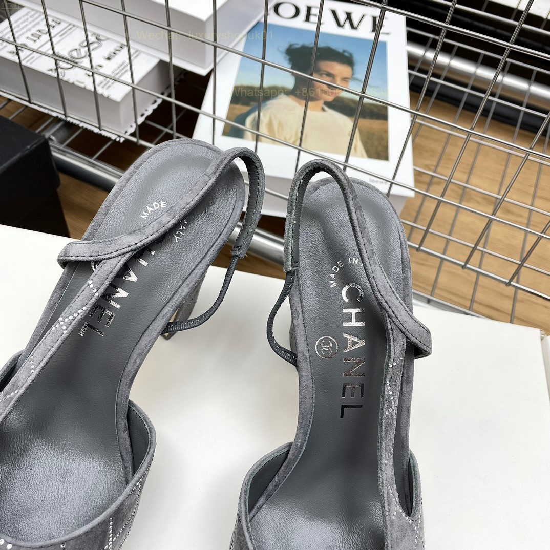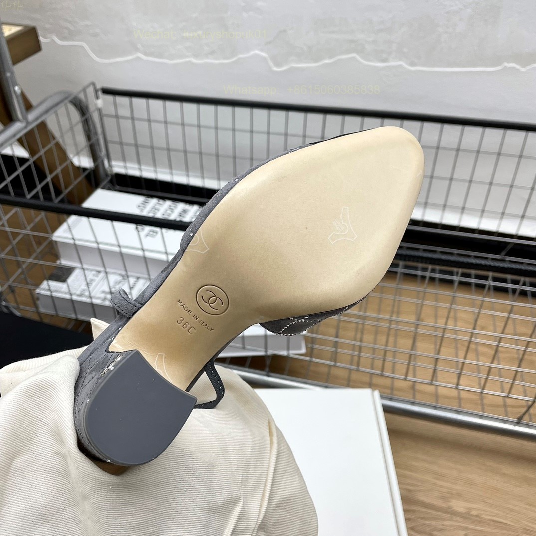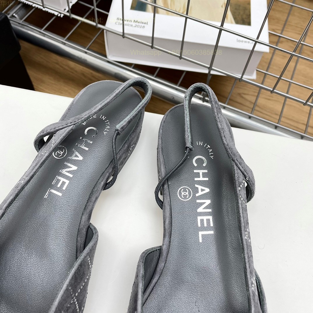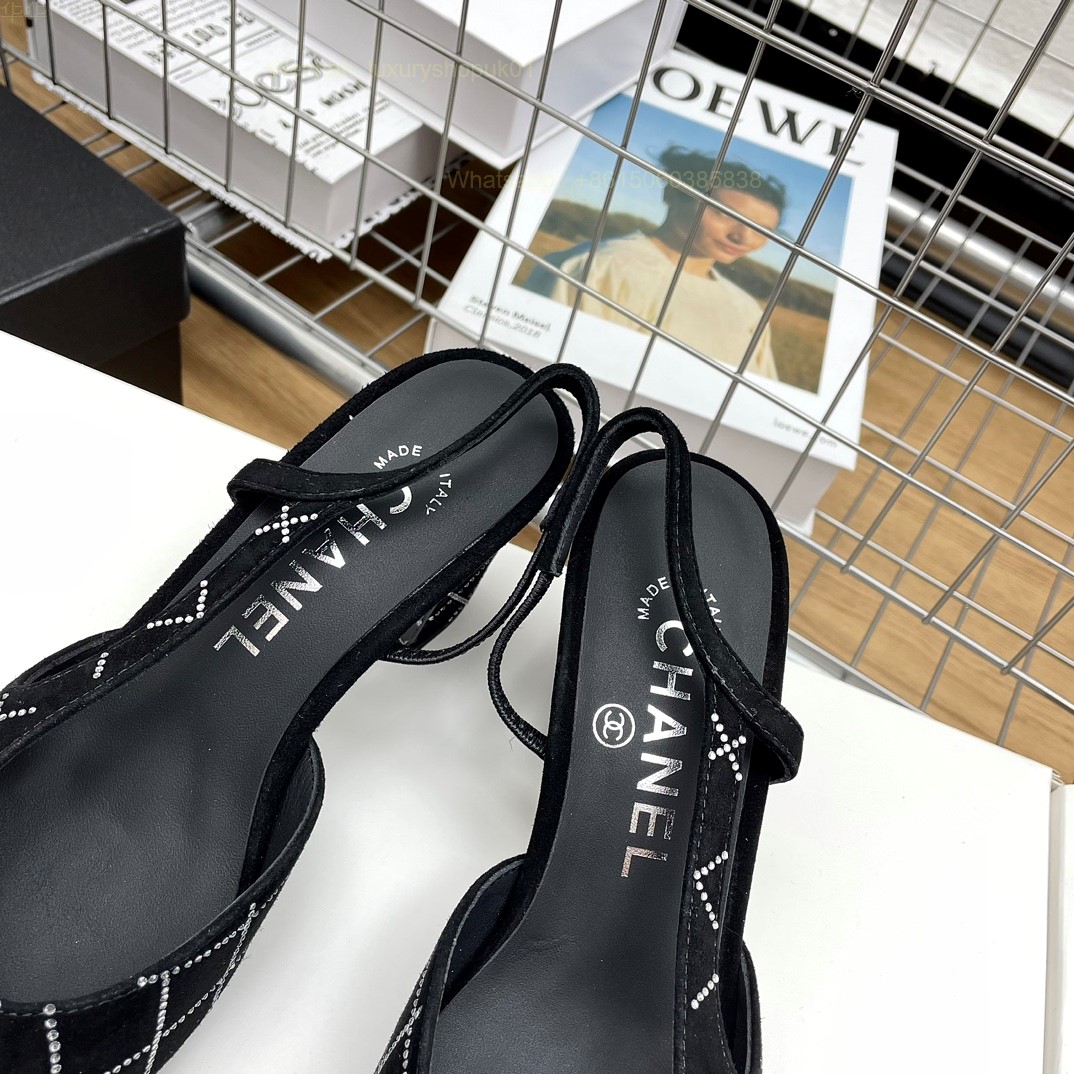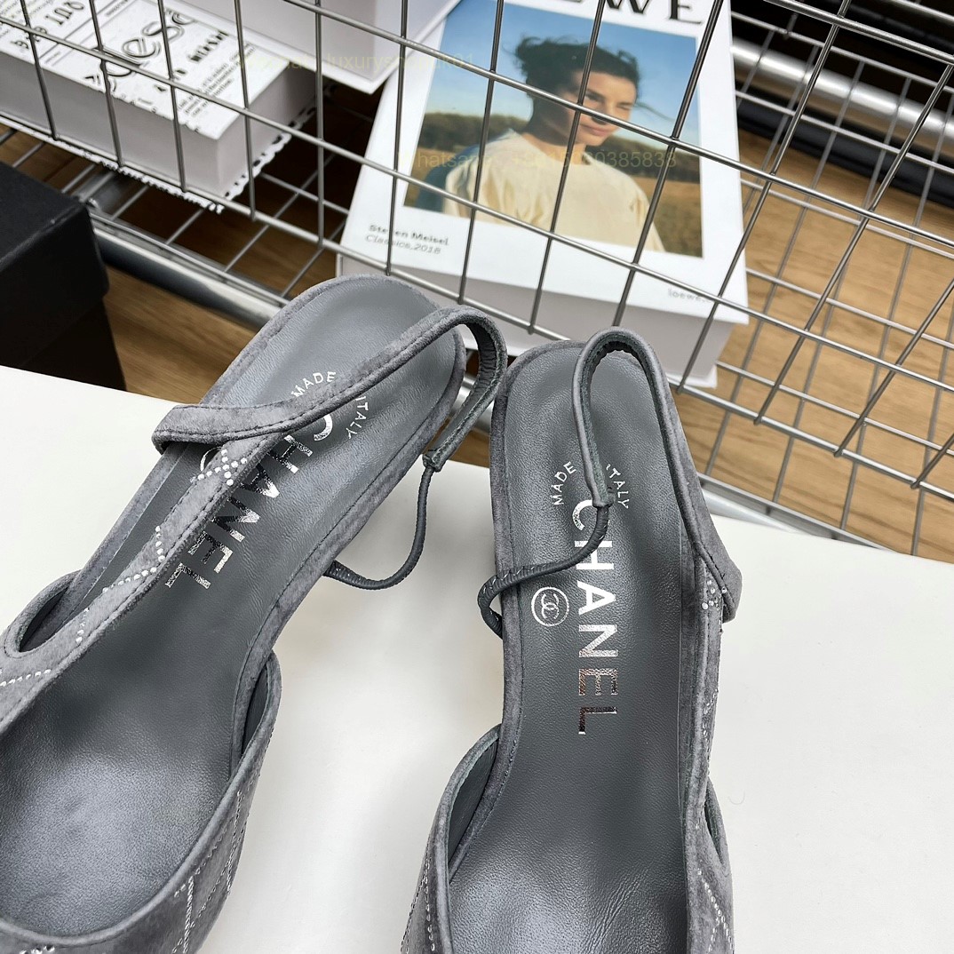 Women Chanel CC Logo crystal suede Slingbacks Pumps Heels Shoes