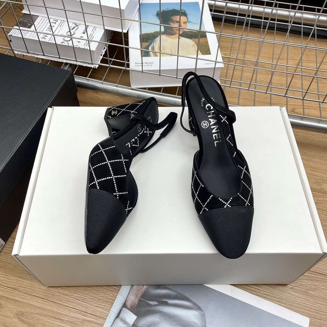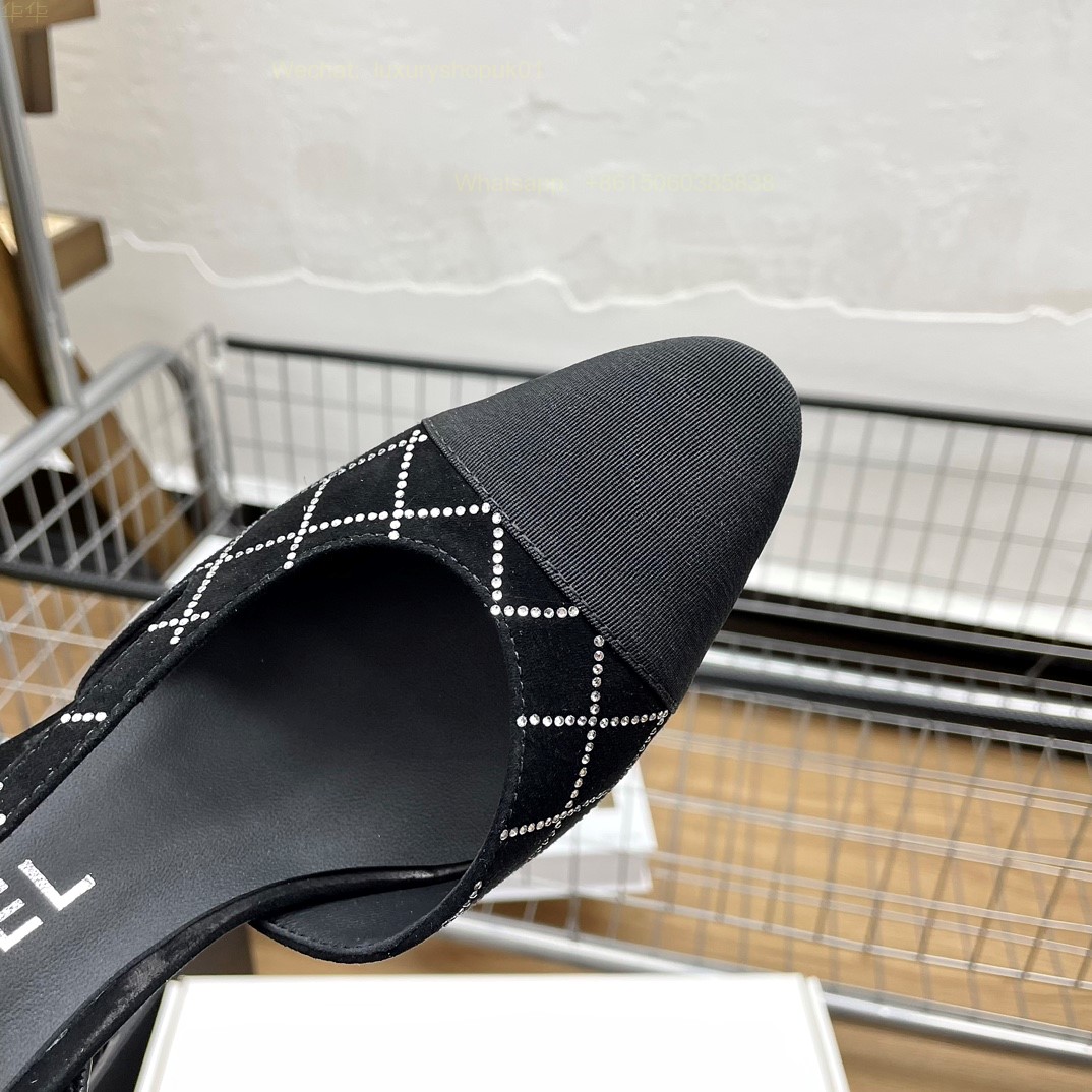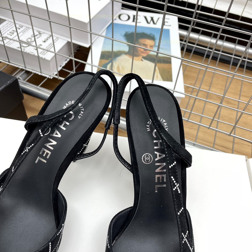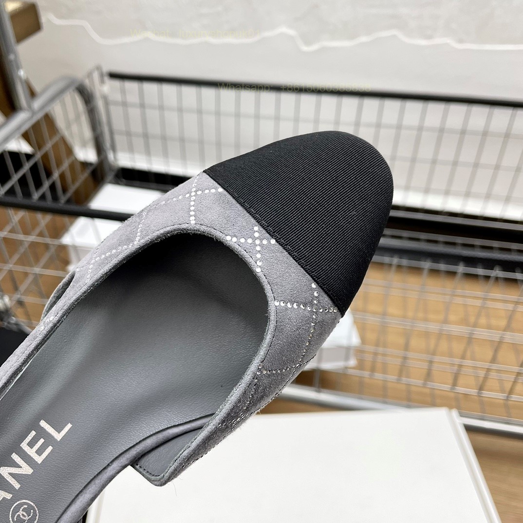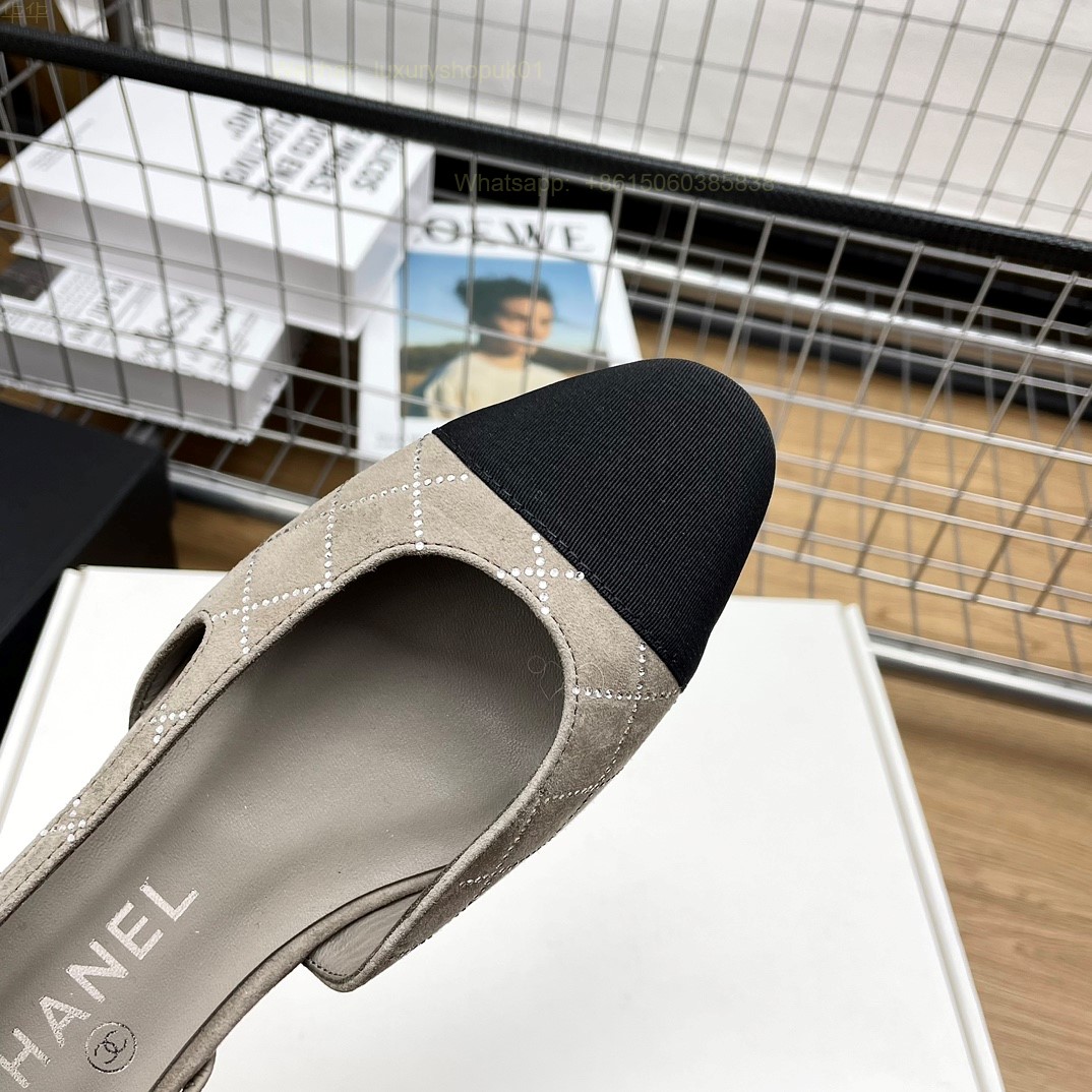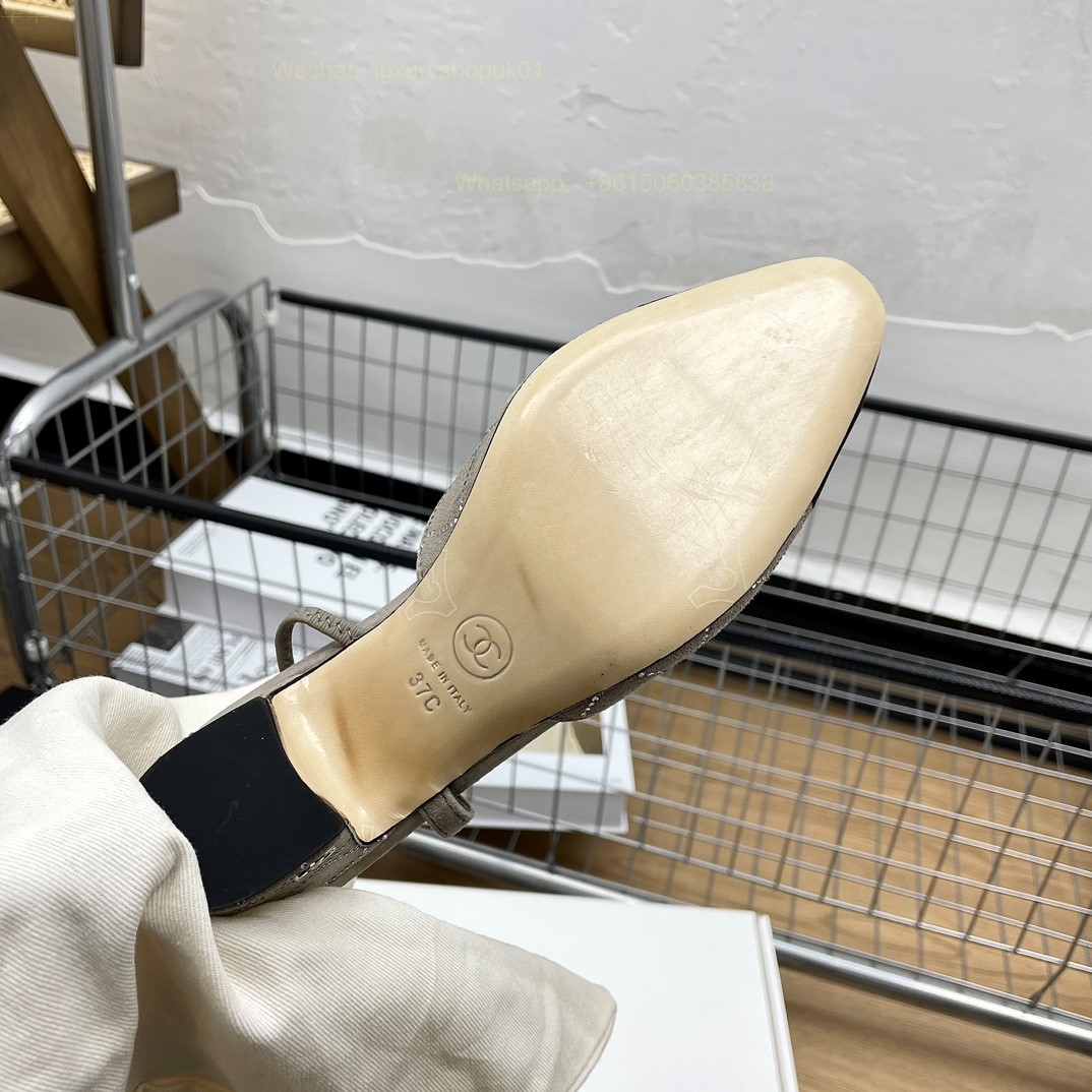 Women Chanel CC Logo crystal suede Slingbacks Pumps Heels Shoes