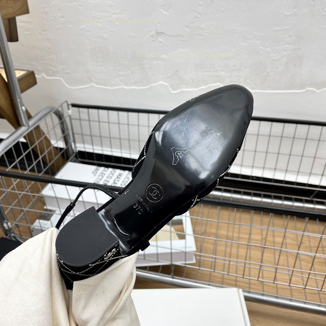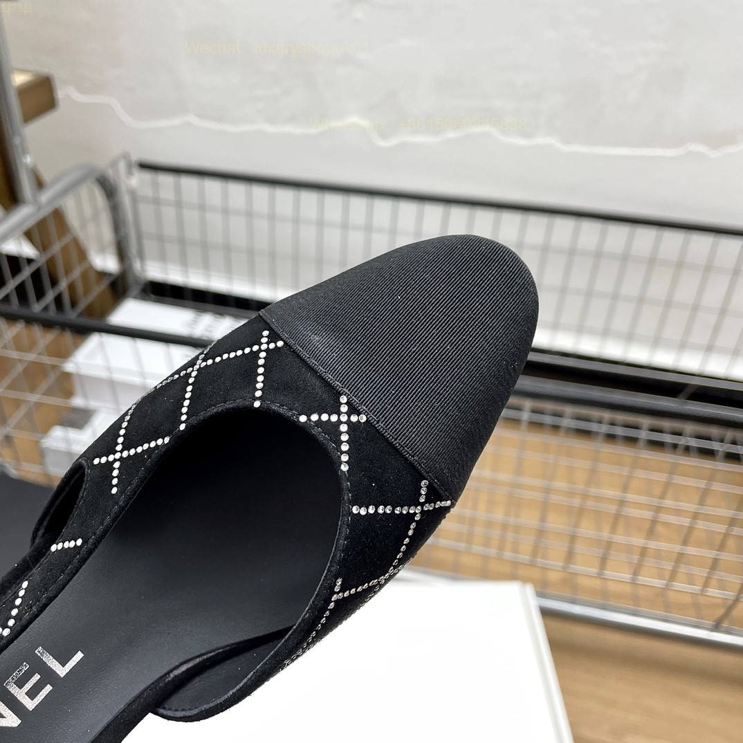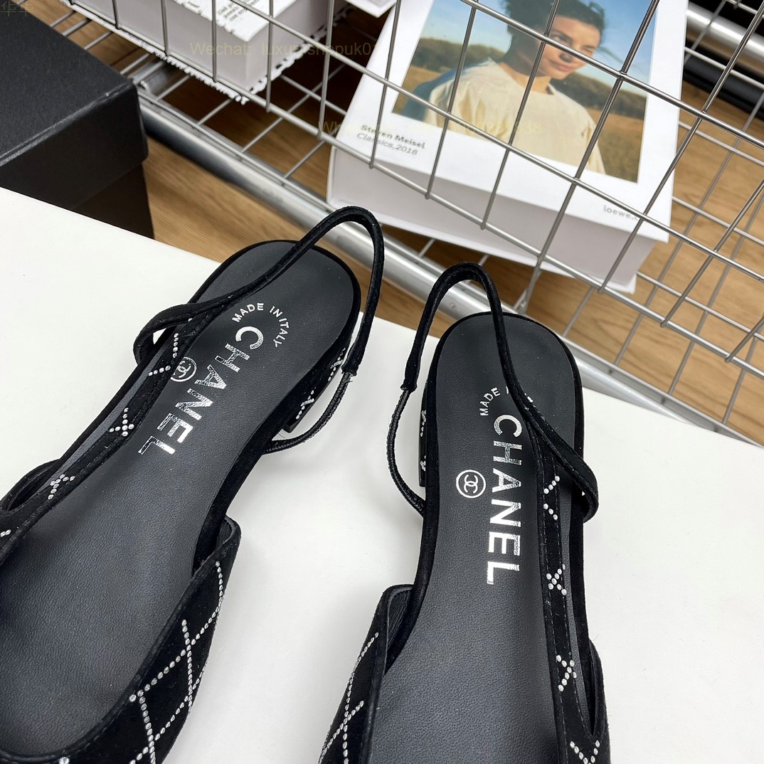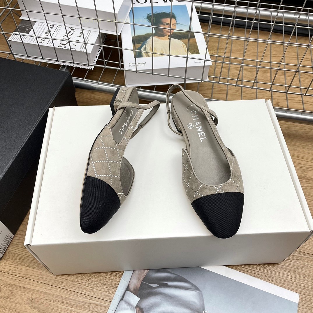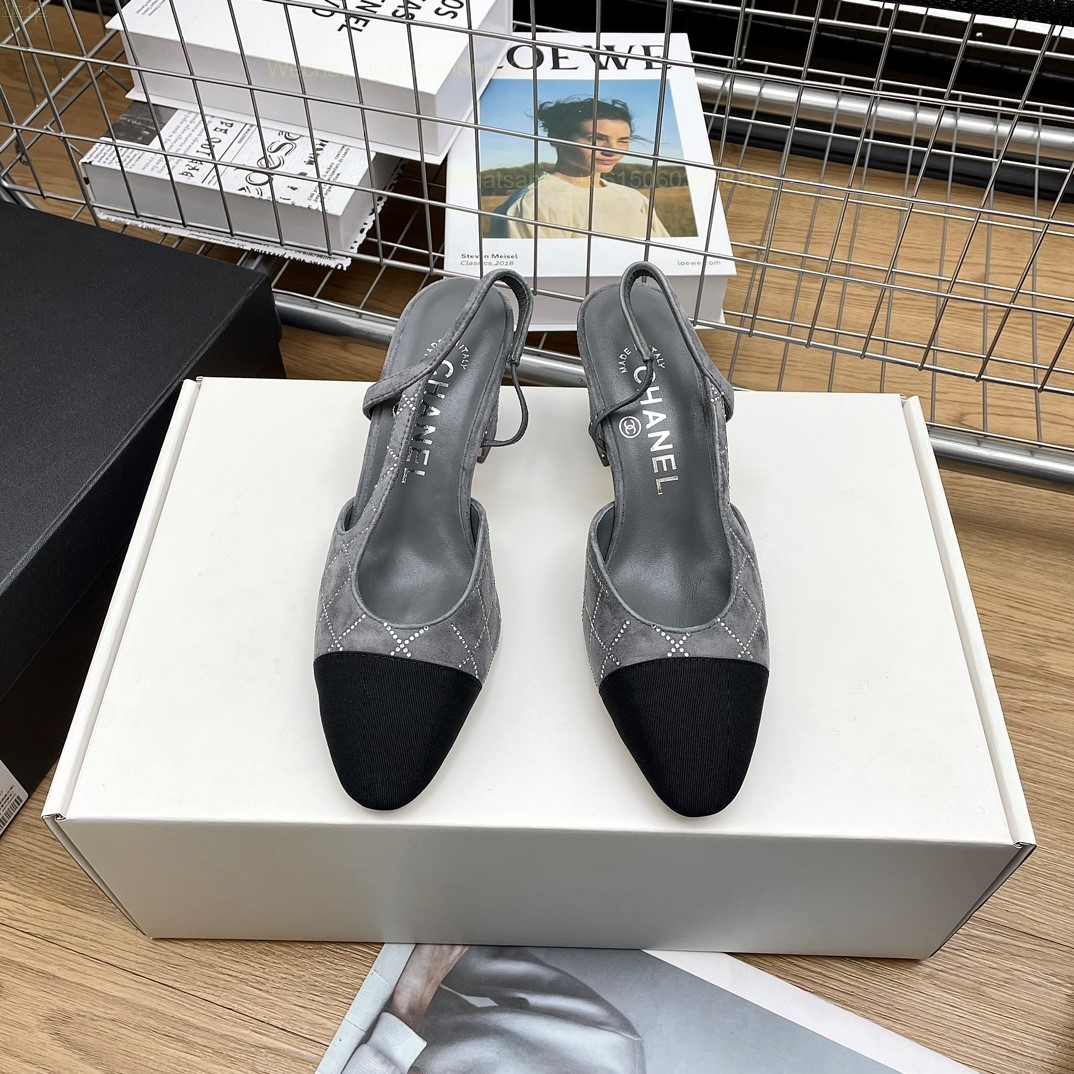 Women Chanel CC Logo crystal suede Slingbacks Pumps Heels Shoes