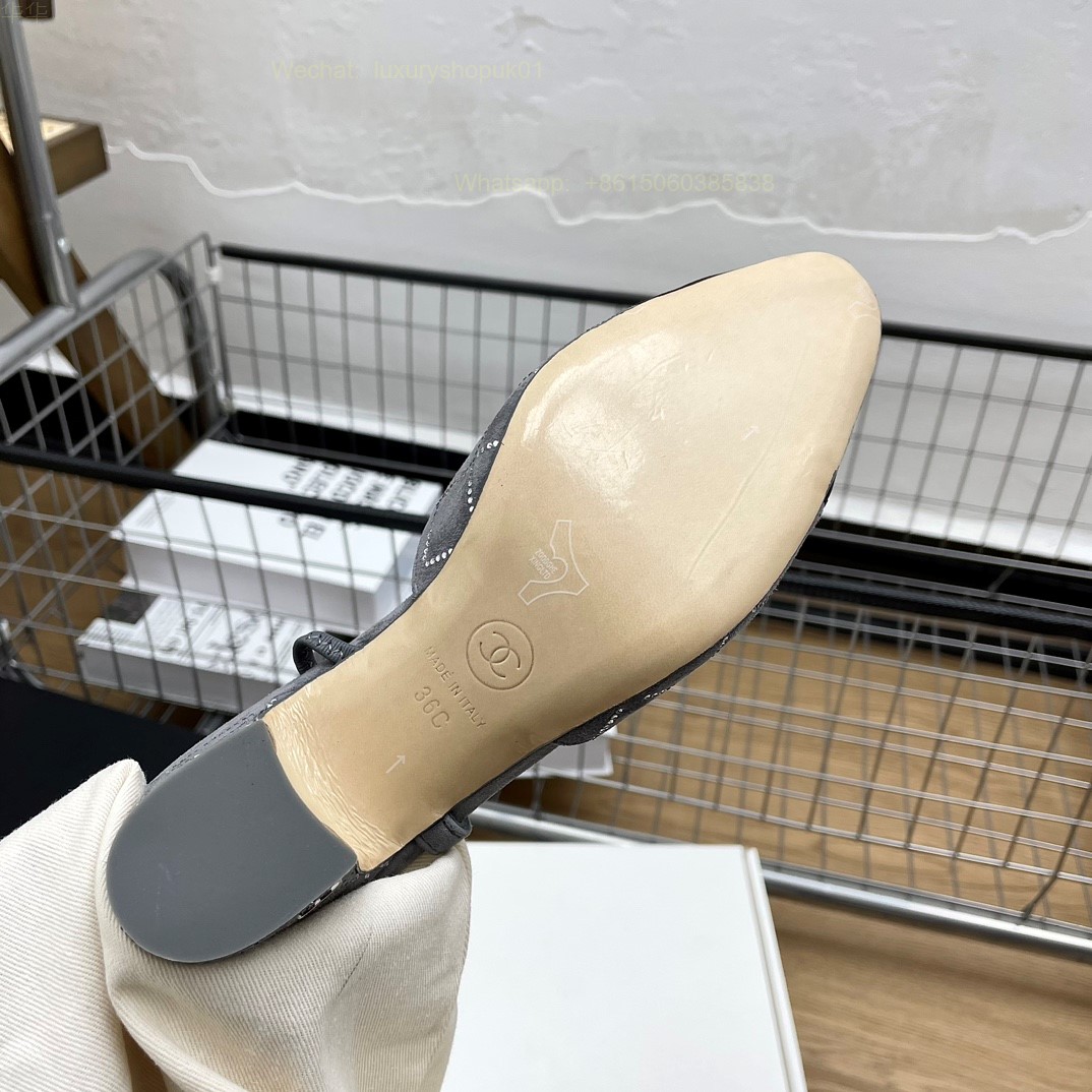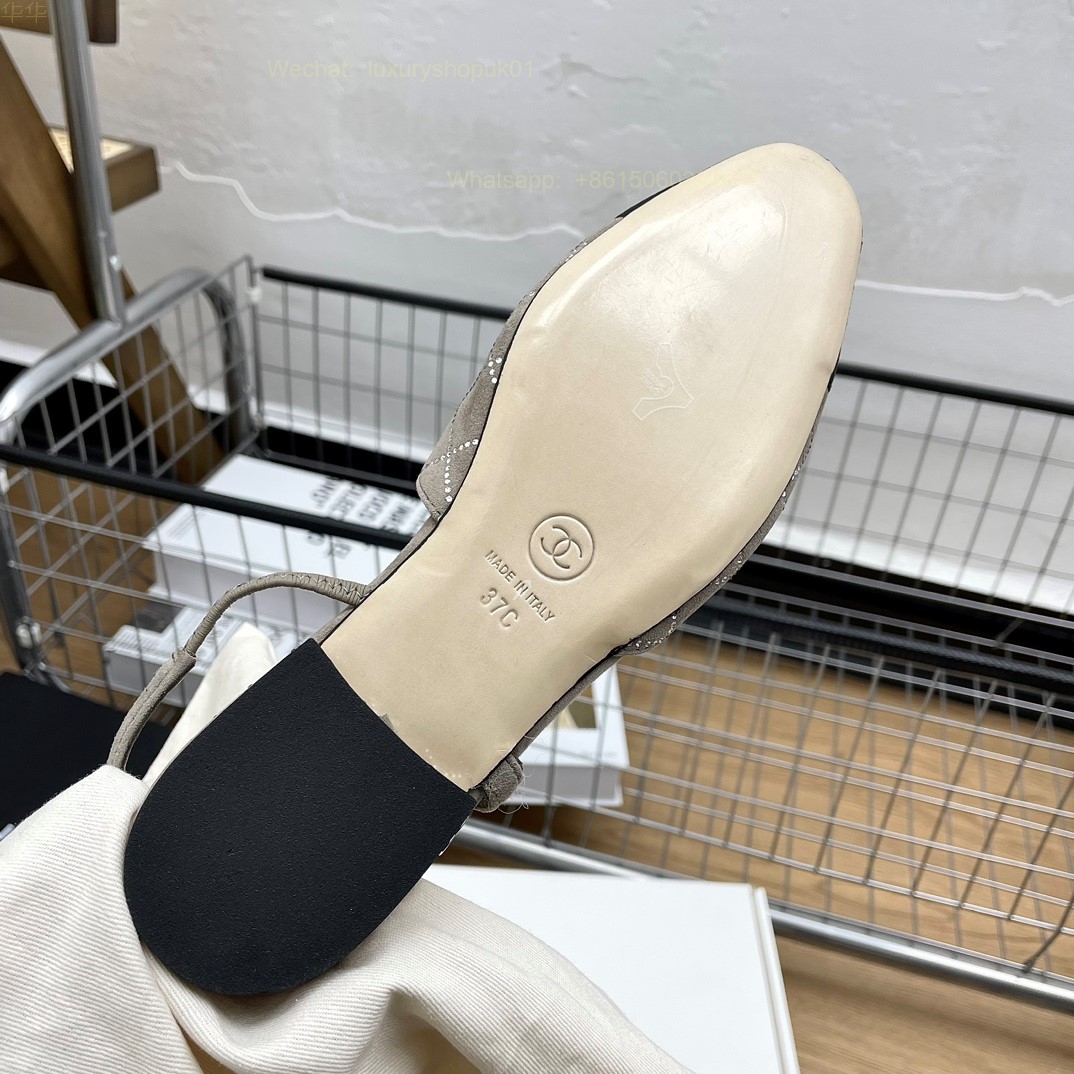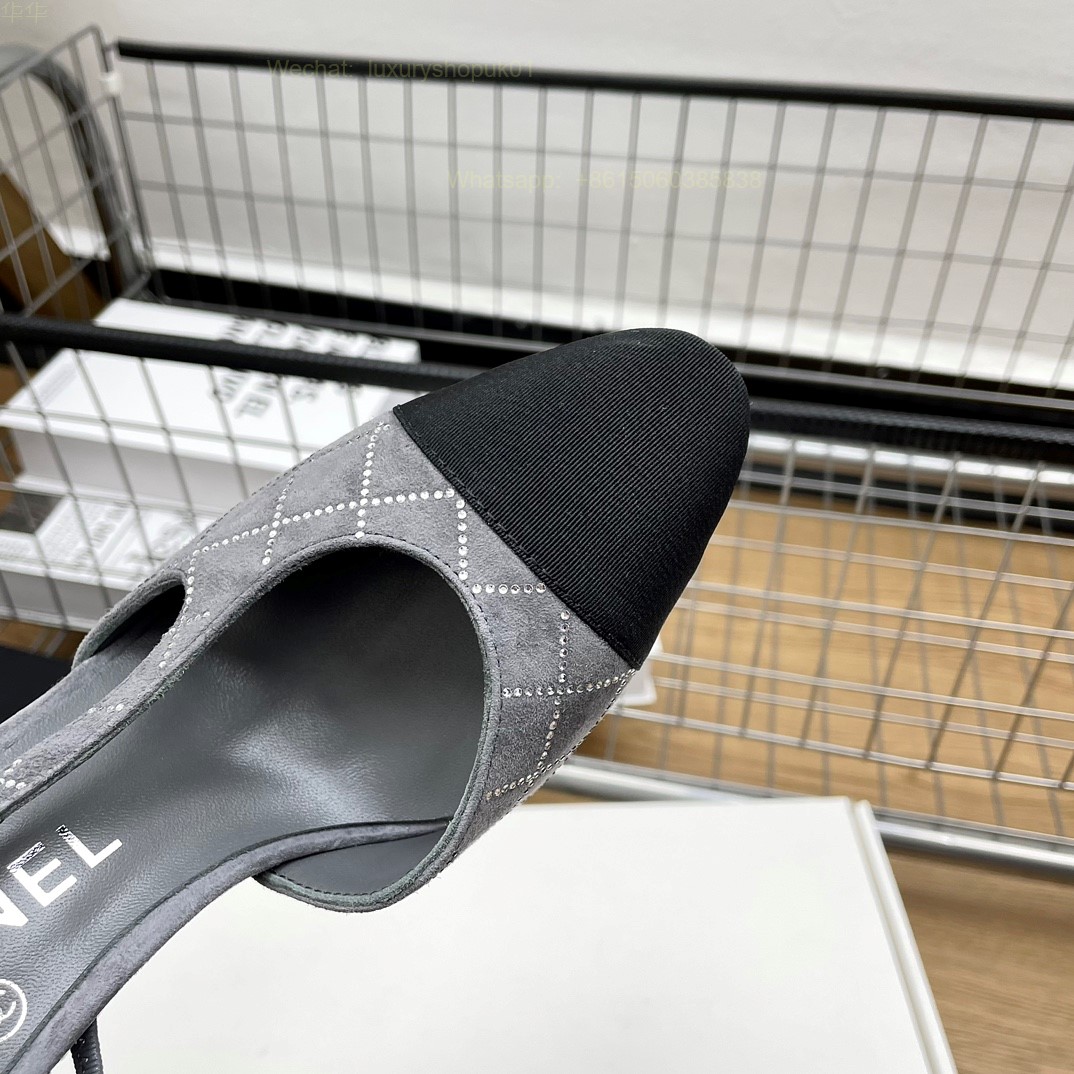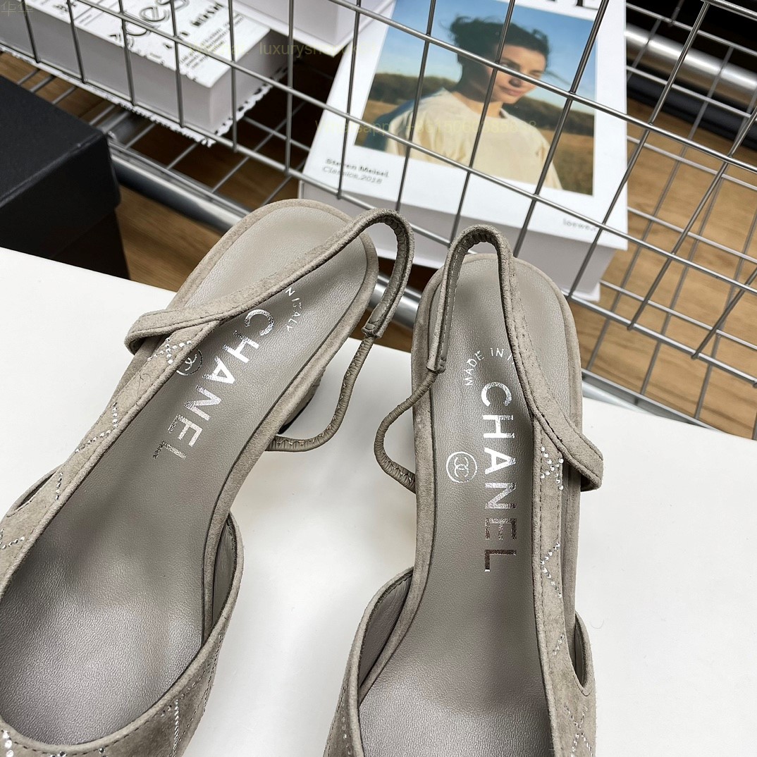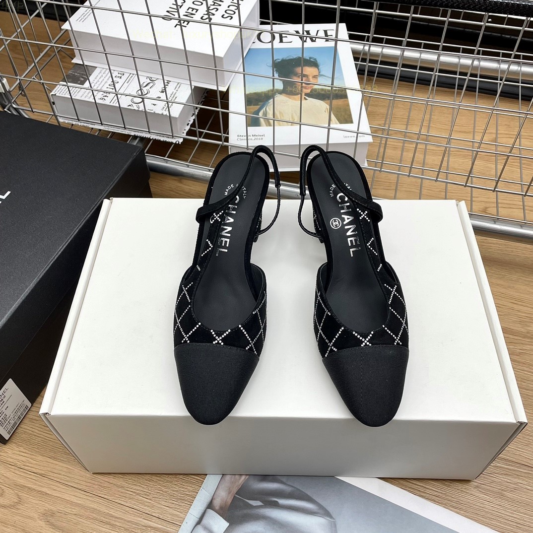 Women Chanel CC Logo crystal suede Slingbacks Pumps Heels Shoes