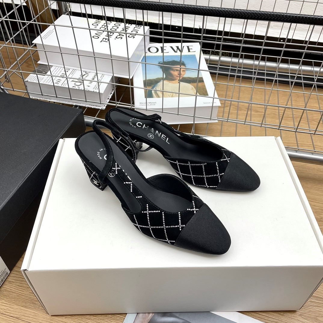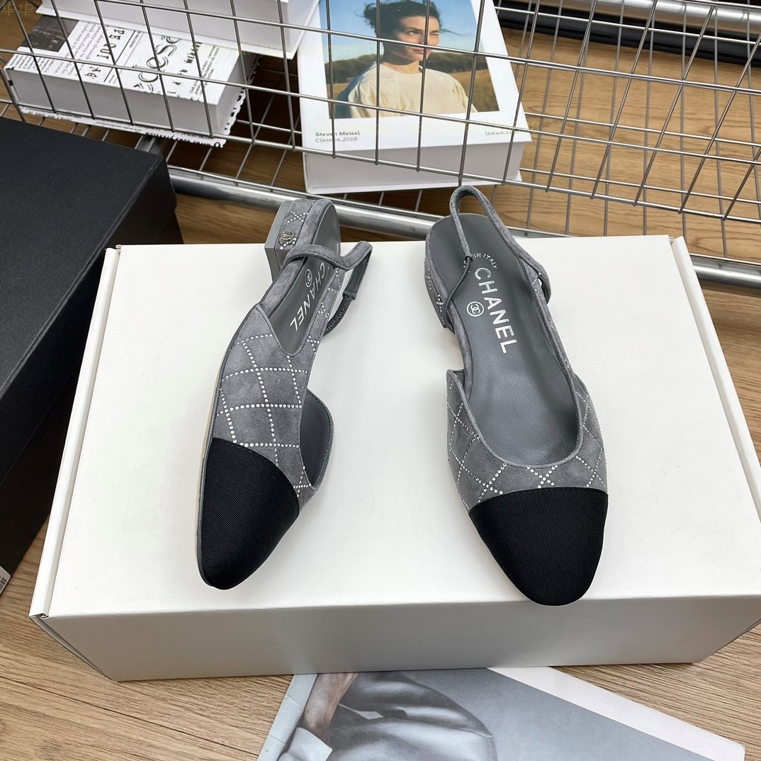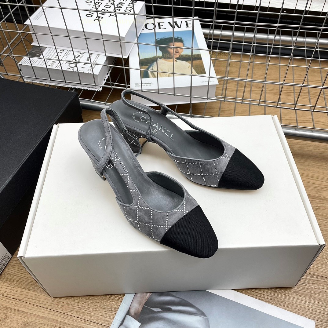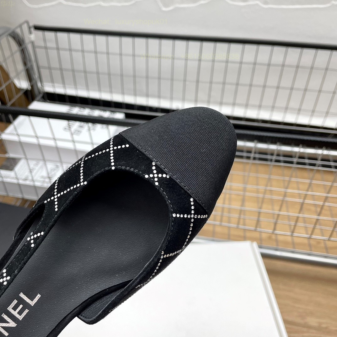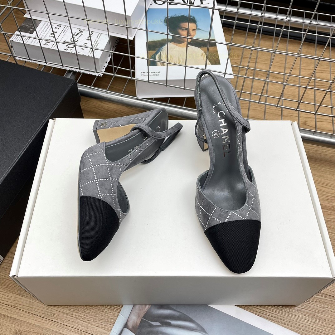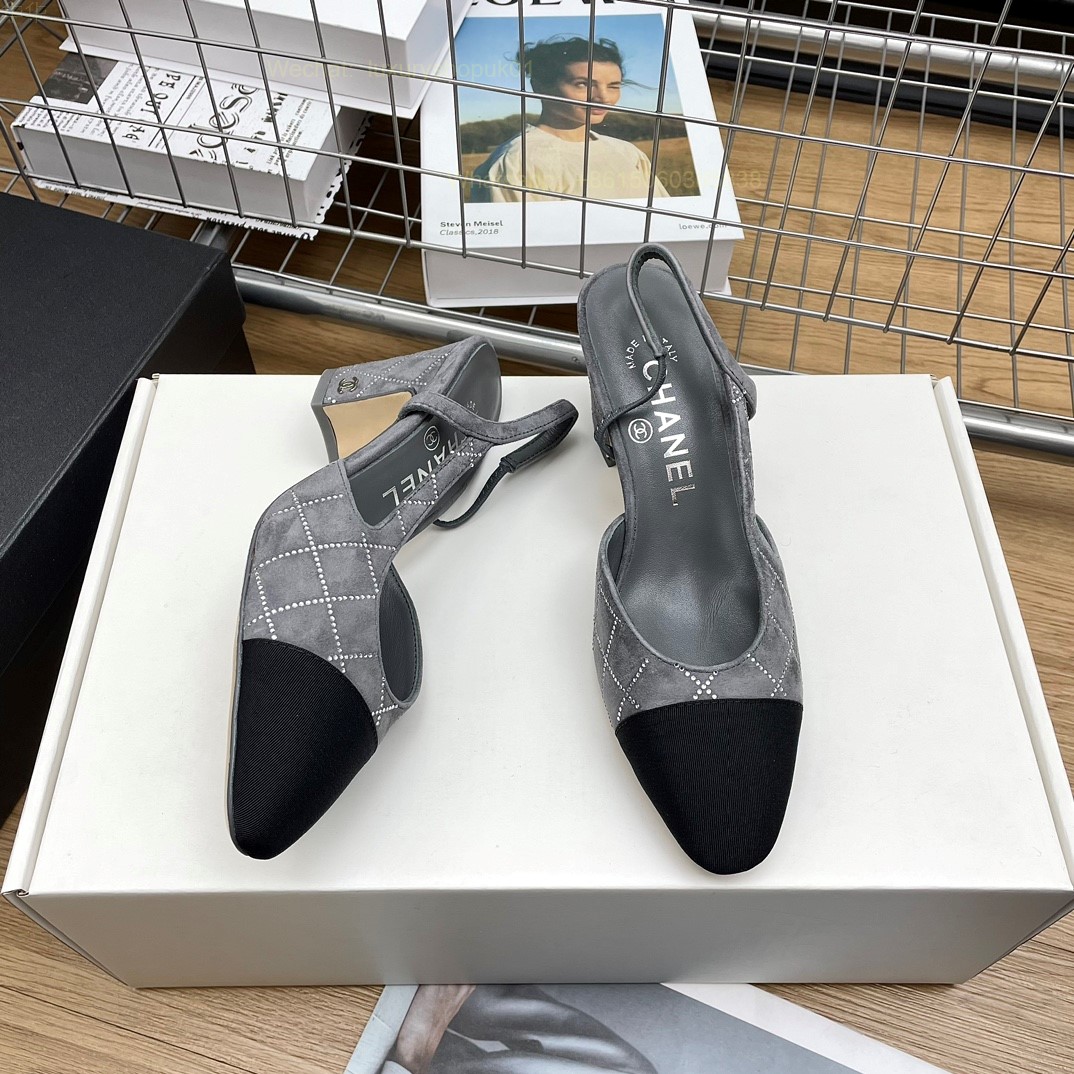 Women Chanel CC Logo crystal suede Slingbacks Pumps Heels Shoes