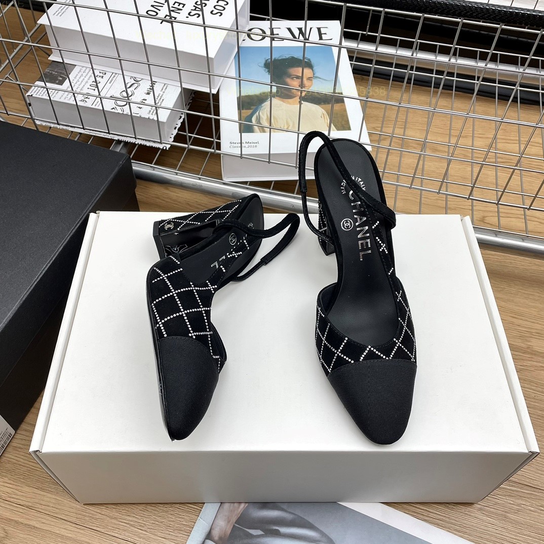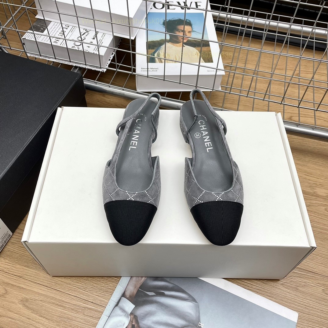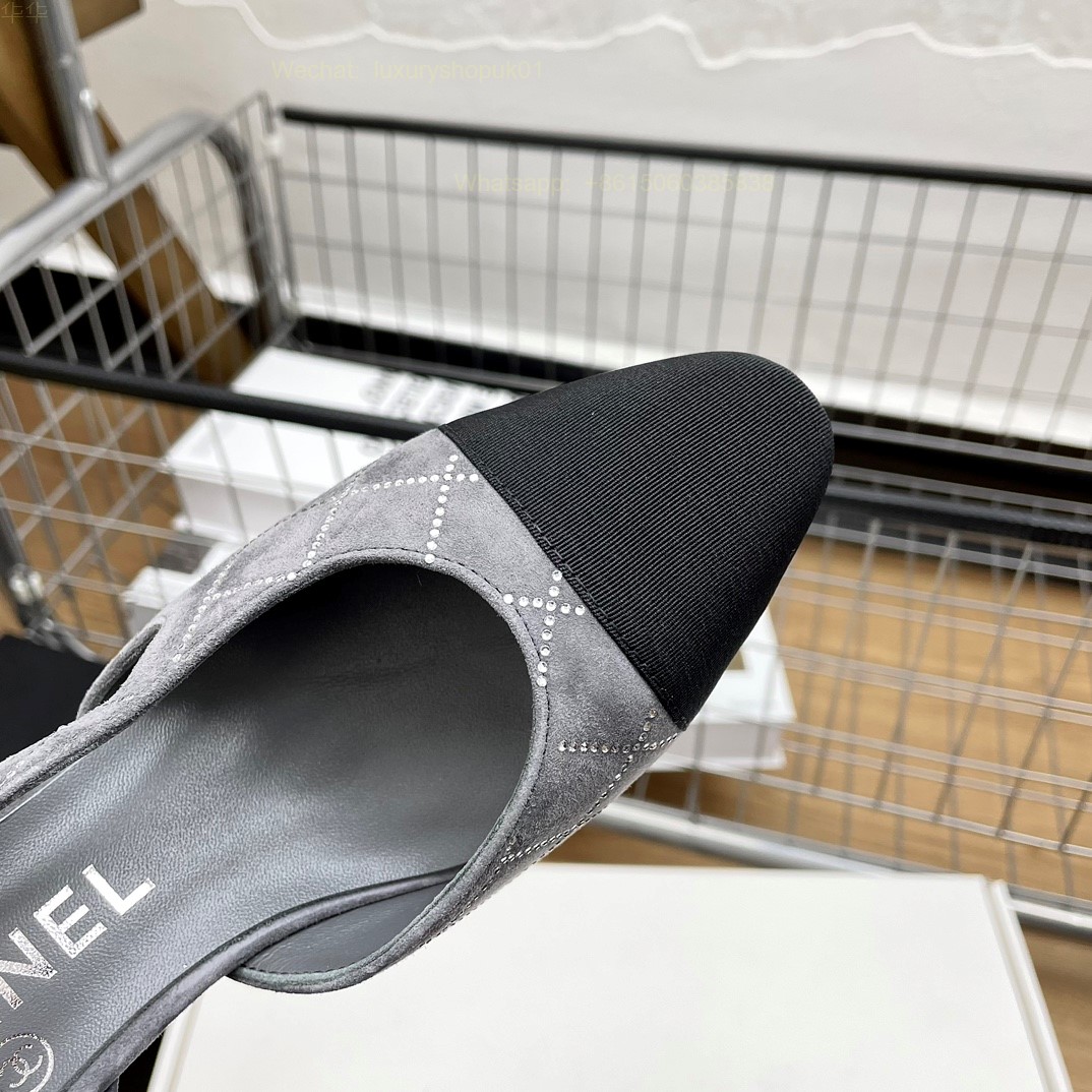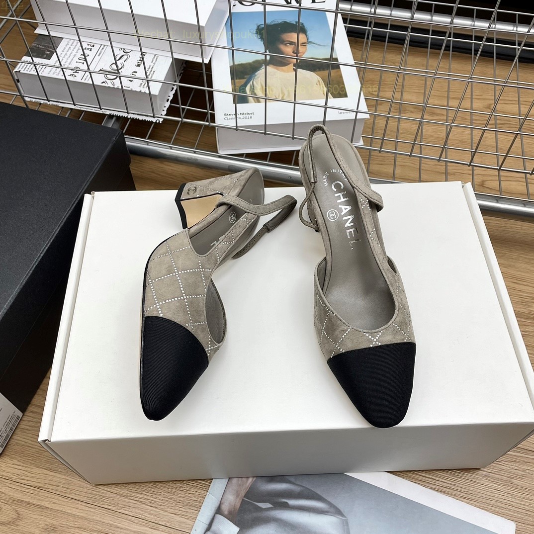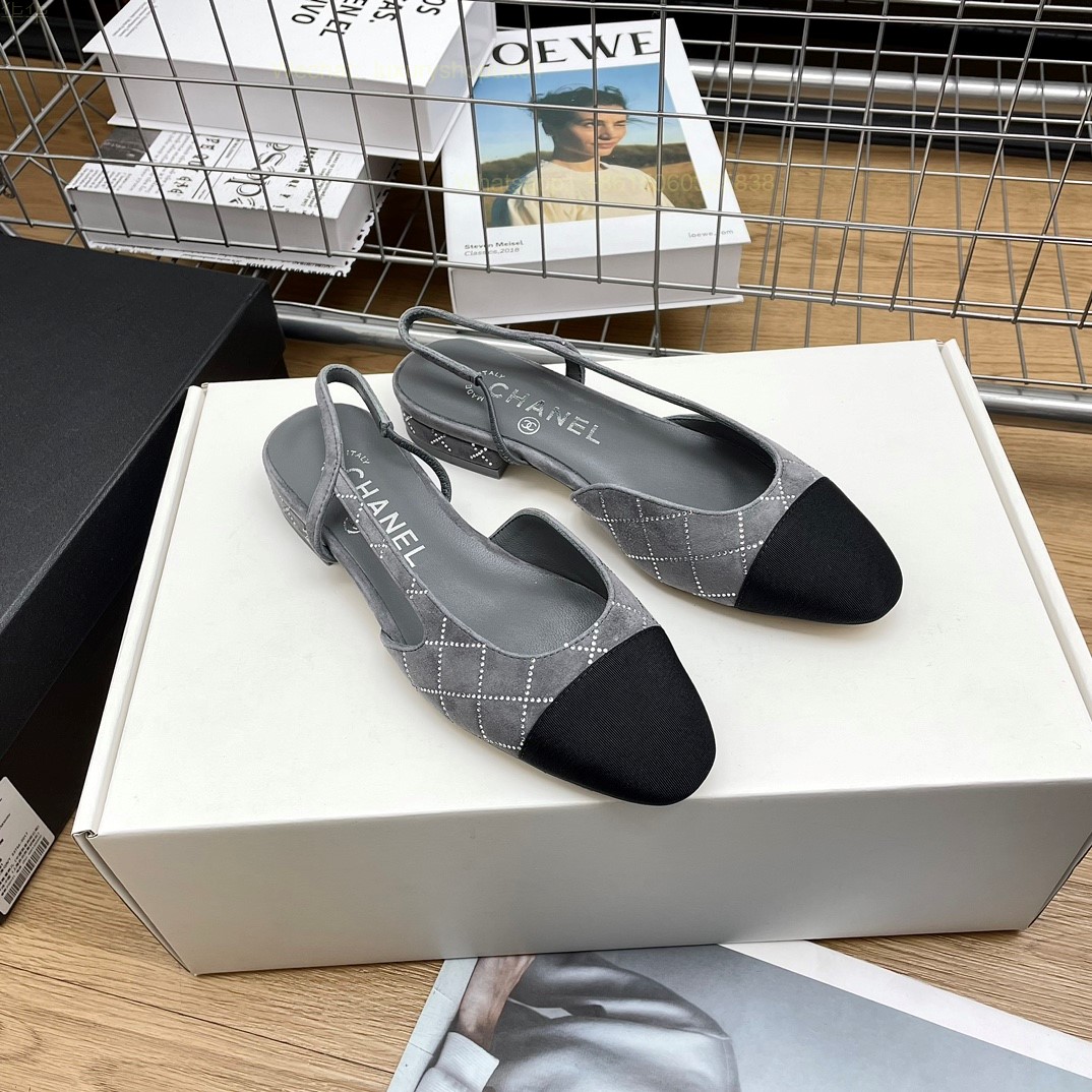 Women Chanel CC Logo crystal suede Slingbacks Pumps Heels Shoes