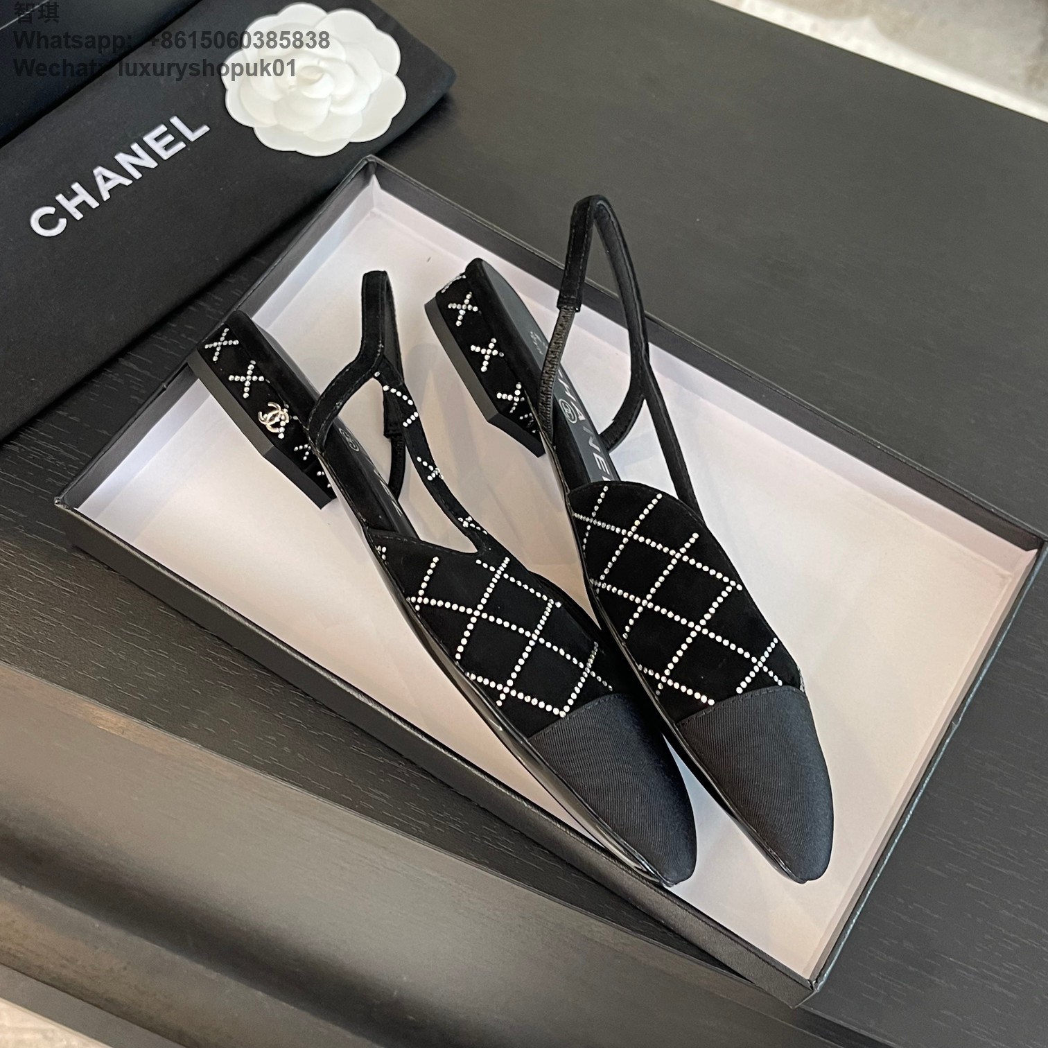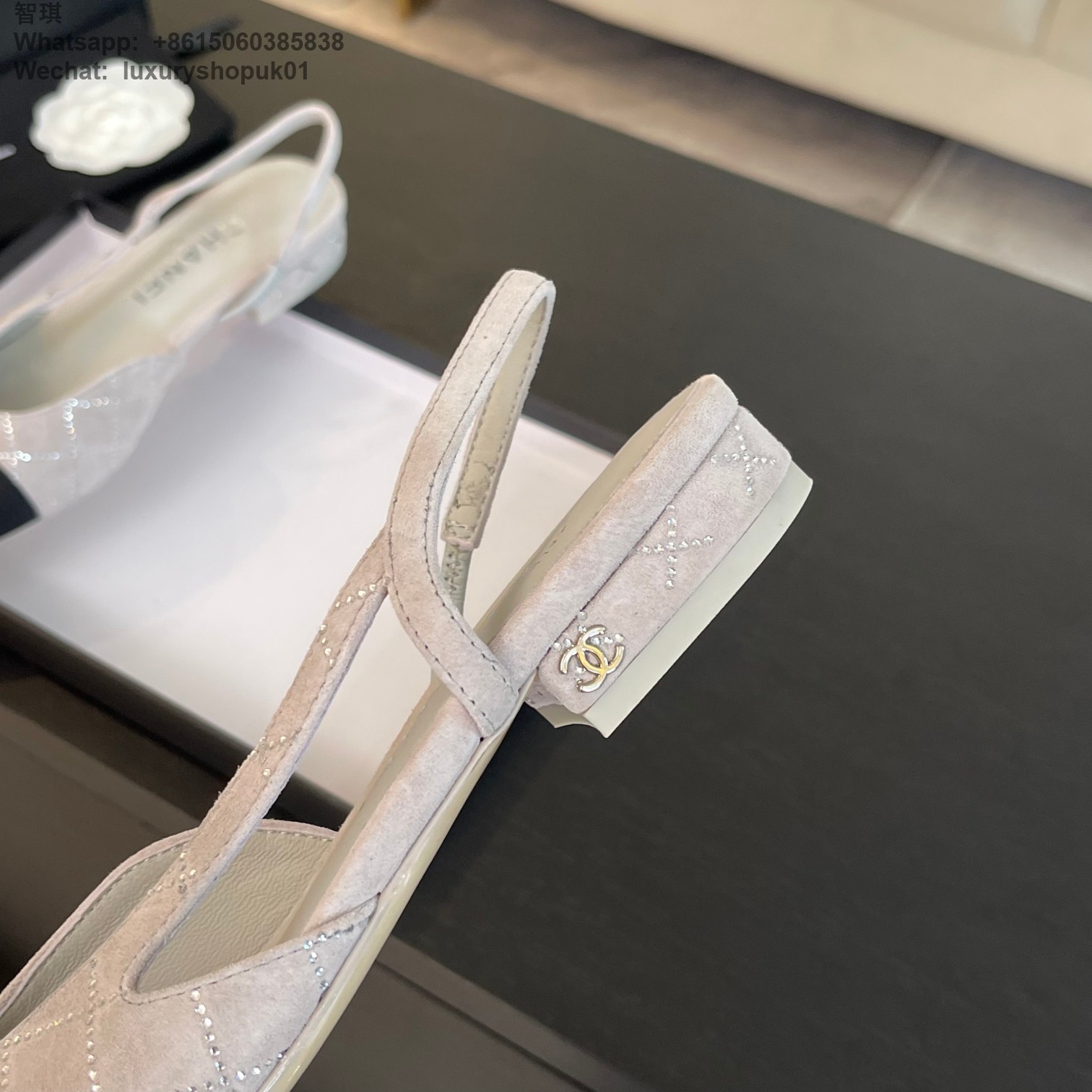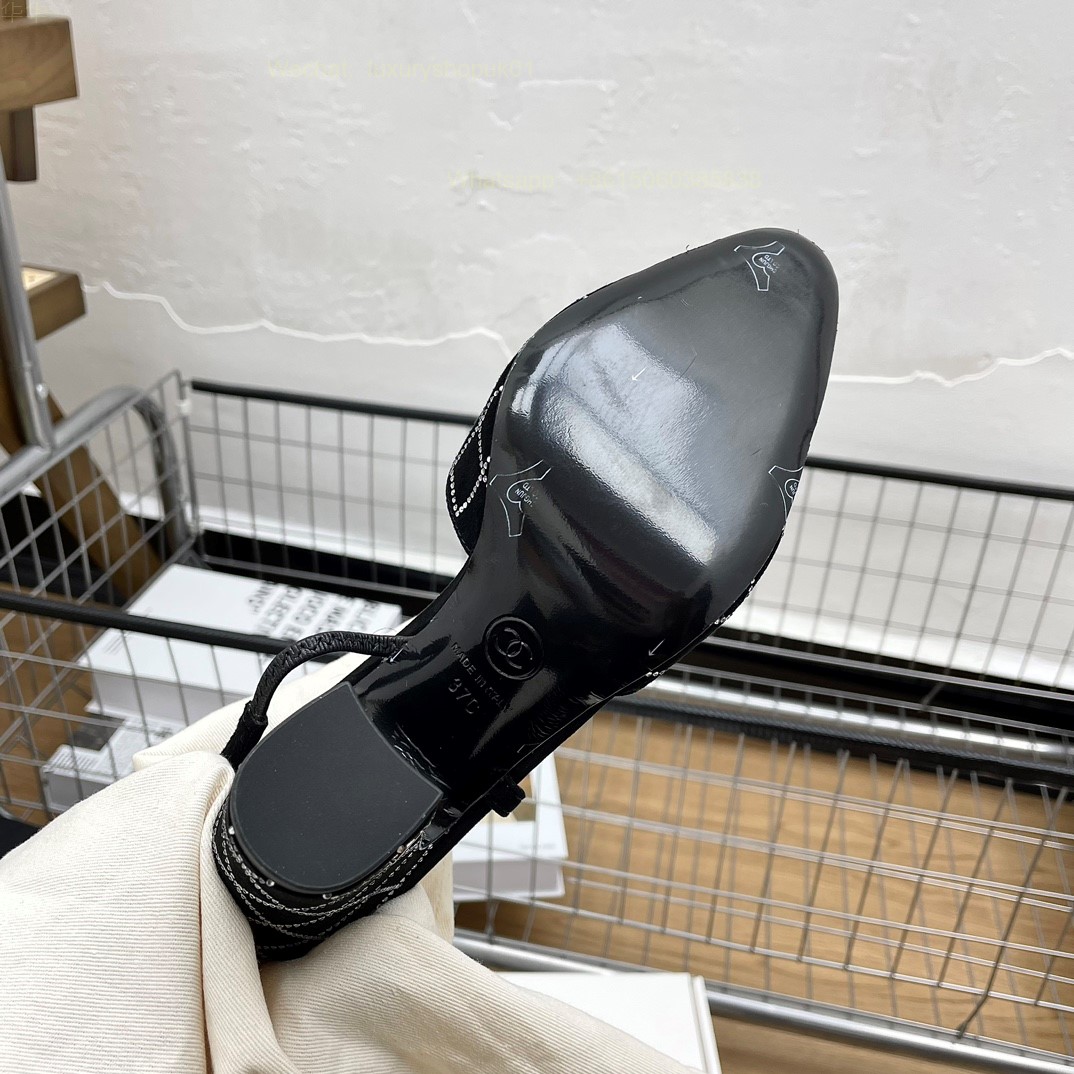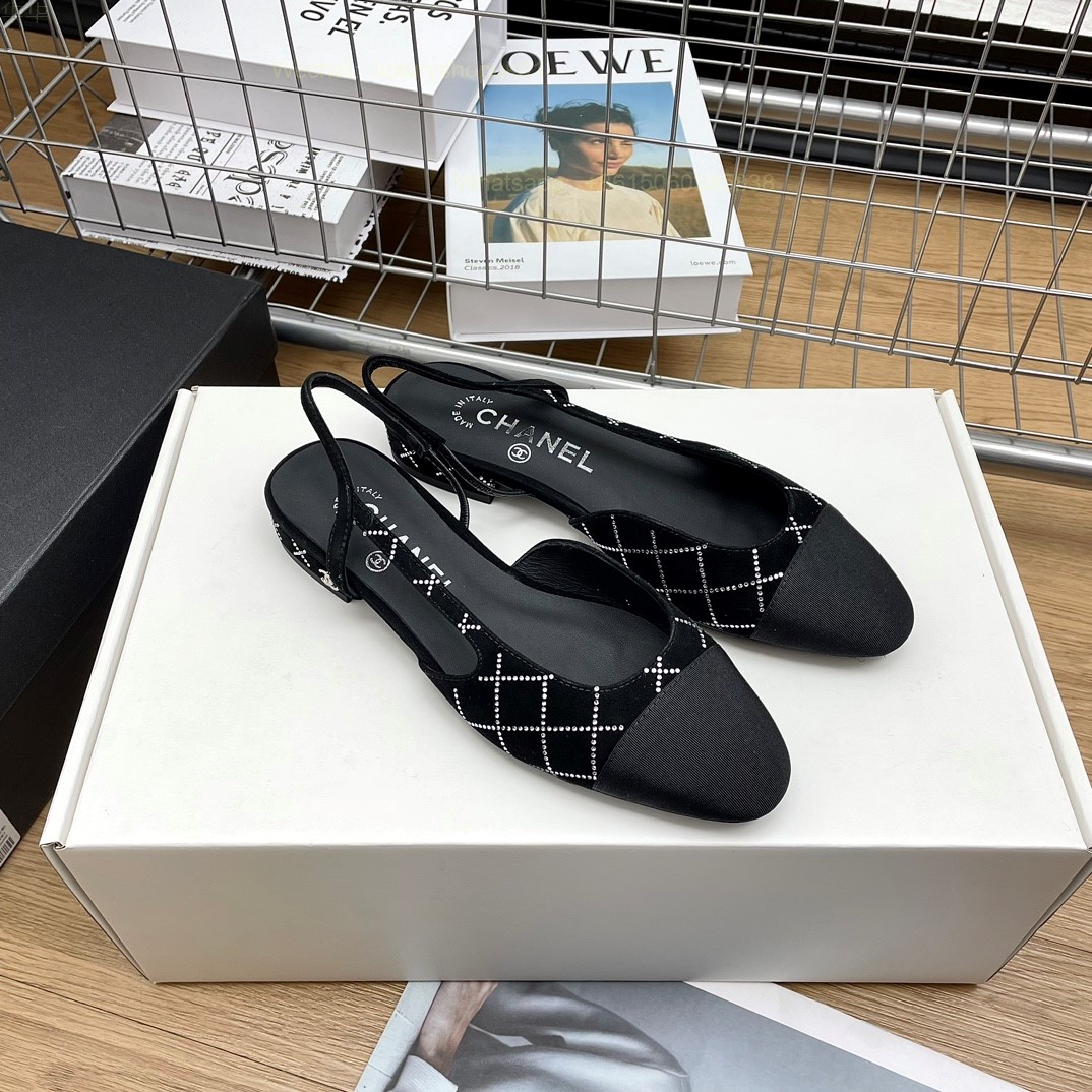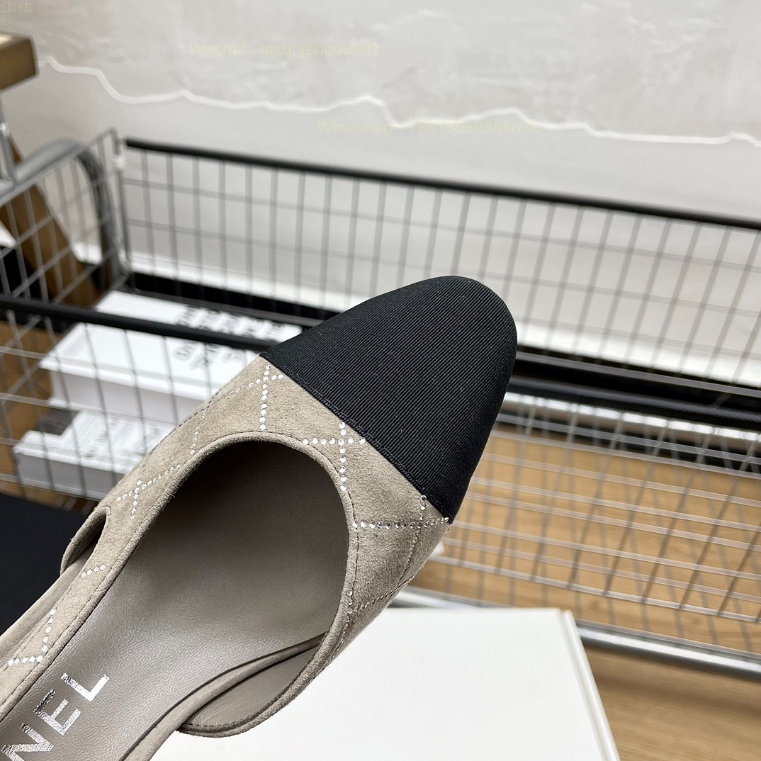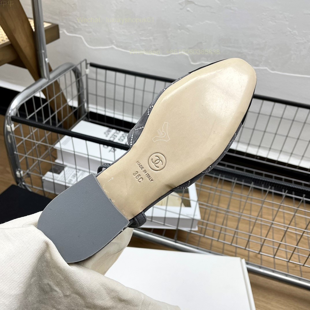 Women Chanel CC Logo crystal suede Slingbacks Pumps Heels Shoes