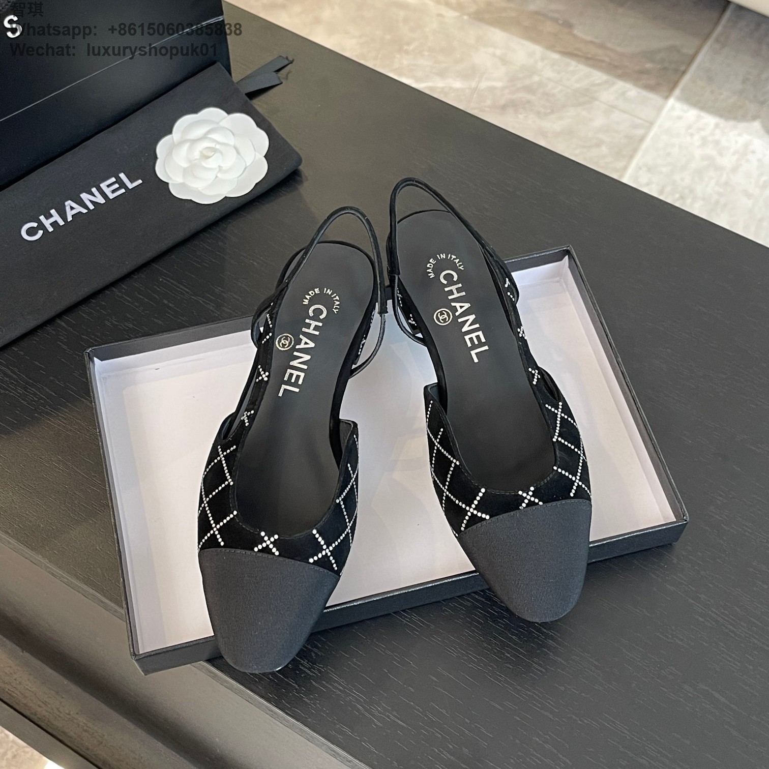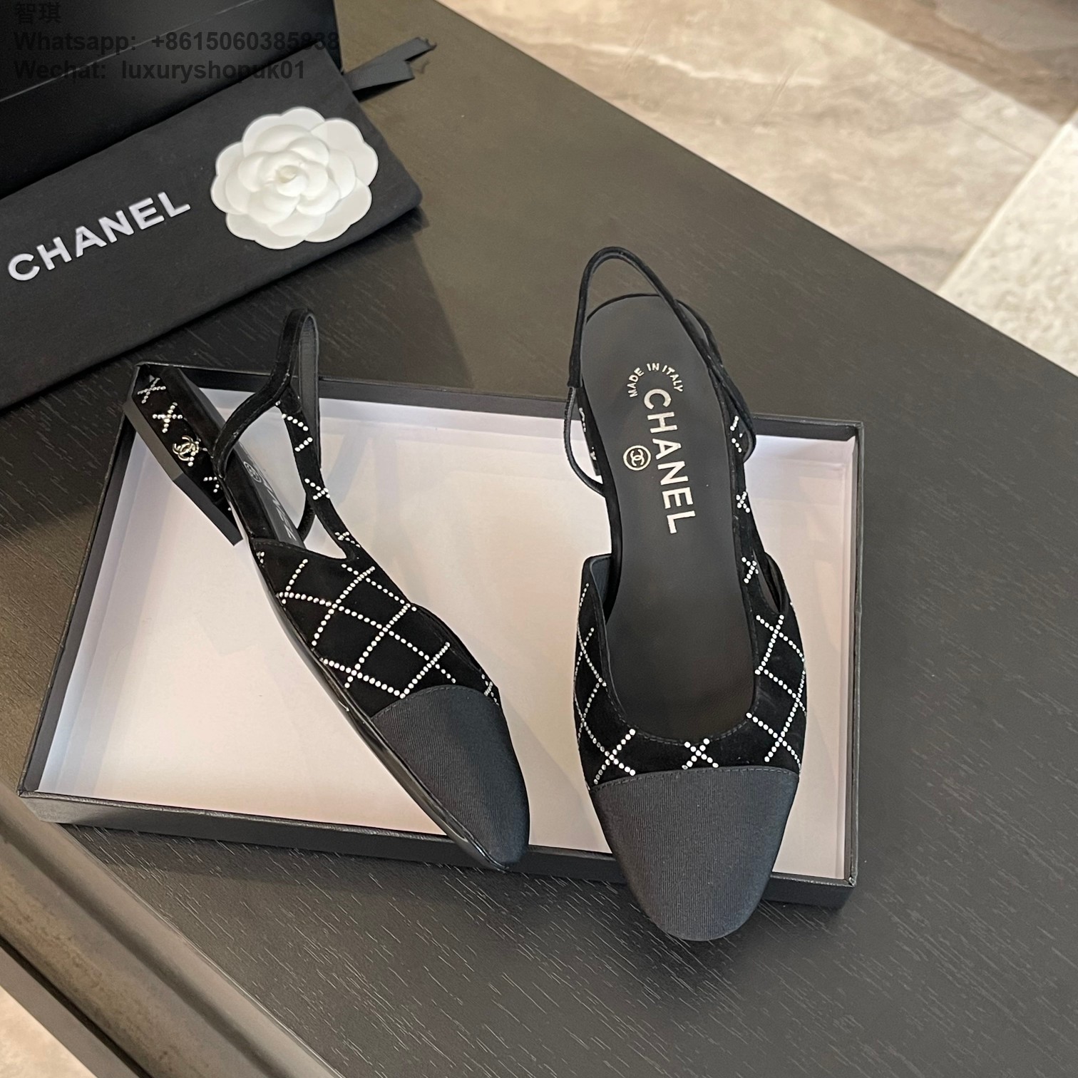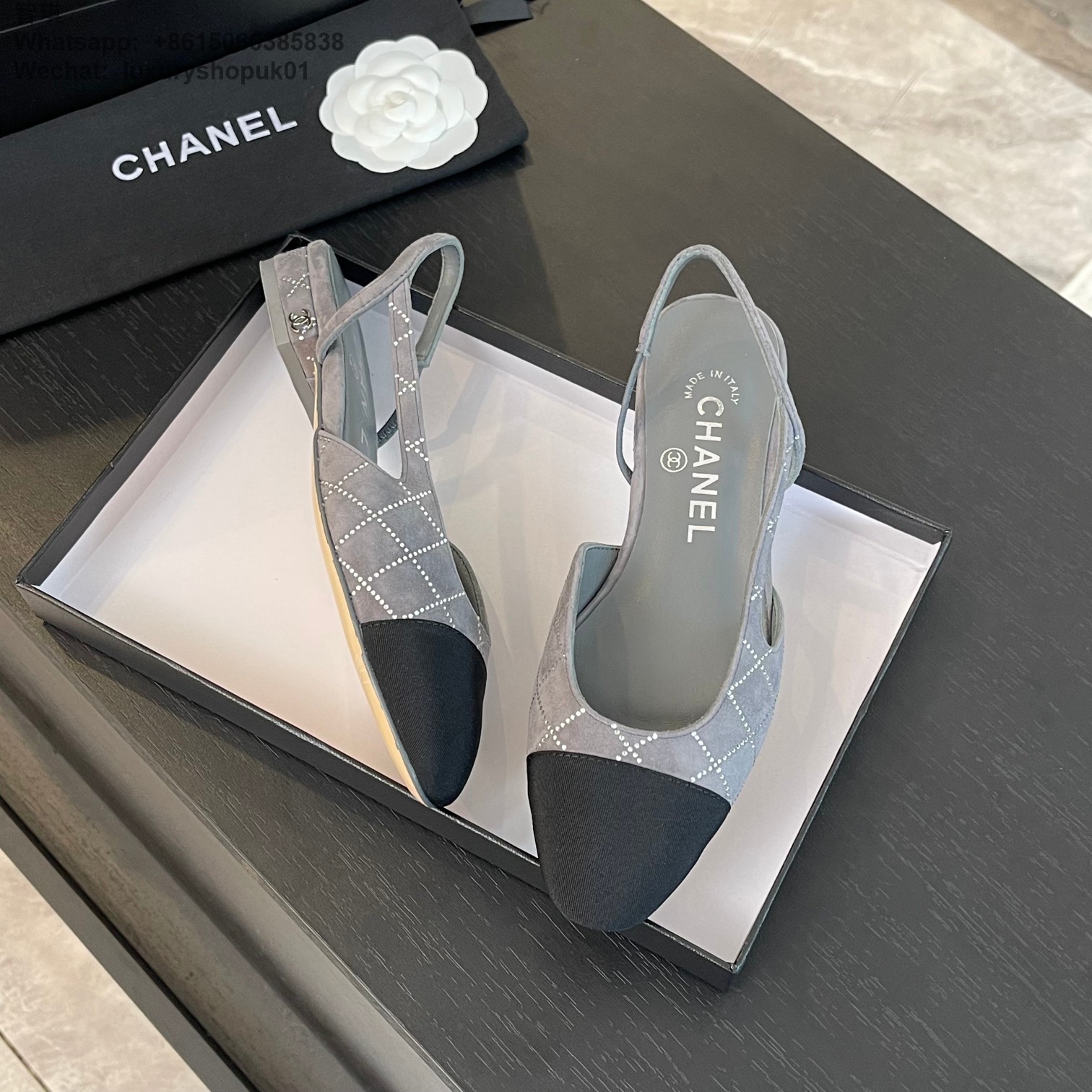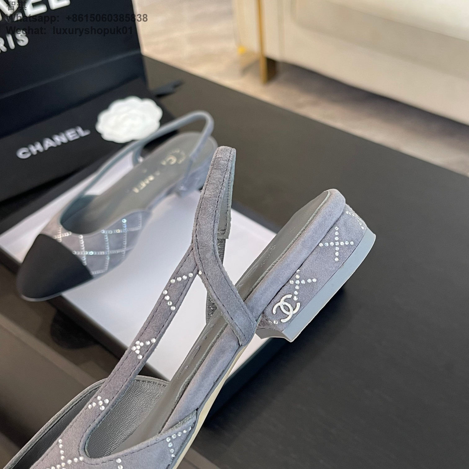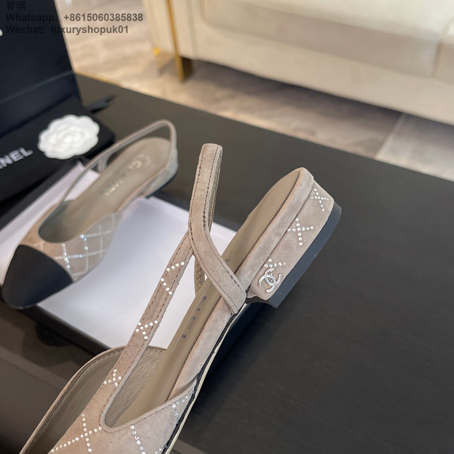 Women Chanel CC Logo crystal suede Slingbacks Pumps Heels Shoes