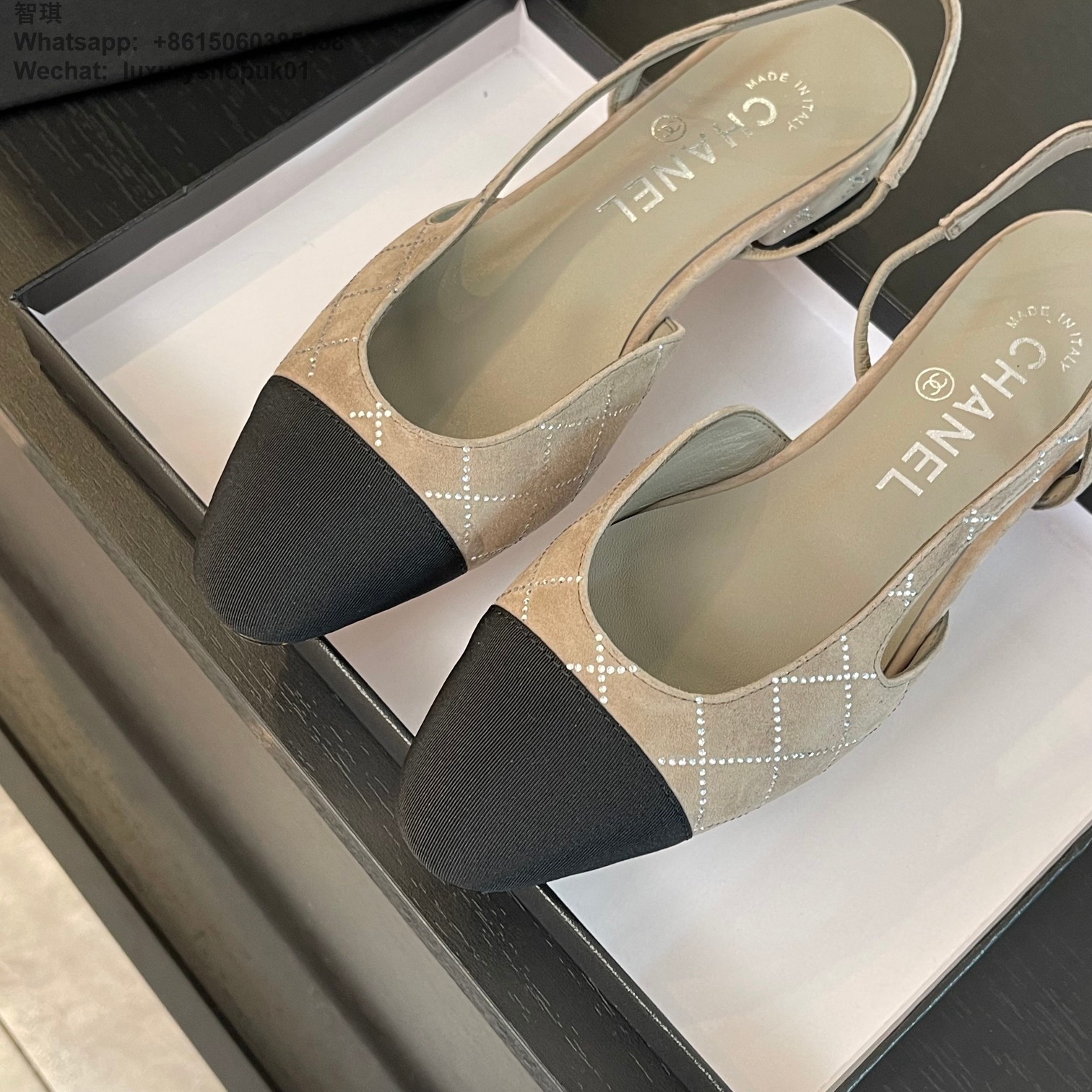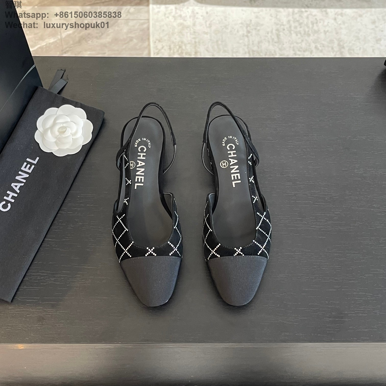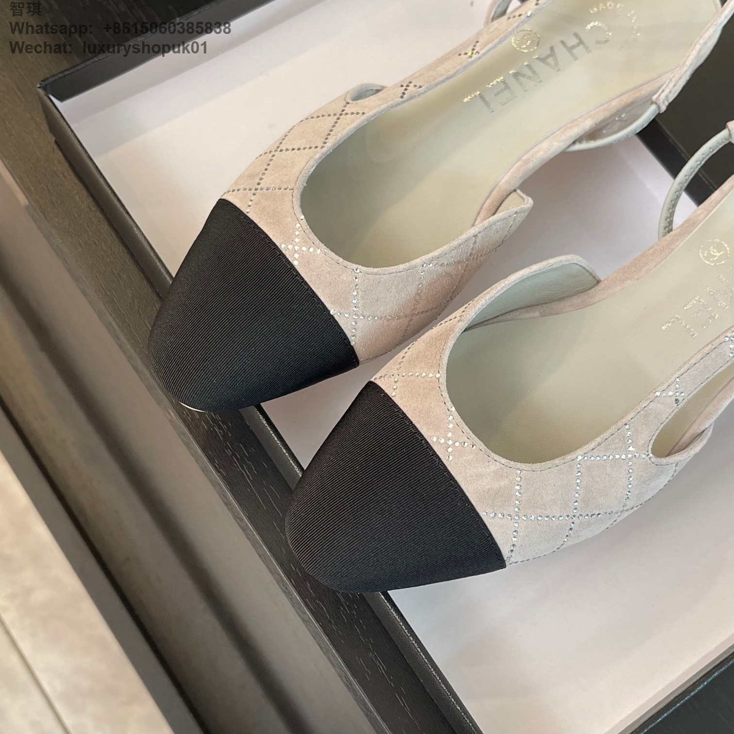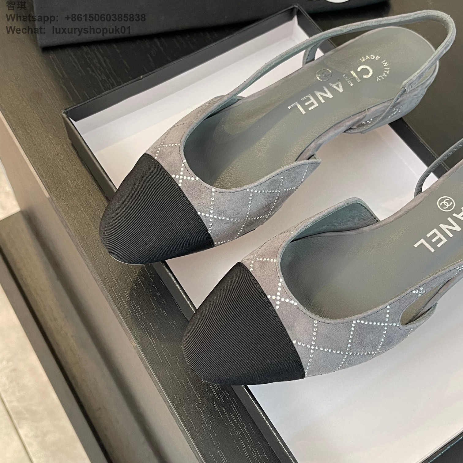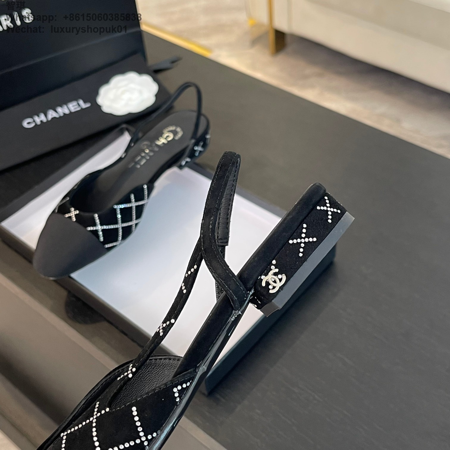 Women Chanel CC Logo crystal suede Slingbacks Pumps Heels Shoes