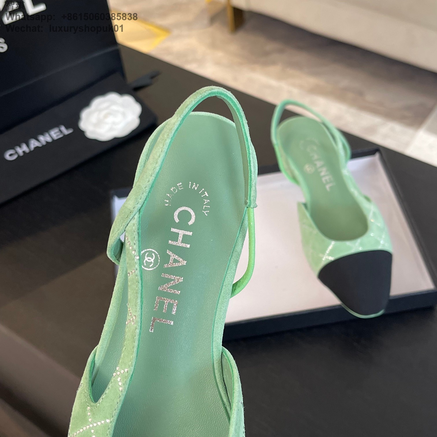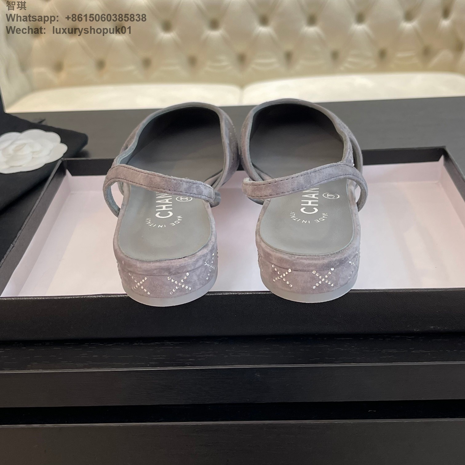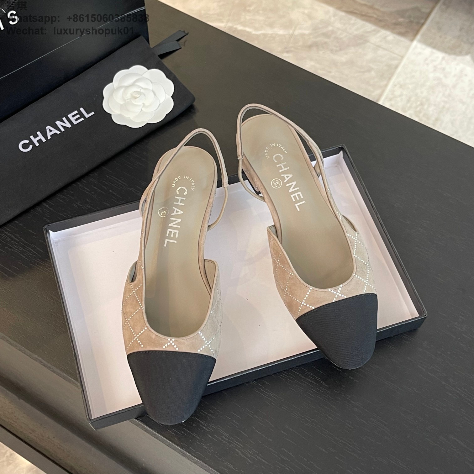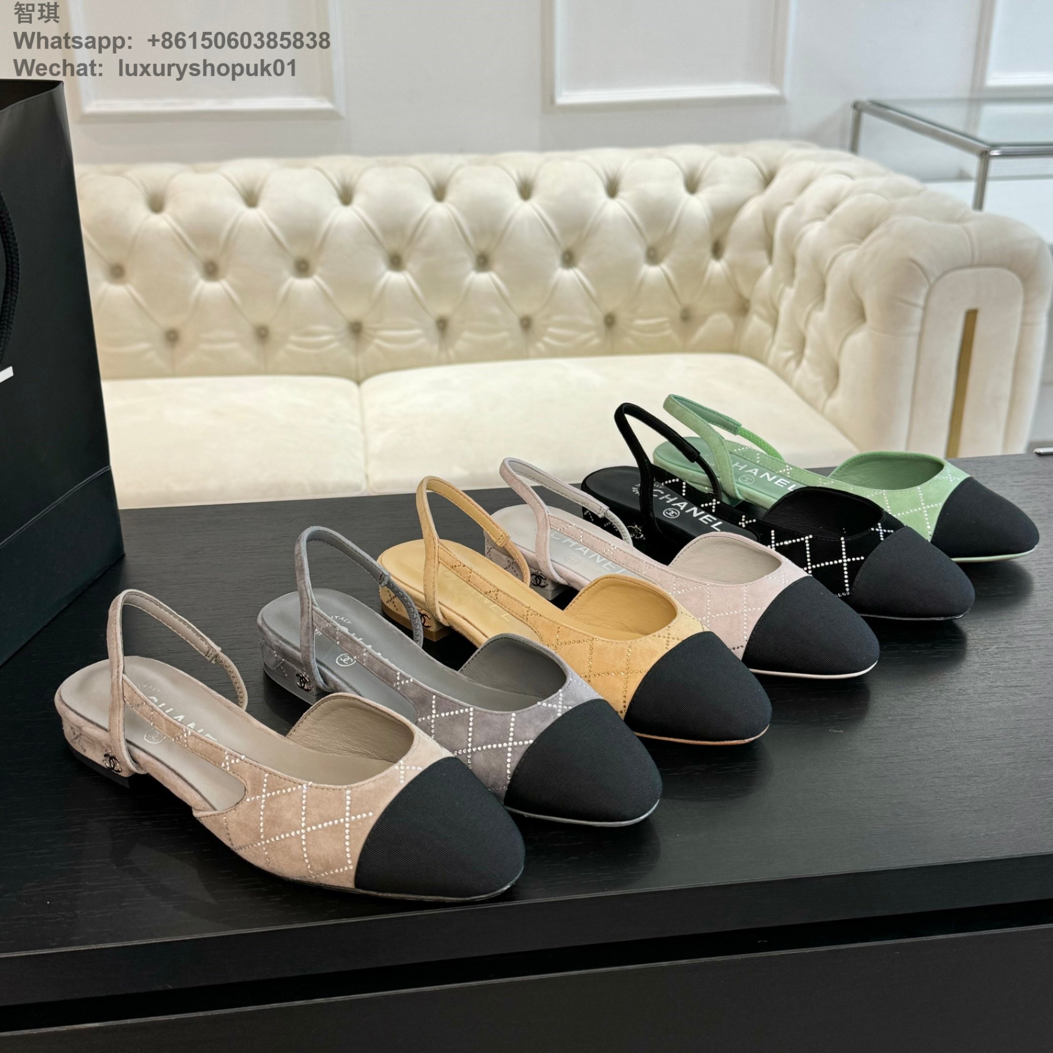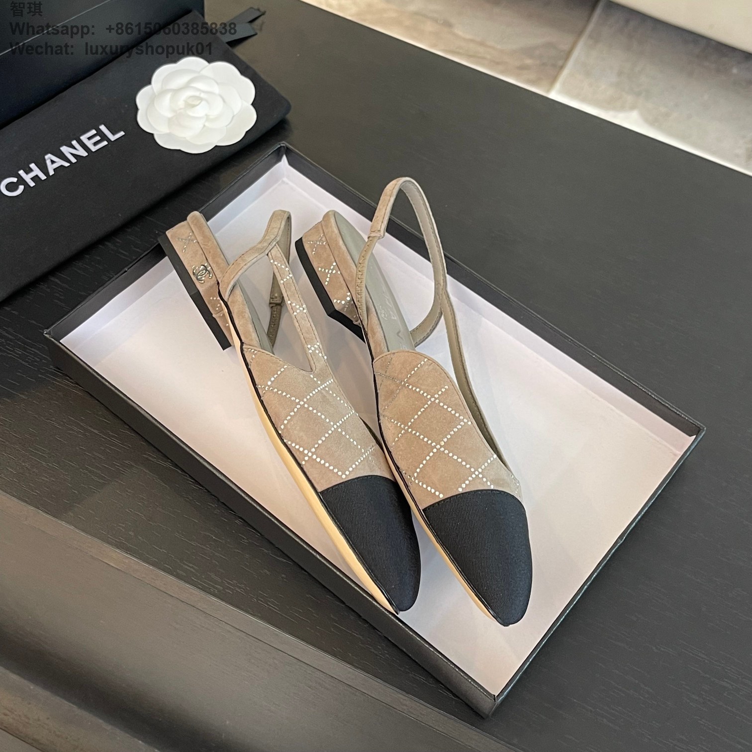 Women Chanel CC Logo crystal suede Slingbacks Pumps Heels Shoes