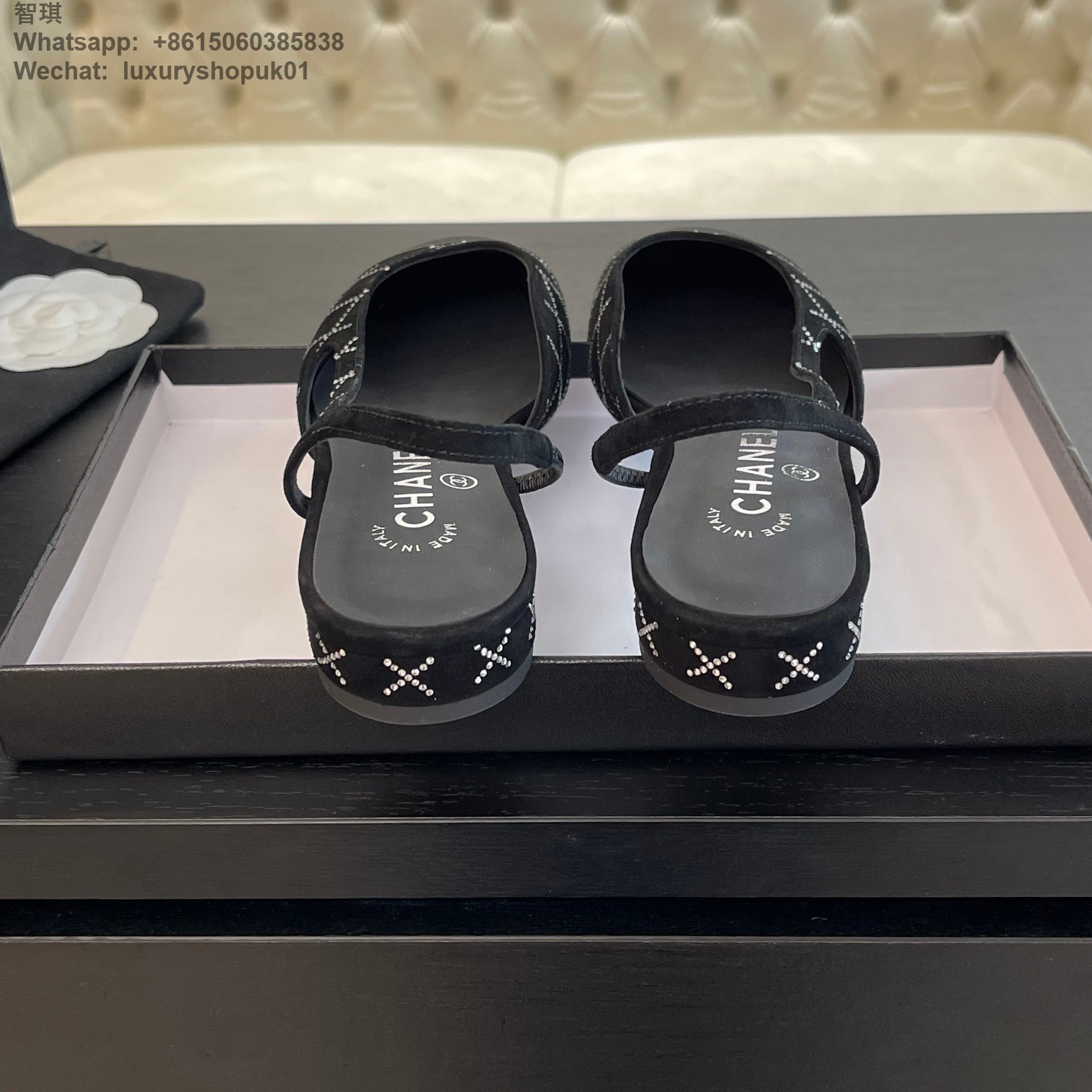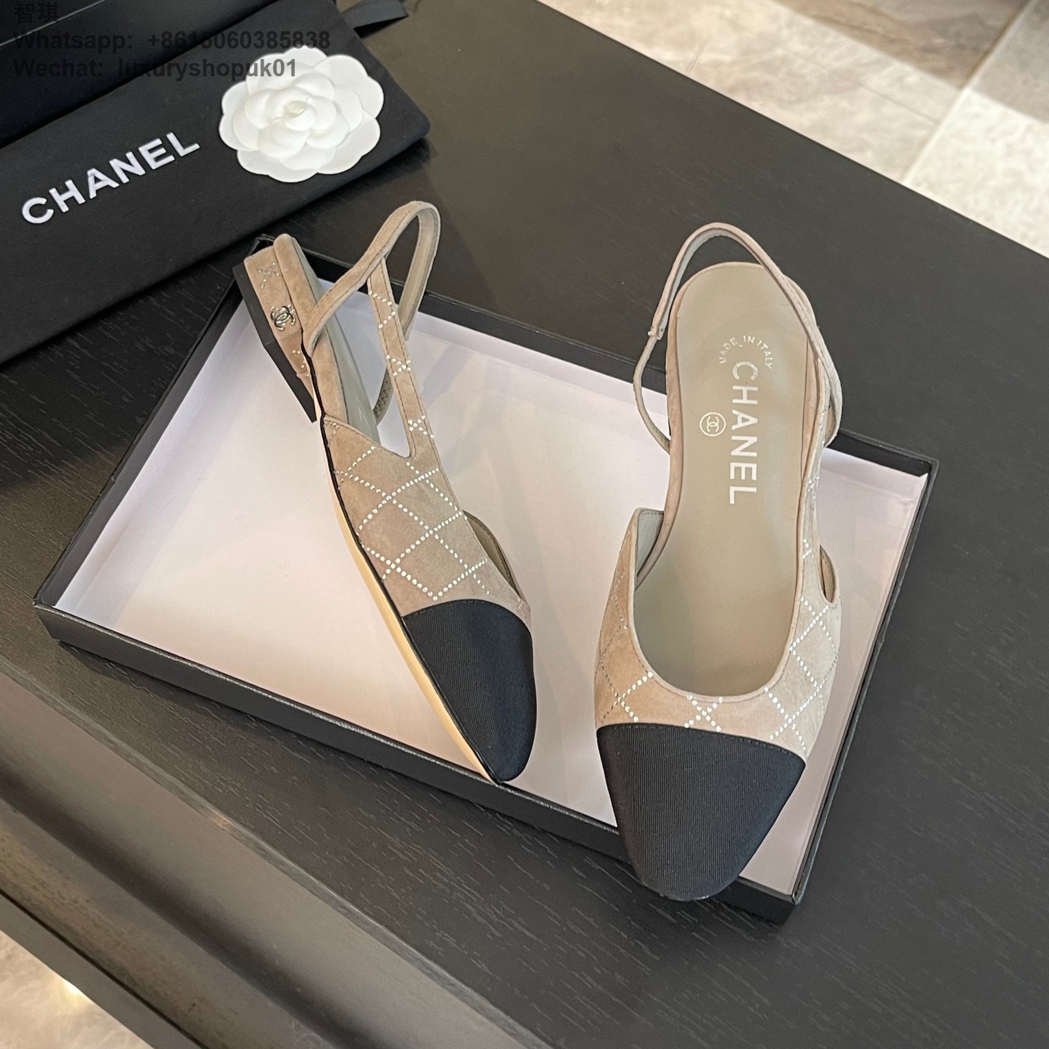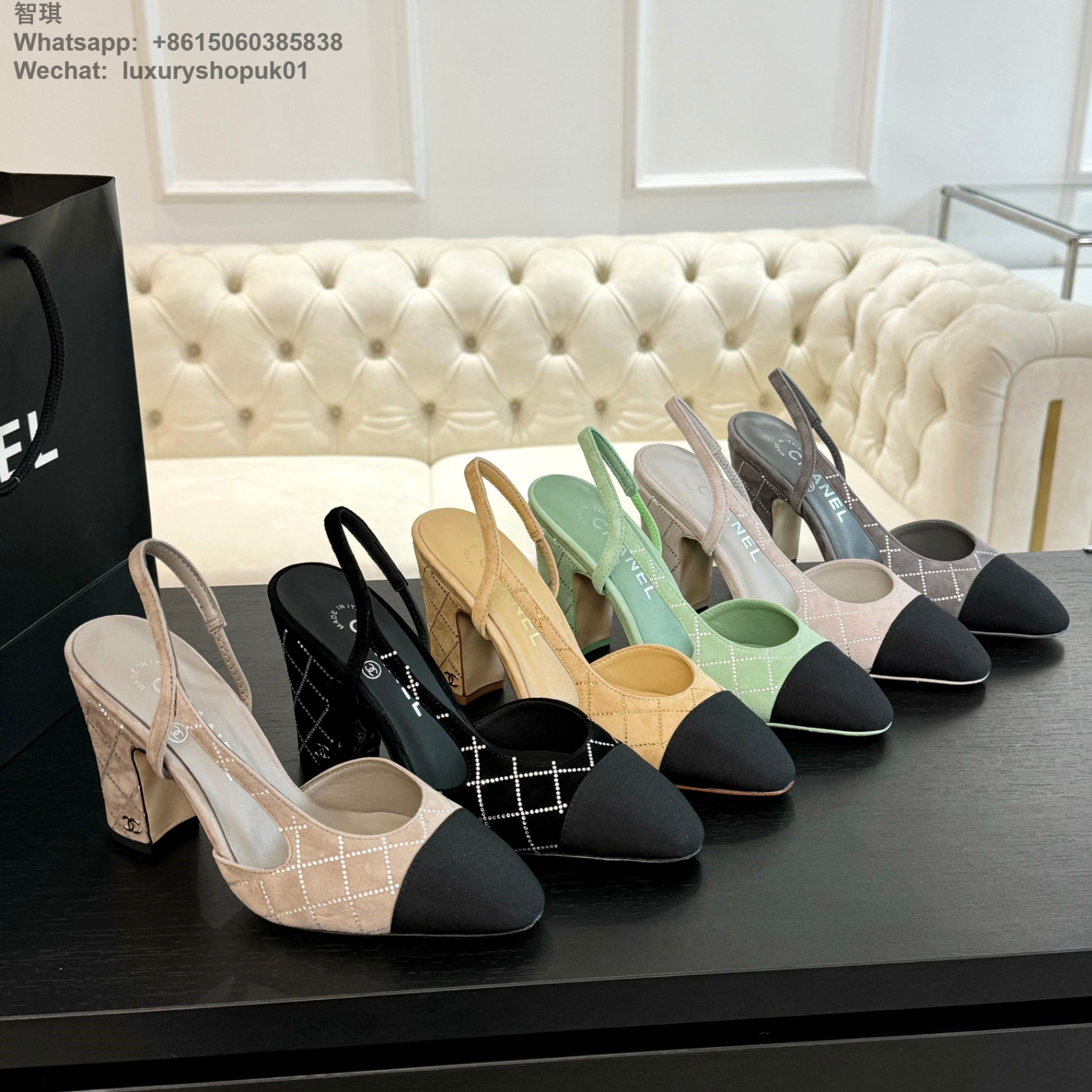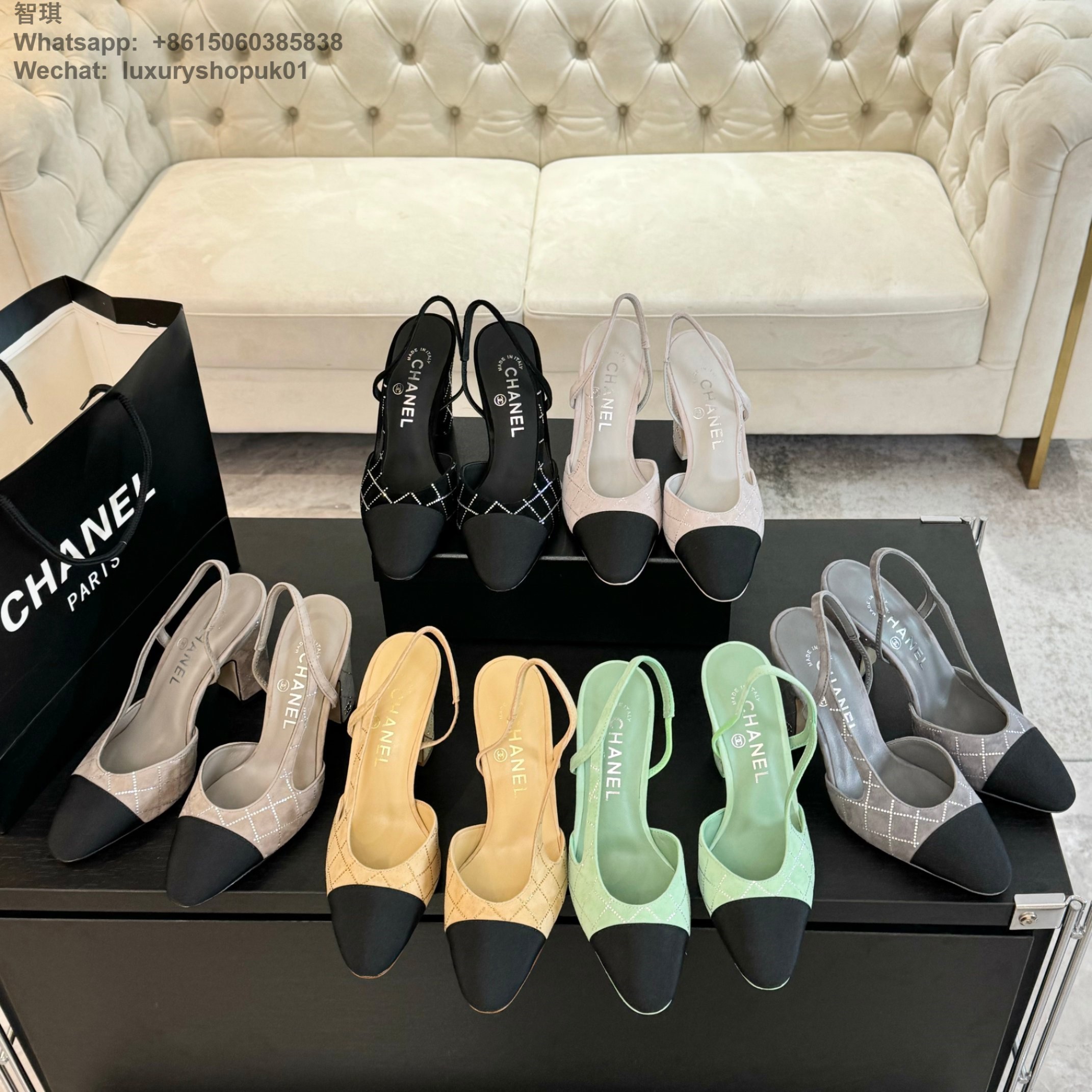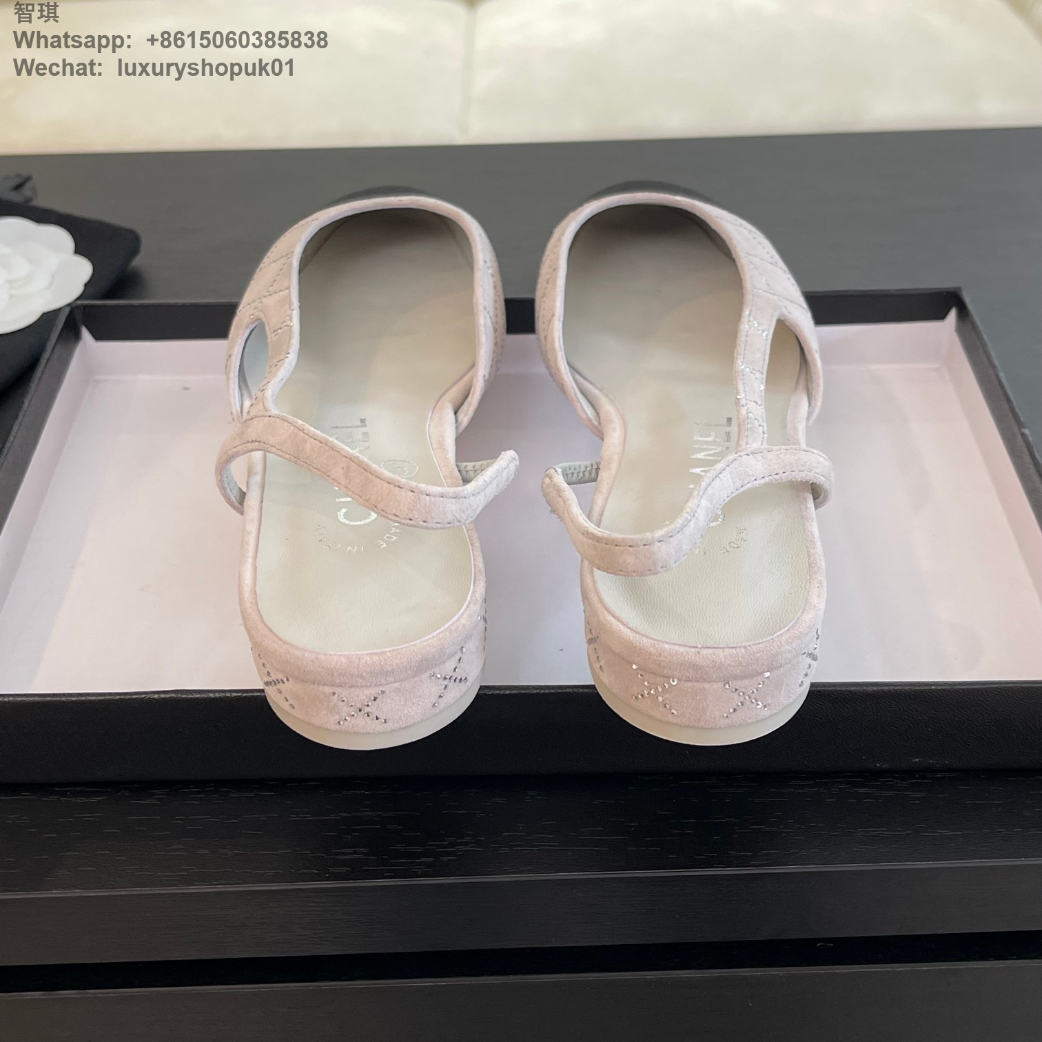 Women Chanel CC Logo crystal suede Slingbacks Pumps Heels Shoes