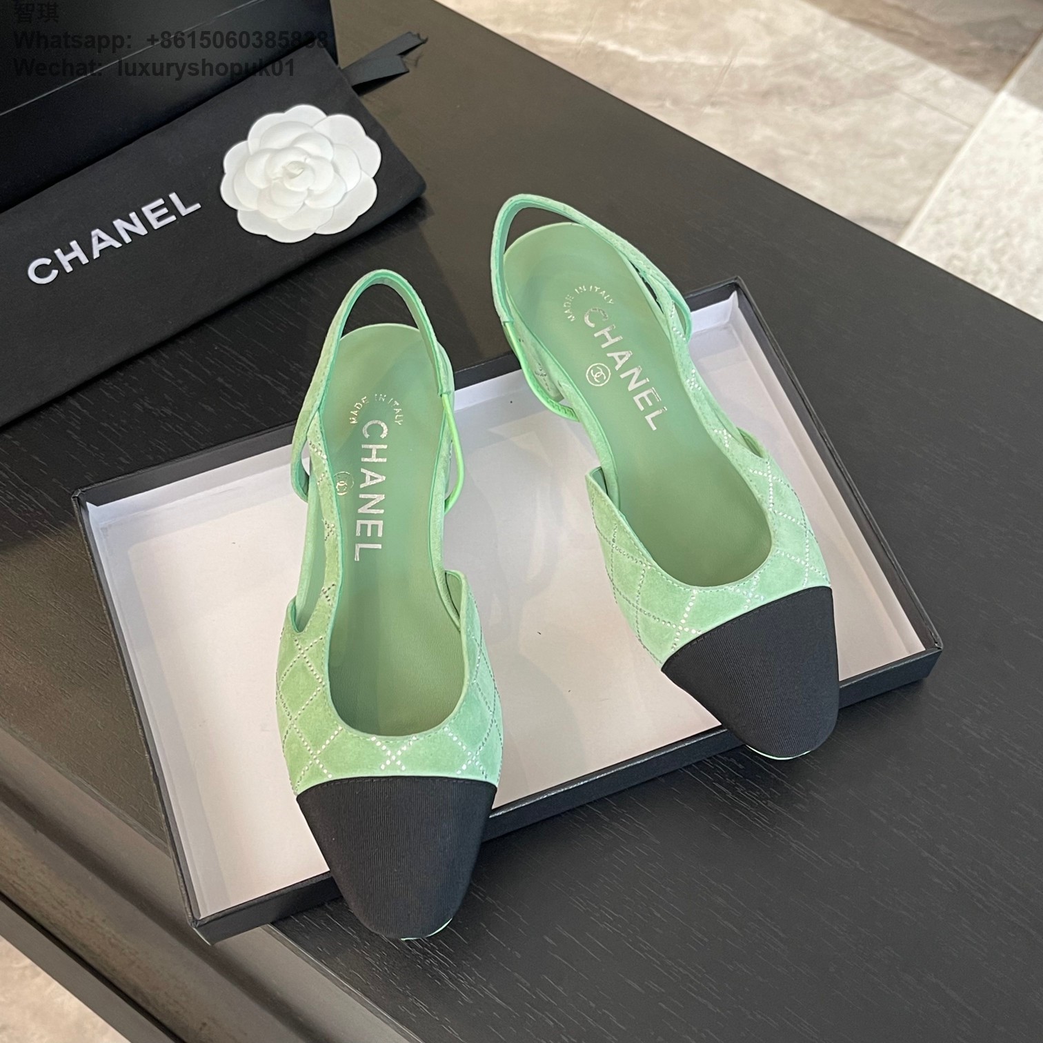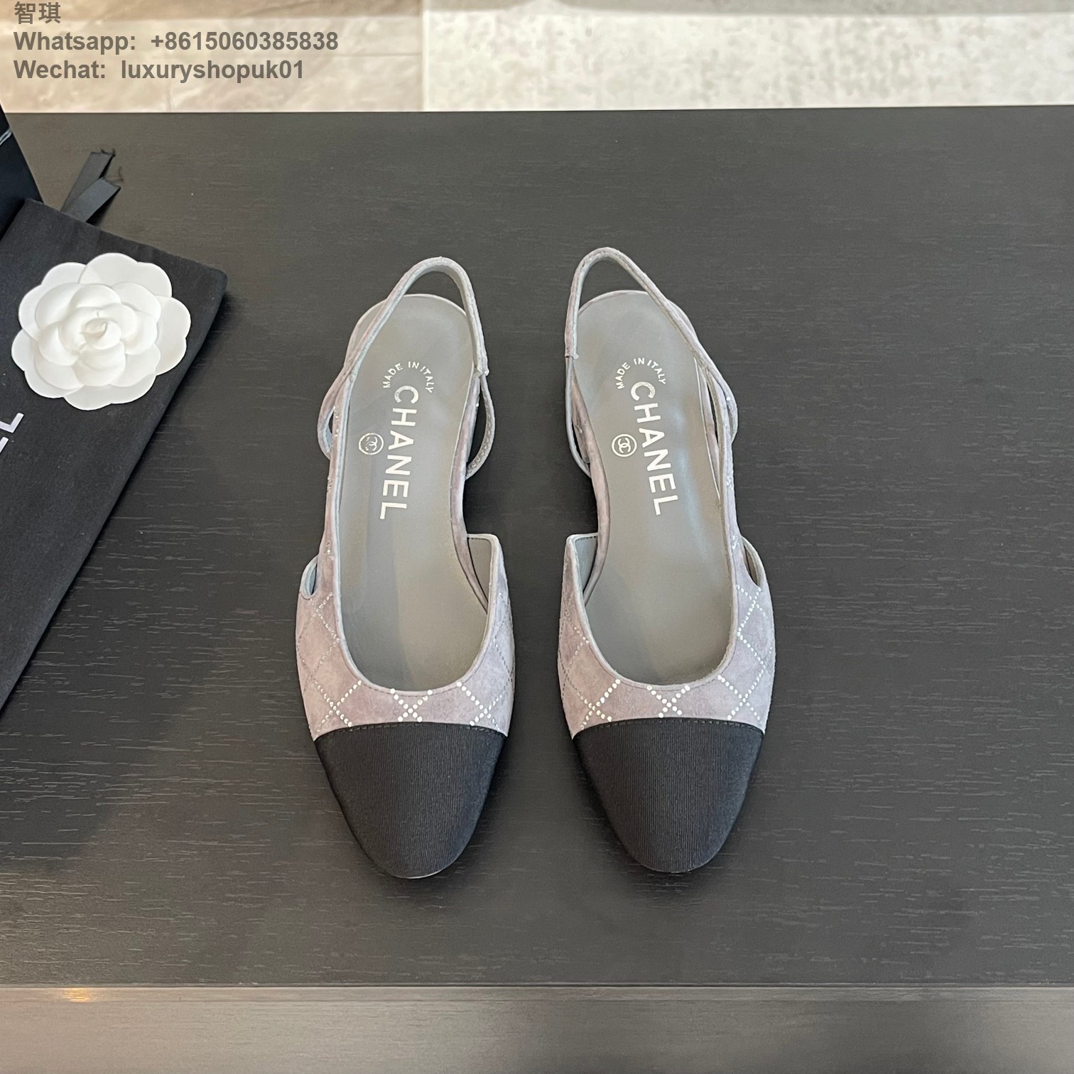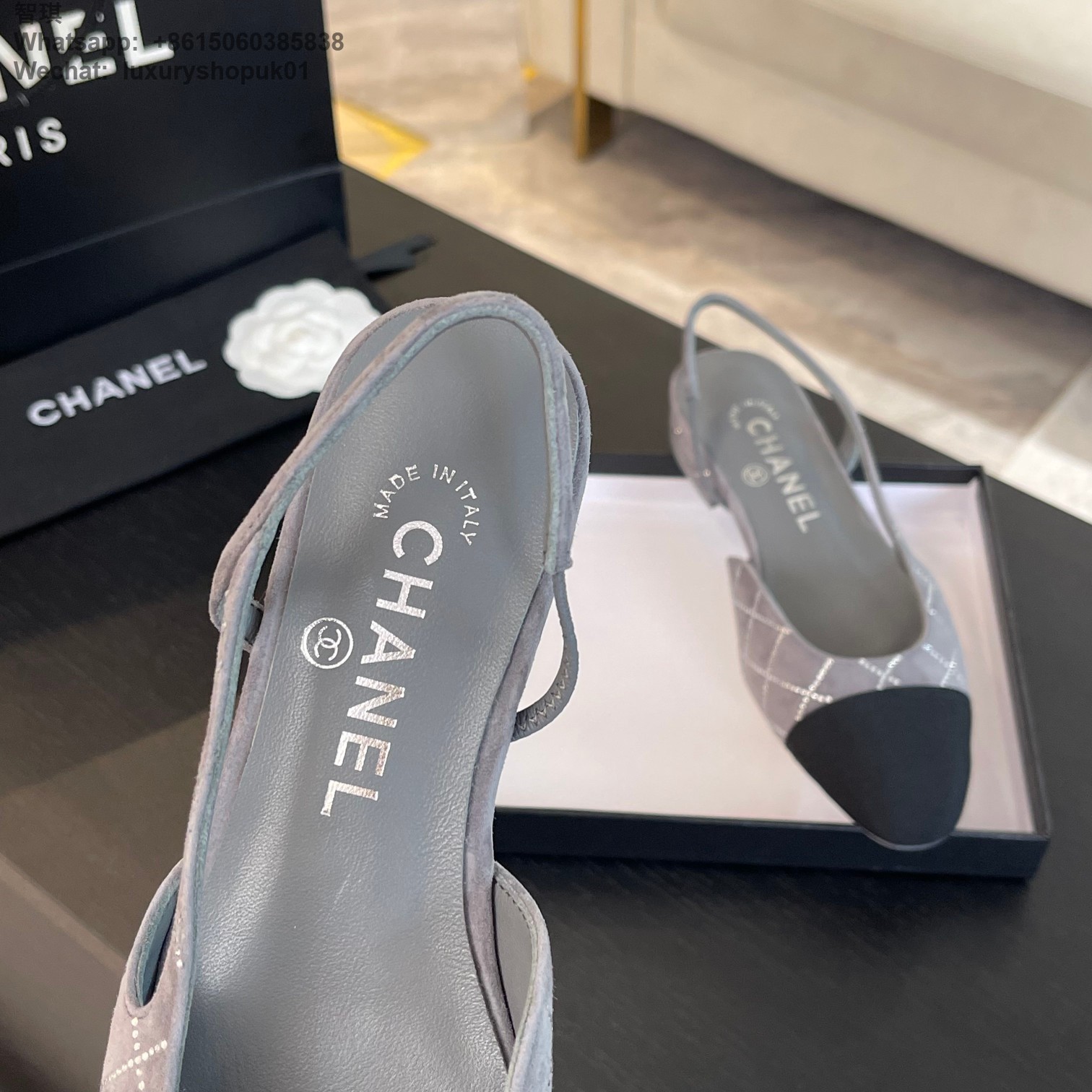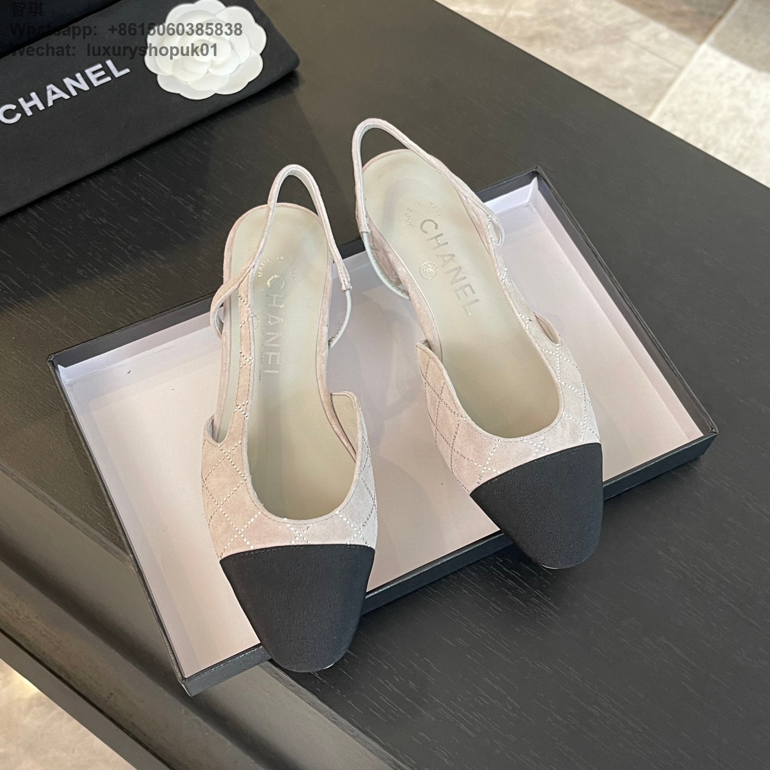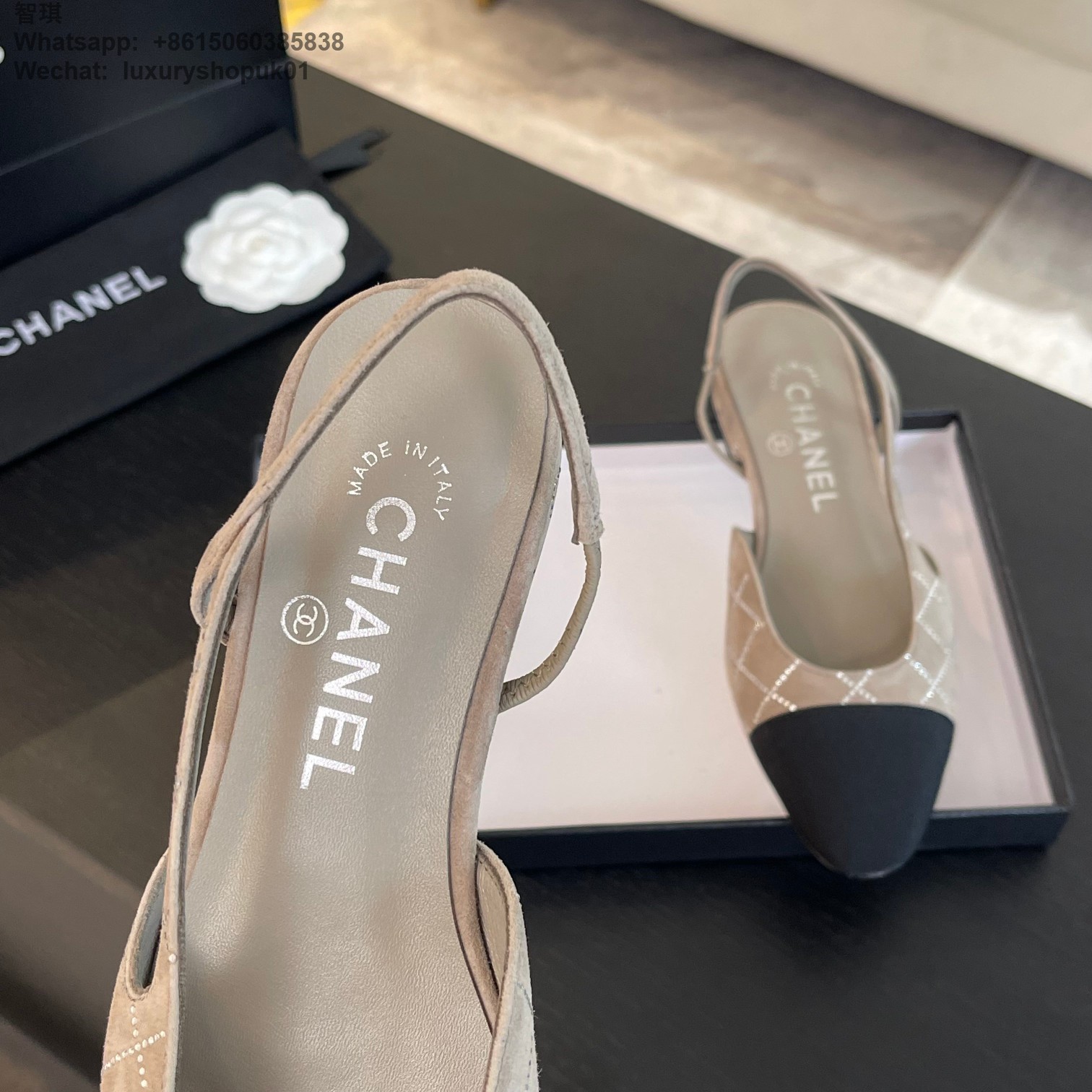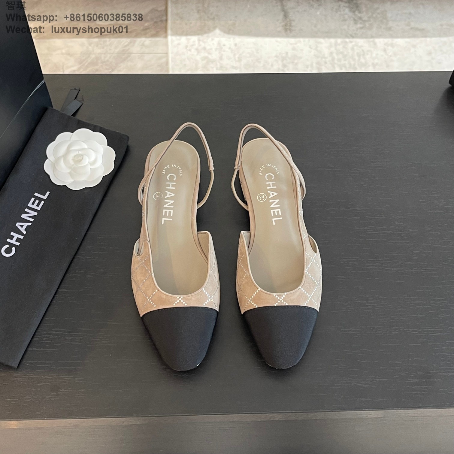 Women Chanel CC Logo crystal suede Slingbacks Pumps Heels Shoes