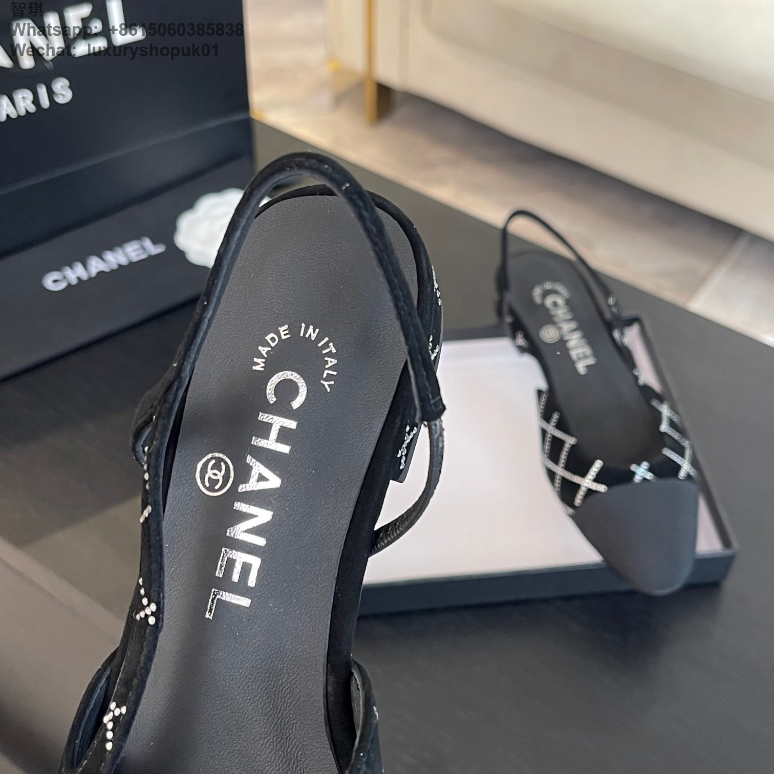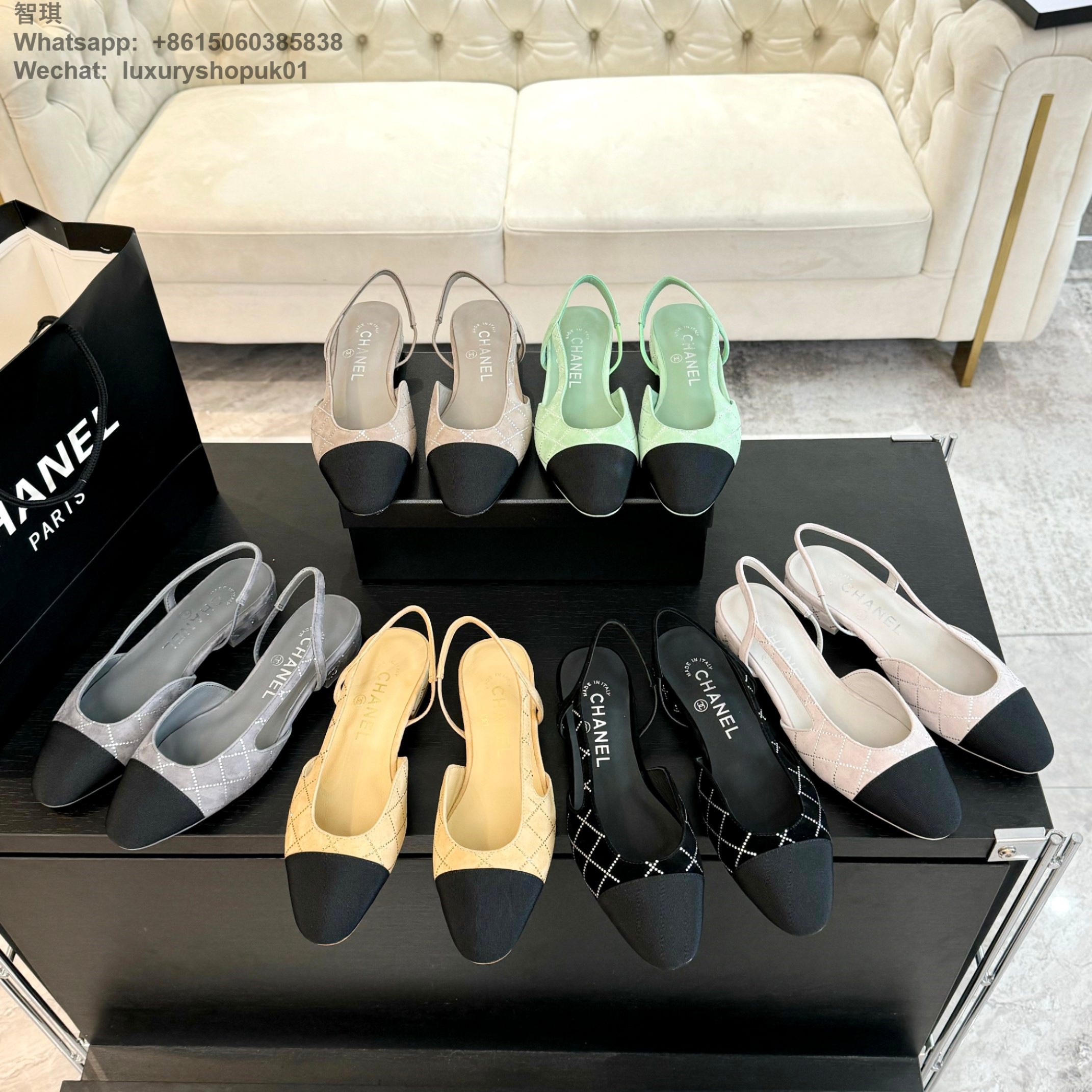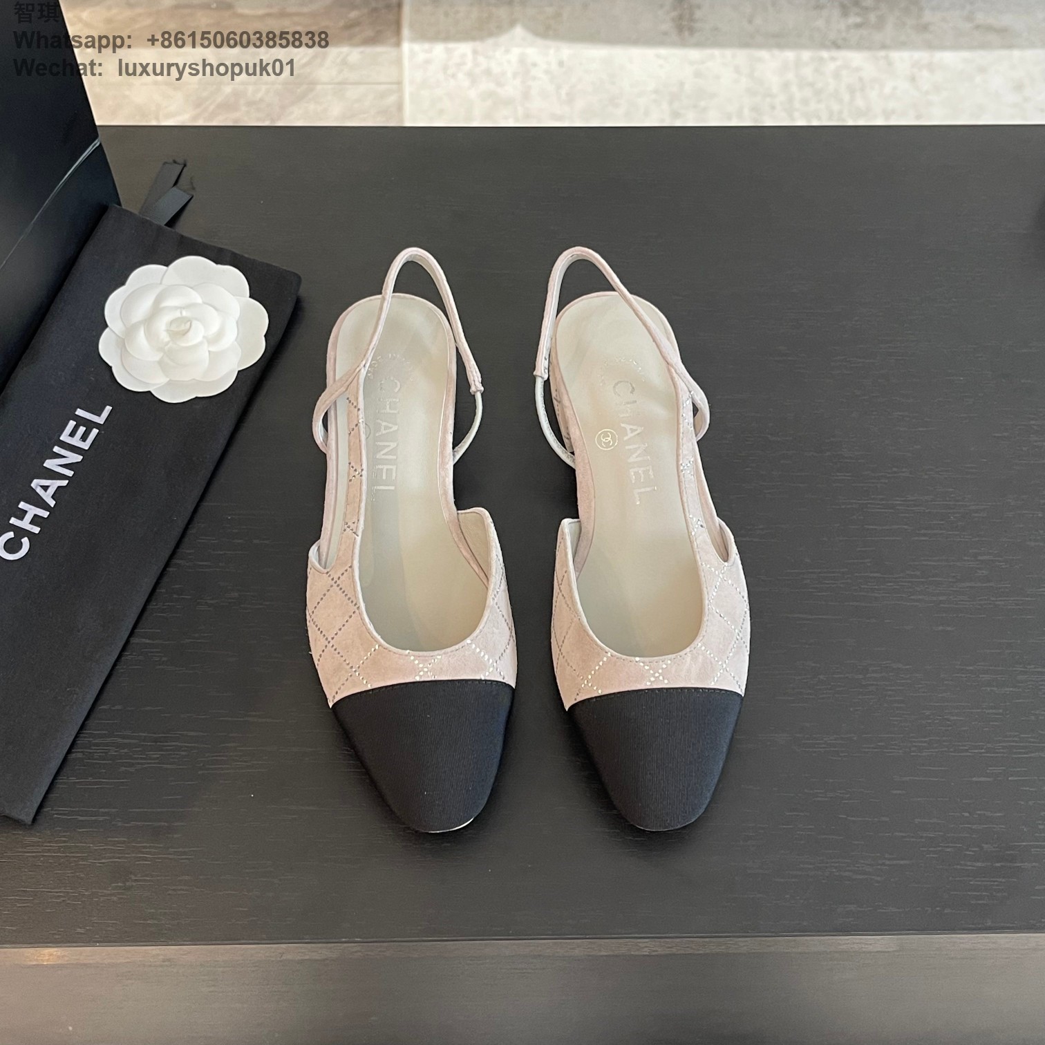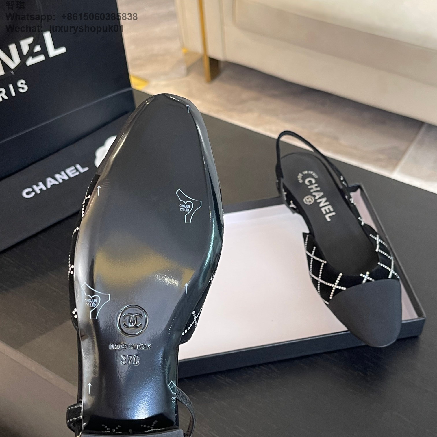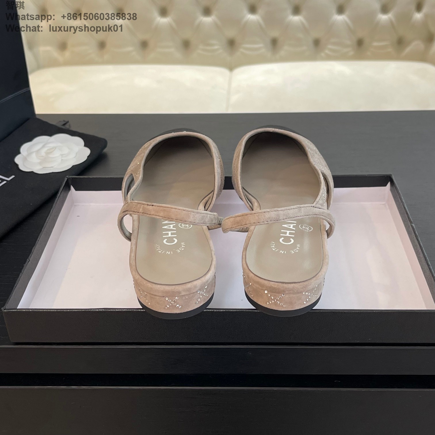 Women Chanel CC Logo crystal suede Slingbacks Pumps Heels Shoes