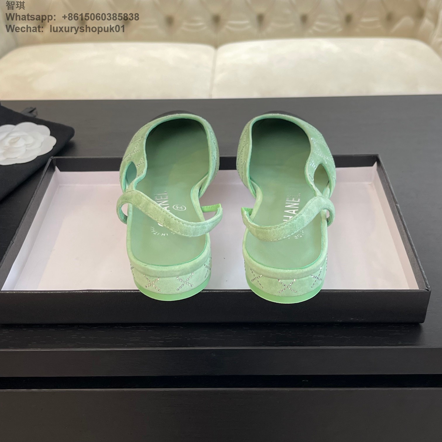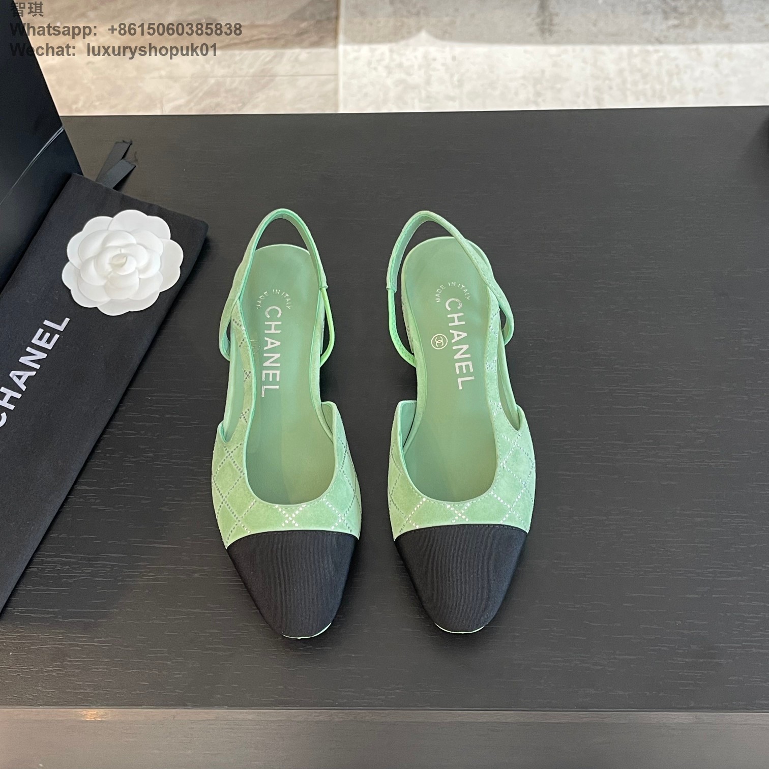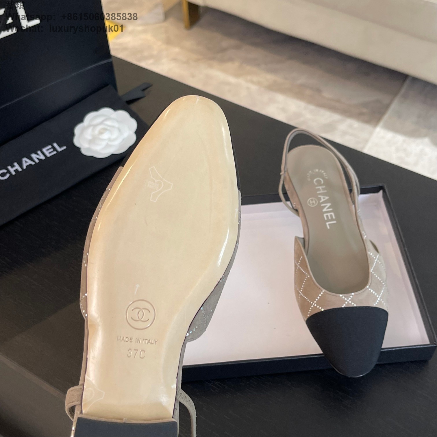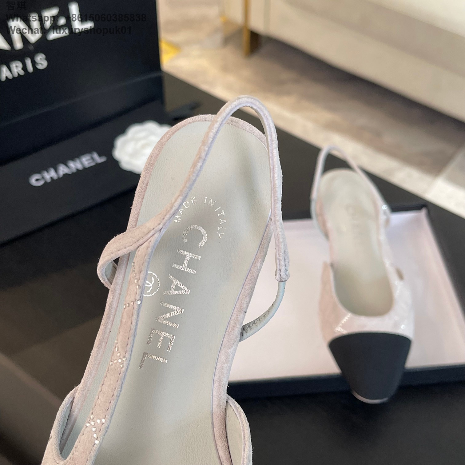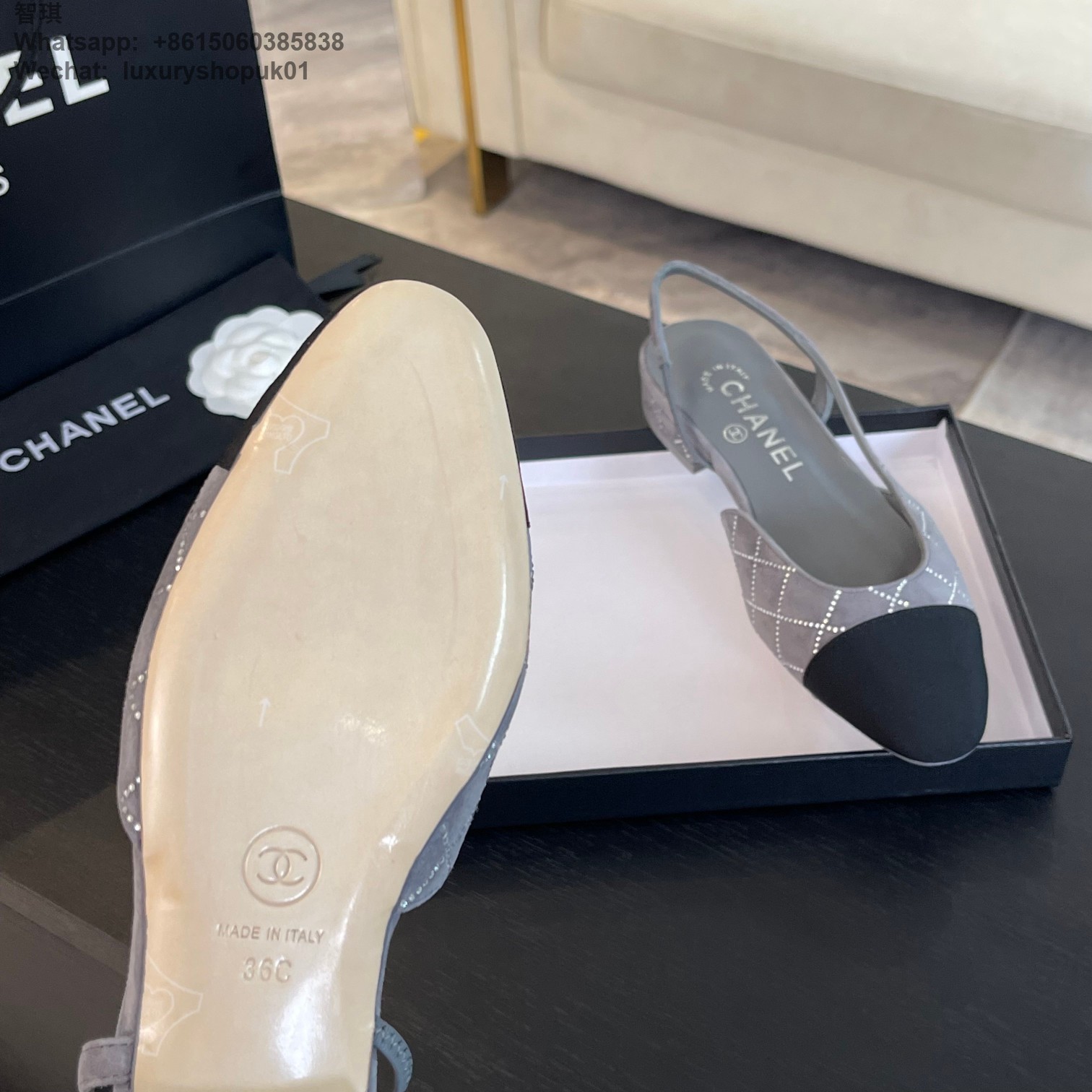 Women Chanel CC Logo crystal suede Slingbacks Pumps Heels Shoes
