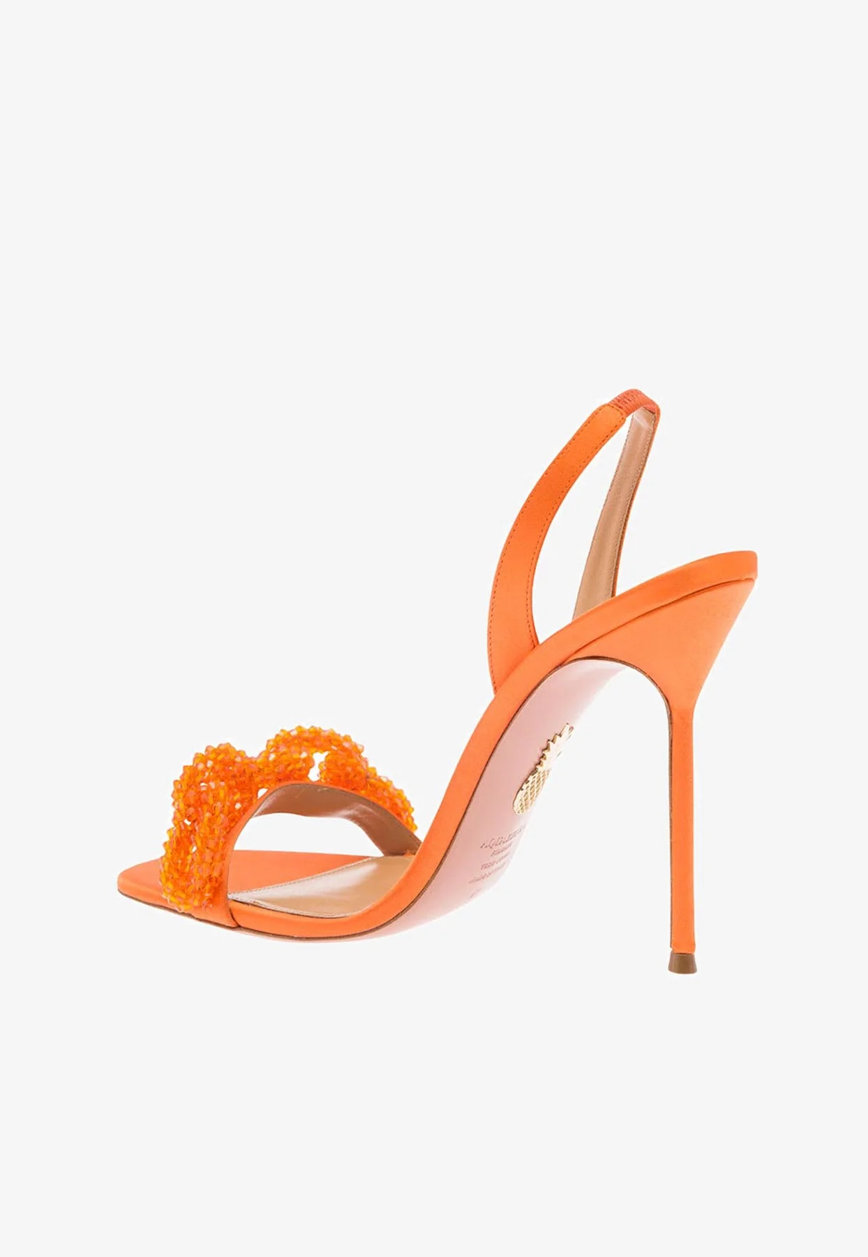 Aquazzura Chain of Love 105 Slingback Sandals in Satin Women Shoes