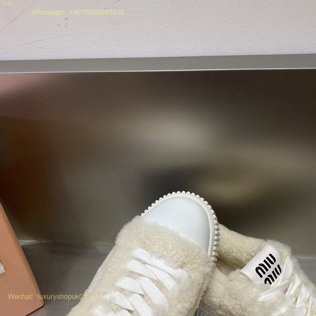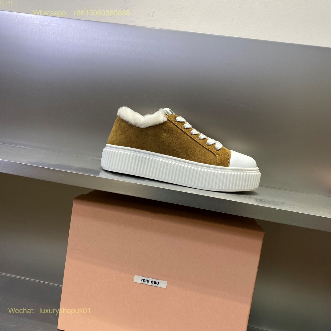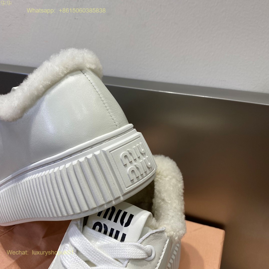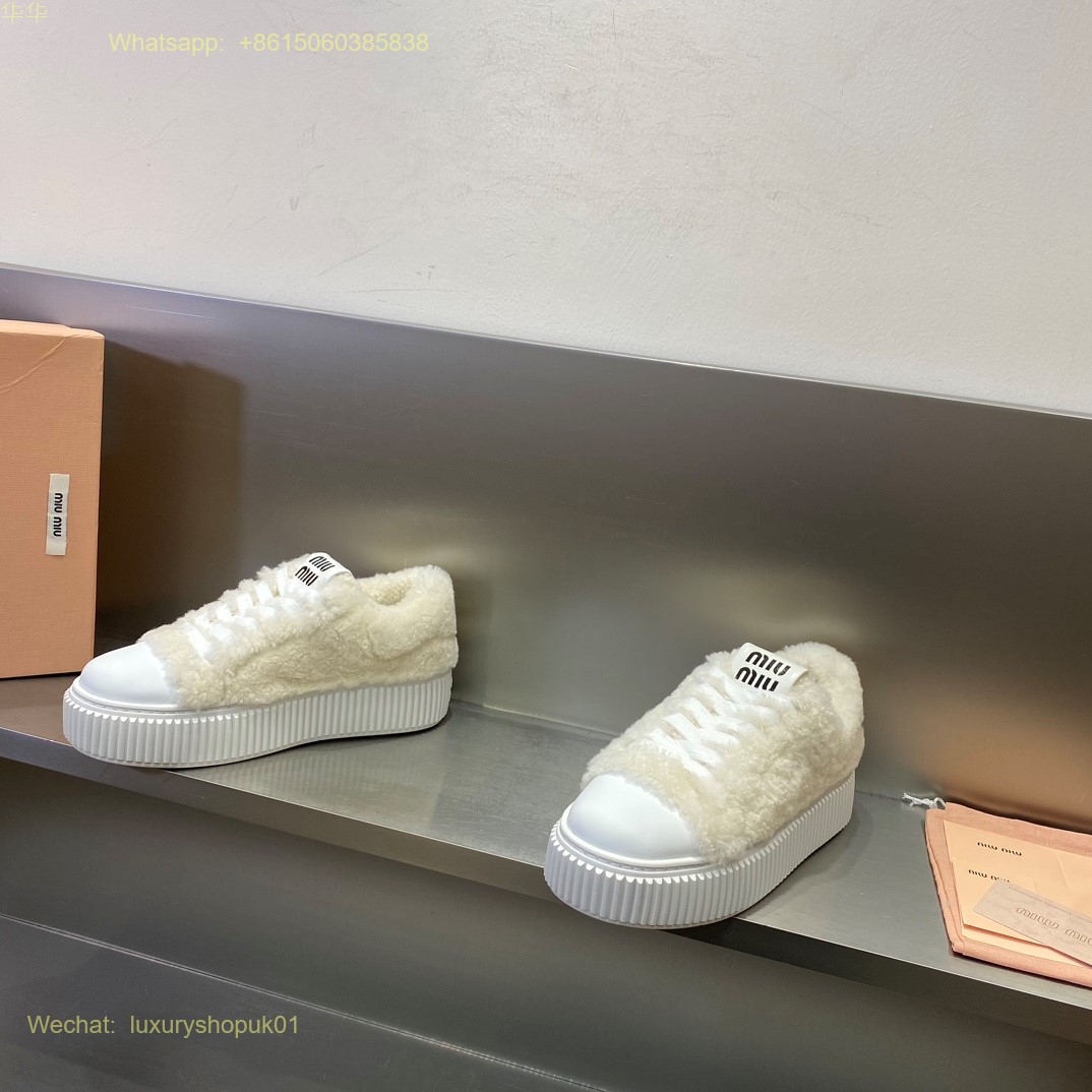 Miu Miu Fur Shearling lace-up Sneakers Women Shoes