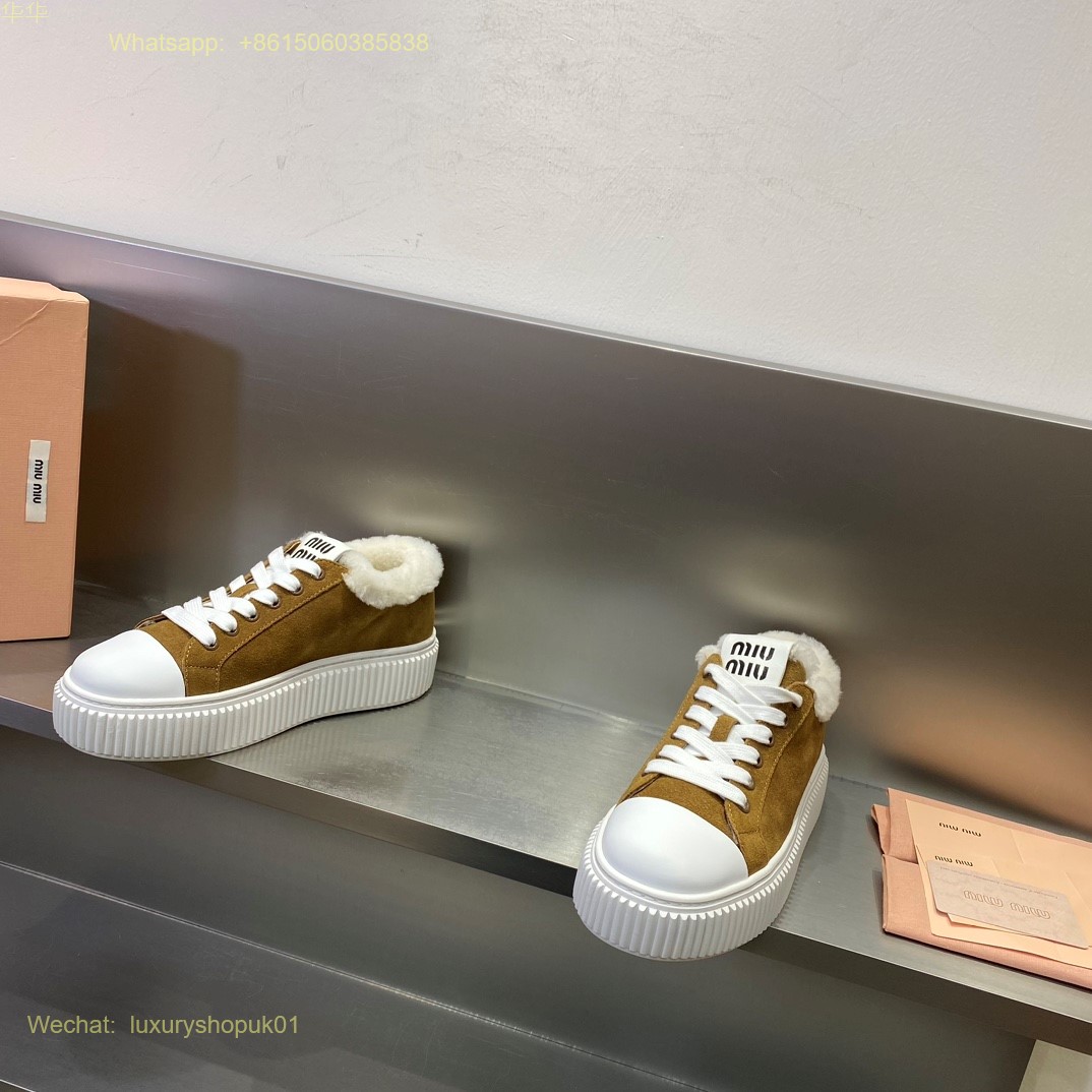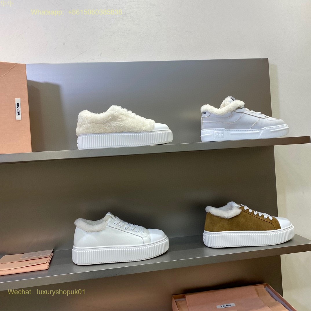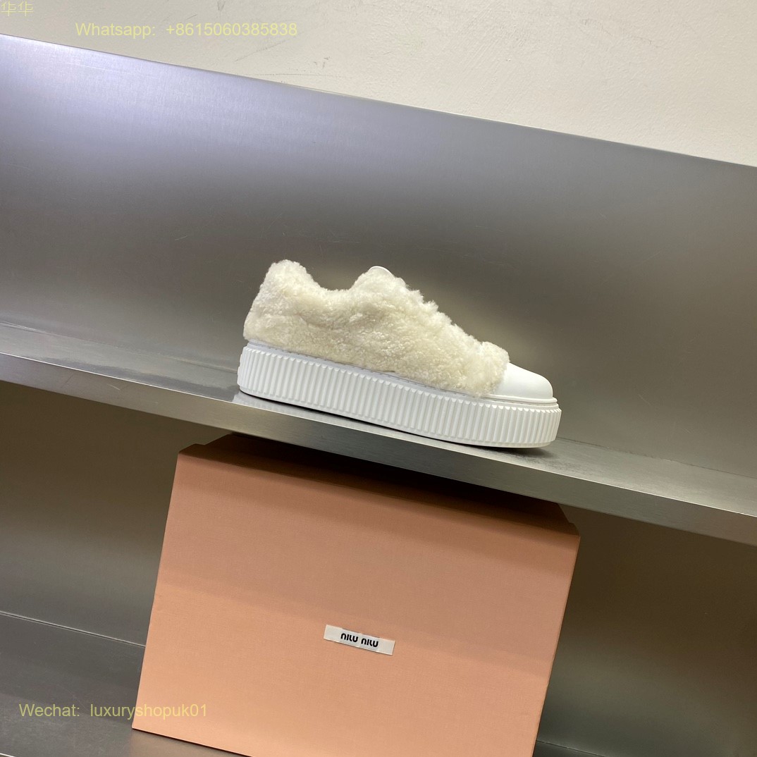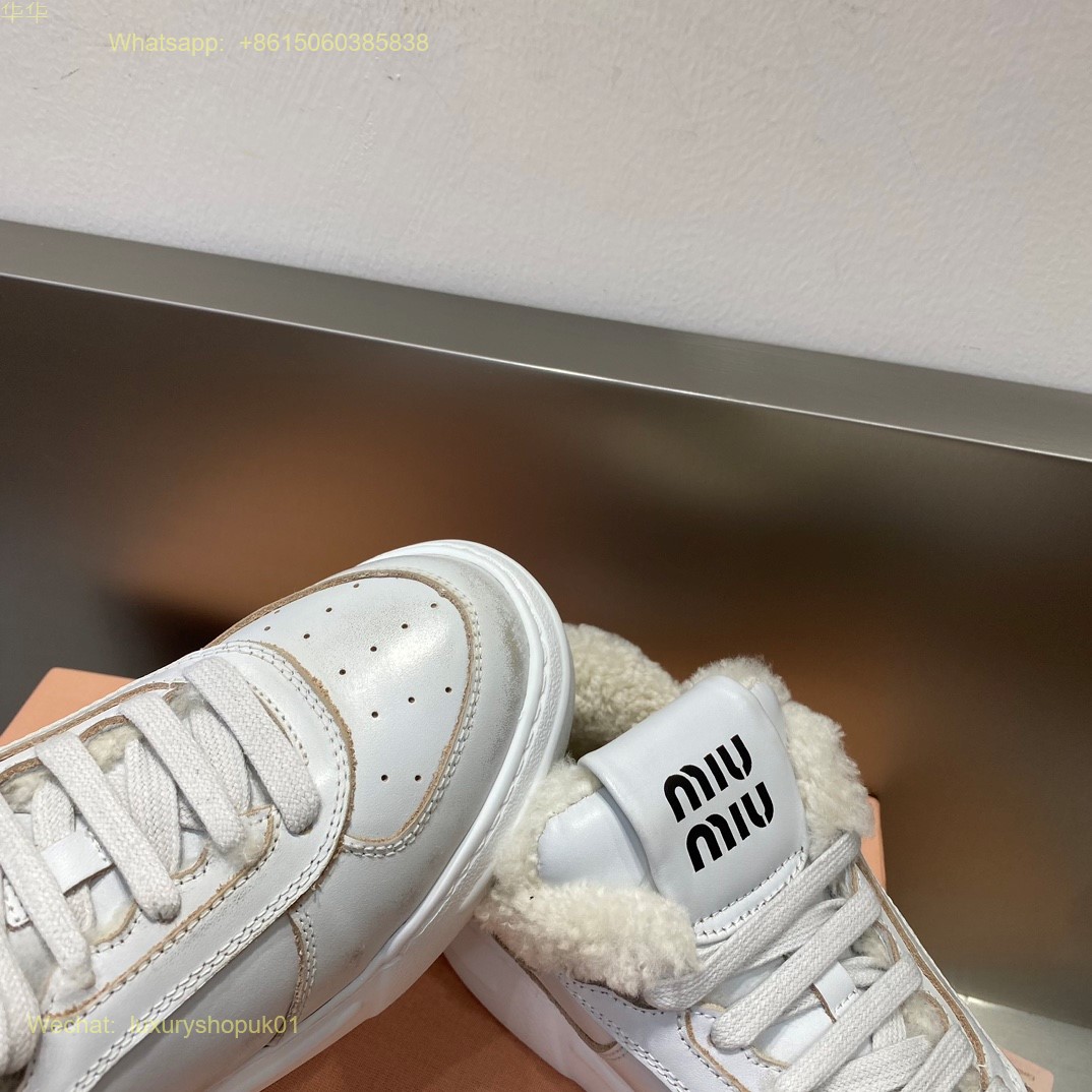 Miu Miu Fur Shearling lace-up Sneakers Women Shoes