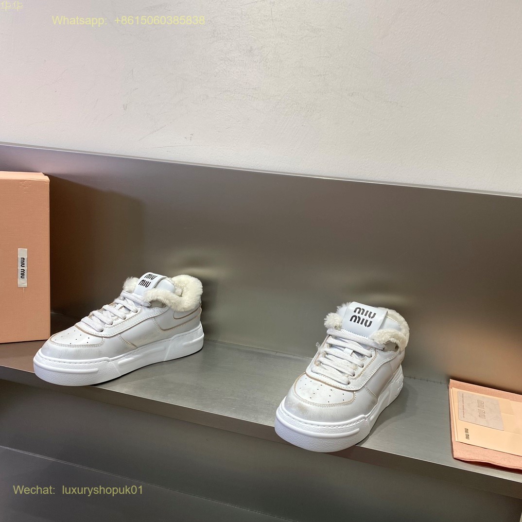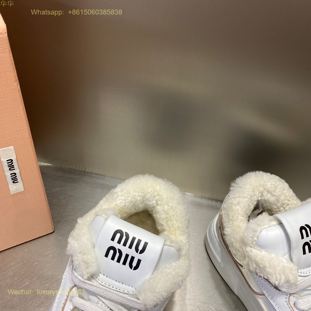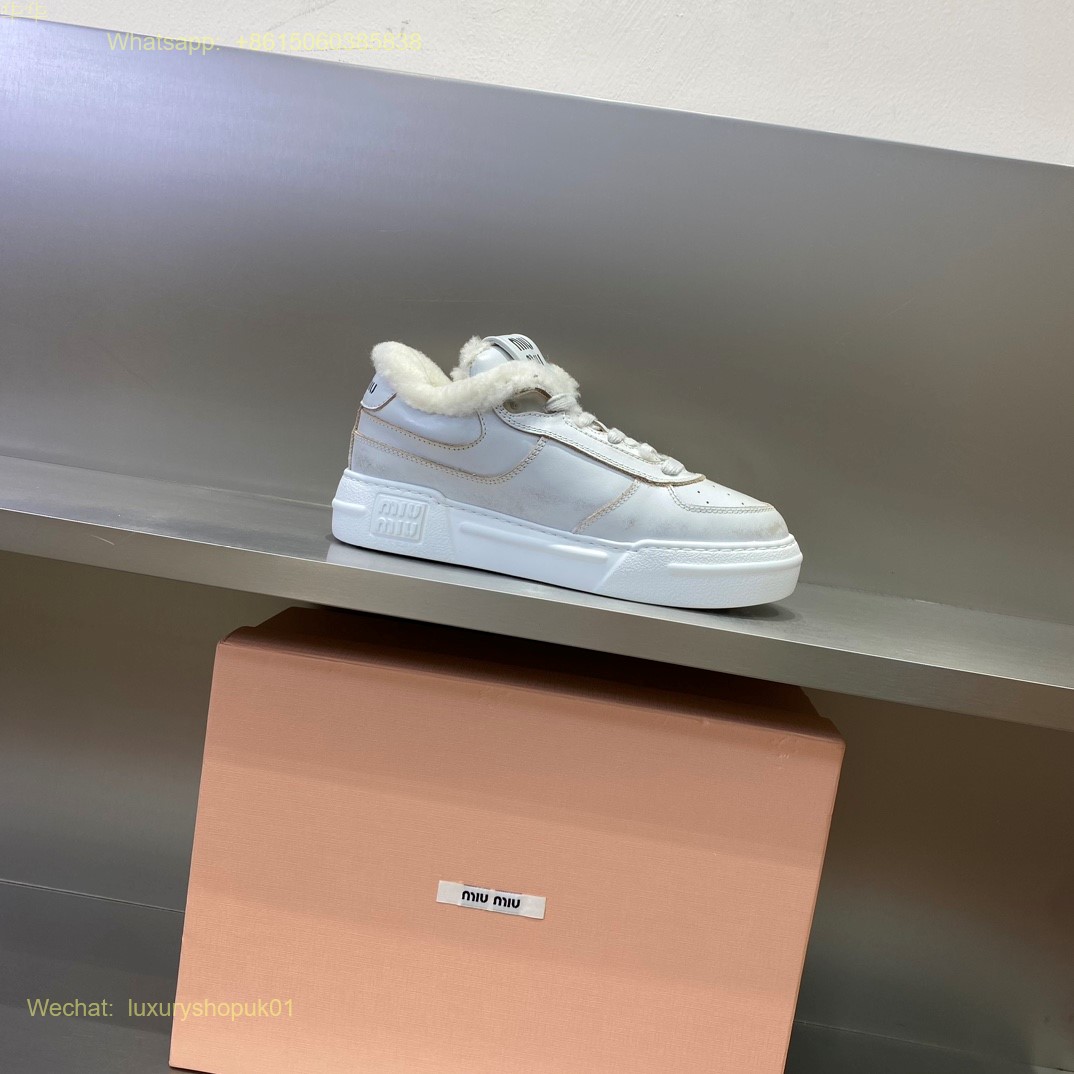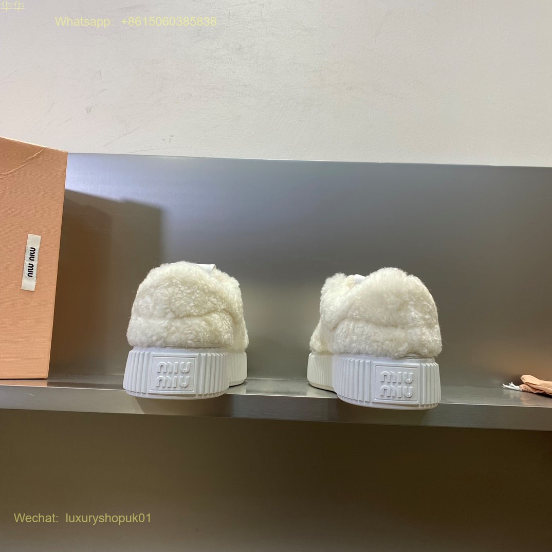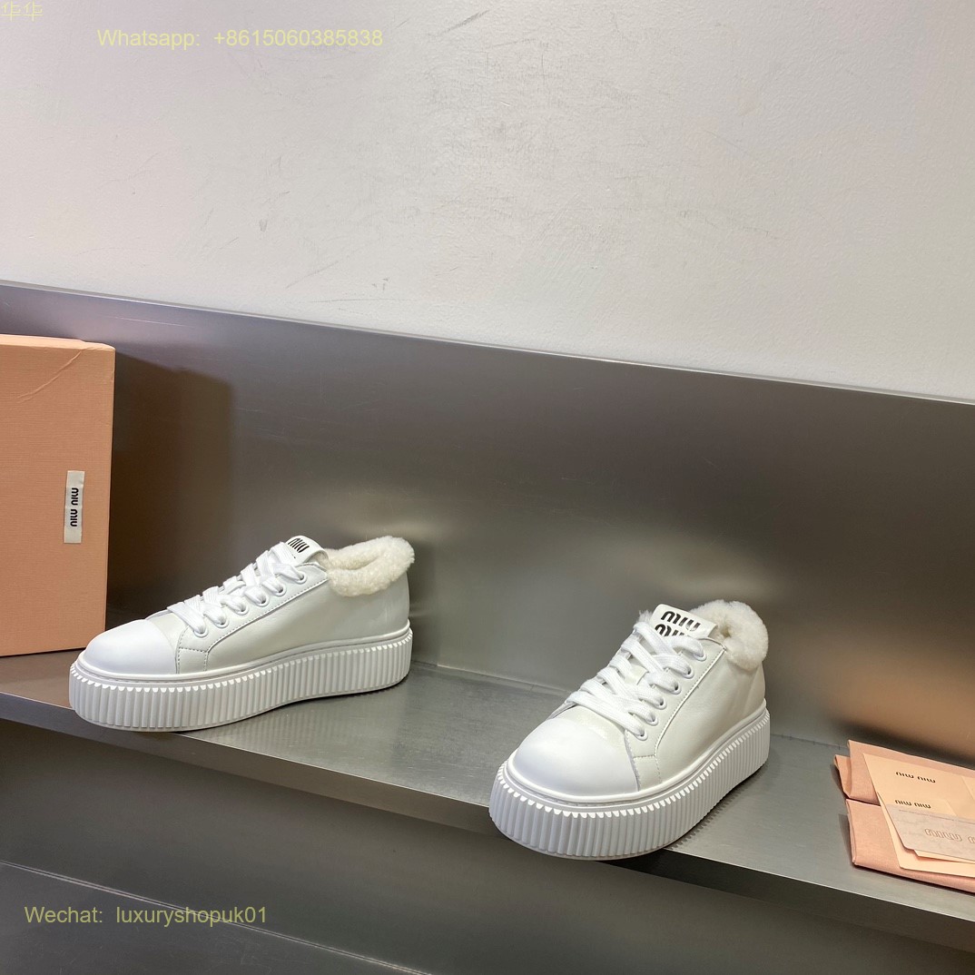 Miu Miu Fur Shearling lace-up Sneakers Women Shoes
