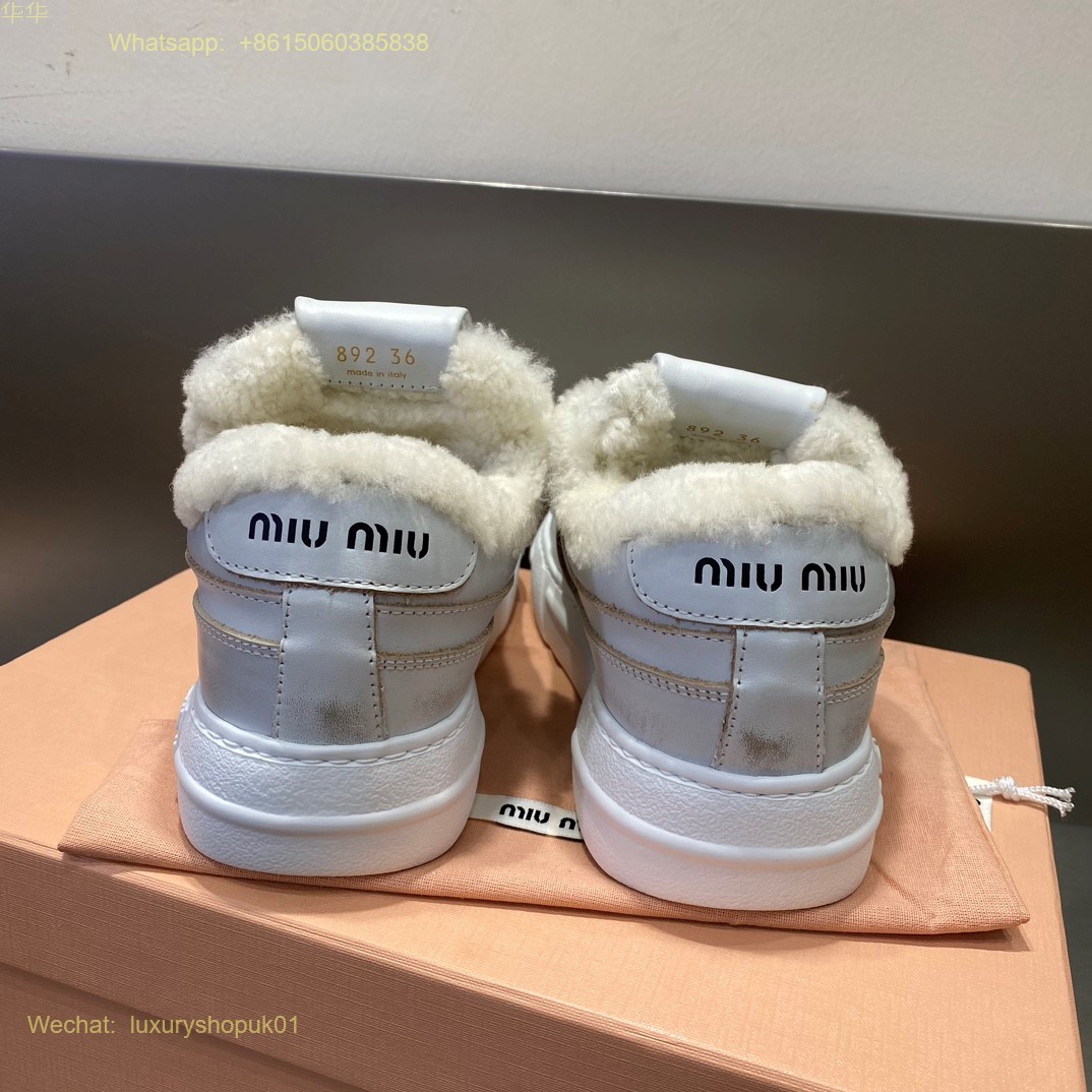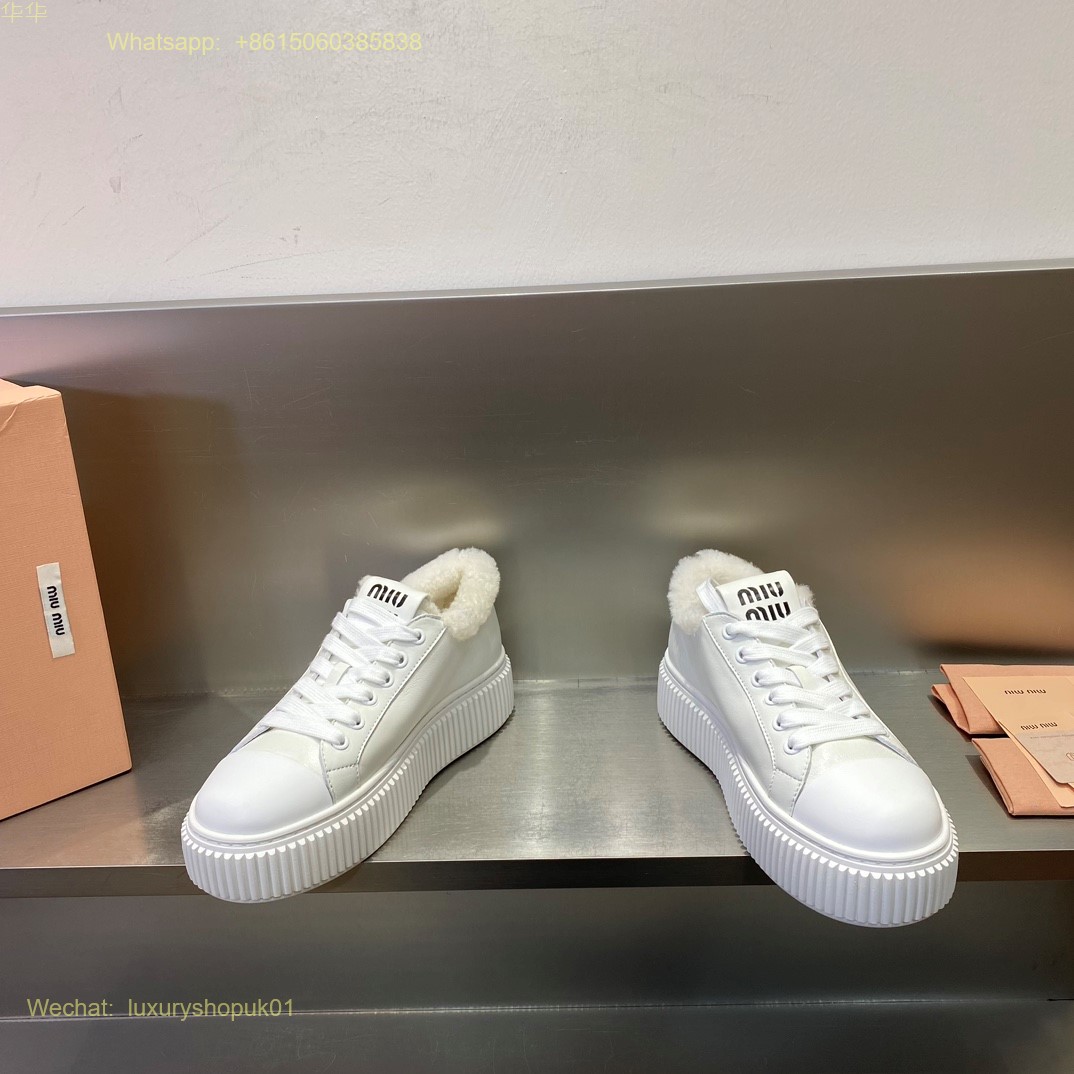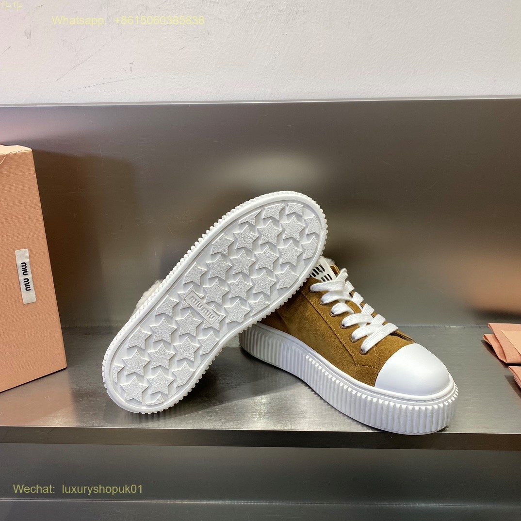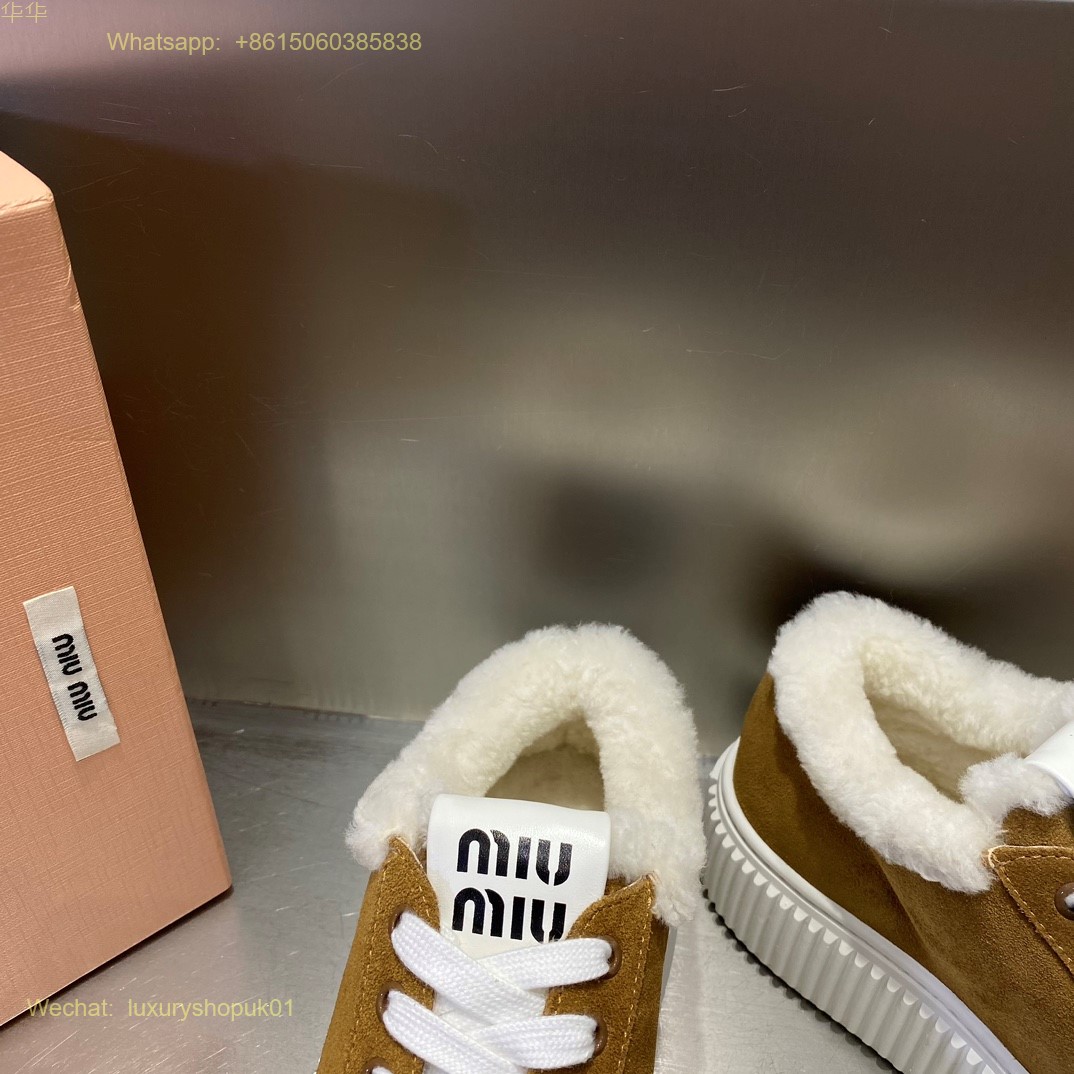Miu Miu Fur Shearling lace-up Sneakers Women Shoes