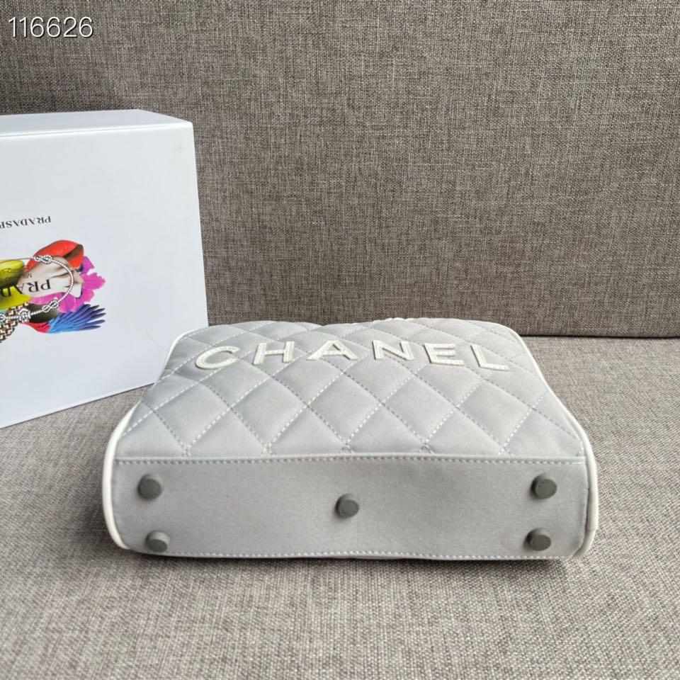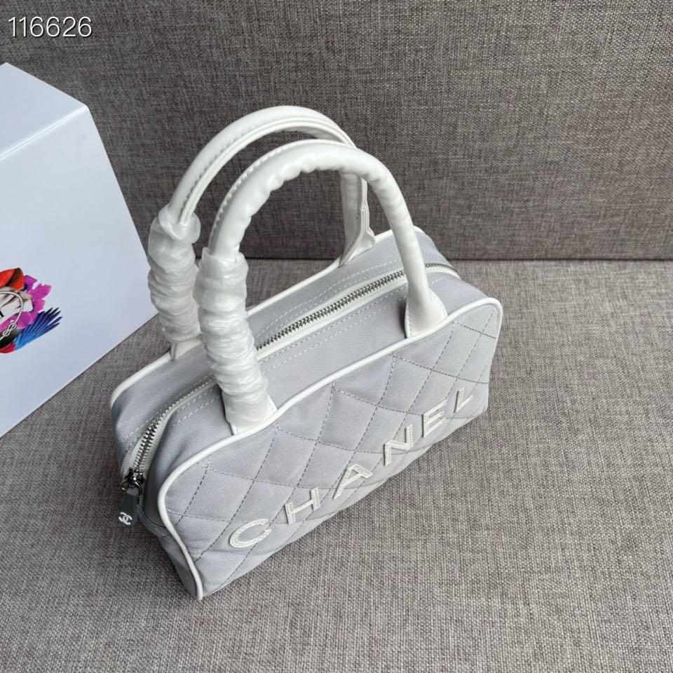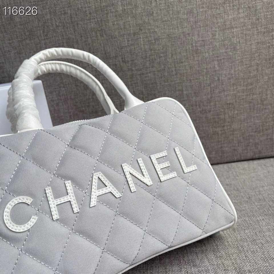 Chanel Vintage Logo Bowler Quilted Medium Gray Canvas Tote replica